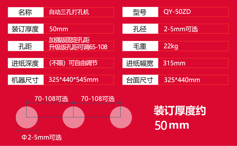 QY-50ZD automatic three-hole archive data punching and binding machine three holes and one line archive filing