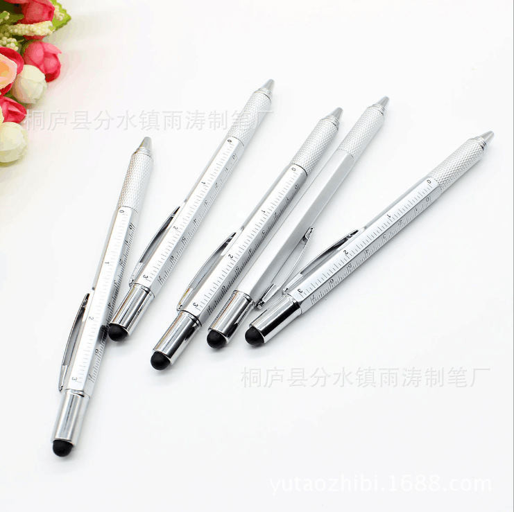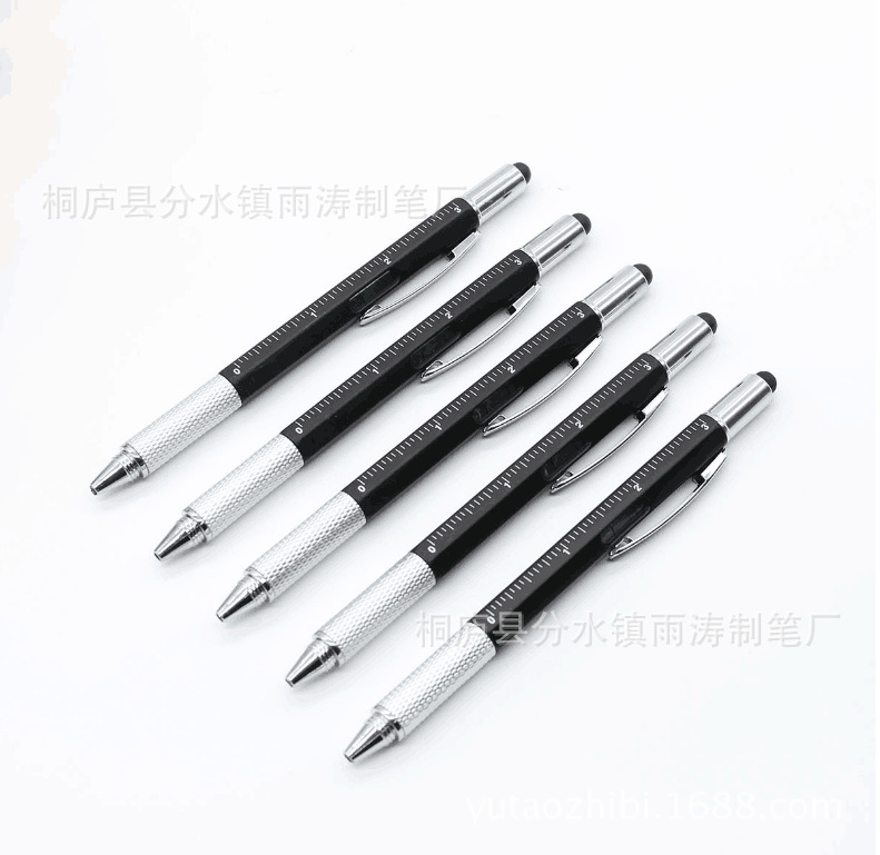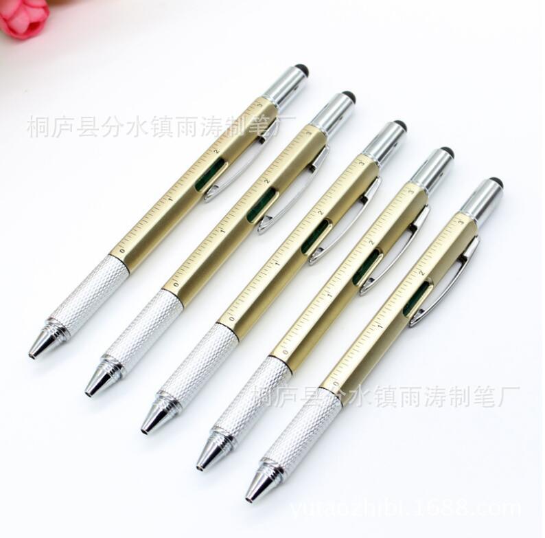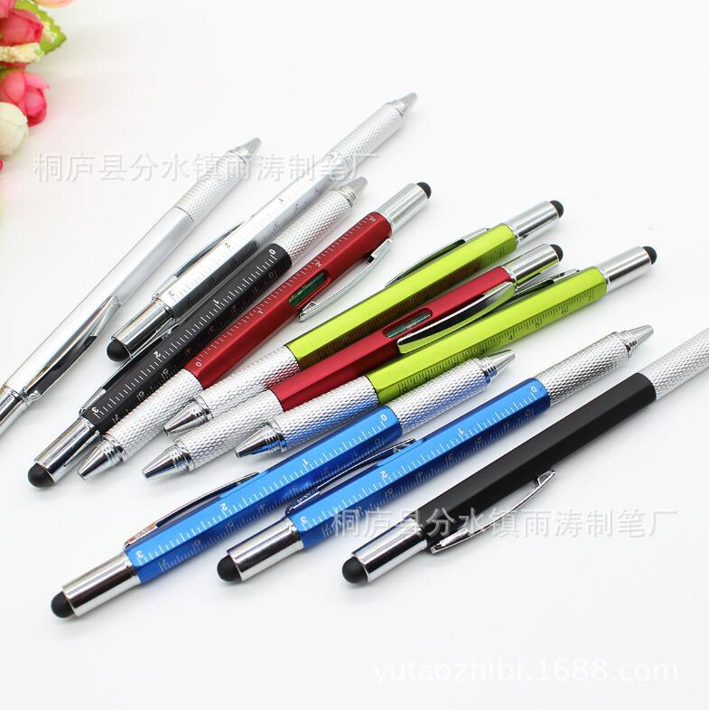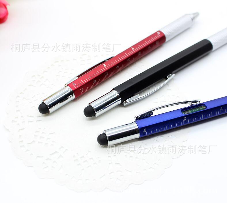 Multi-function screwdriver pen ballpoint pen plastic tool pen six-in-one level touch tool advertising gift pen