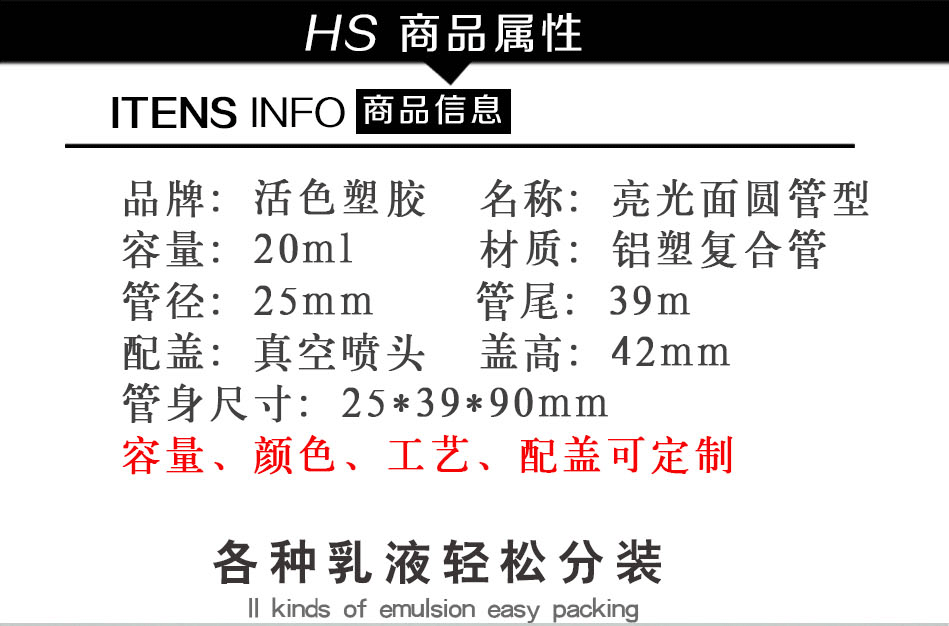 20ml cosmetic hose aluminum-plastic composite sunscreen BB cream concealer hose with vacuum nozzle