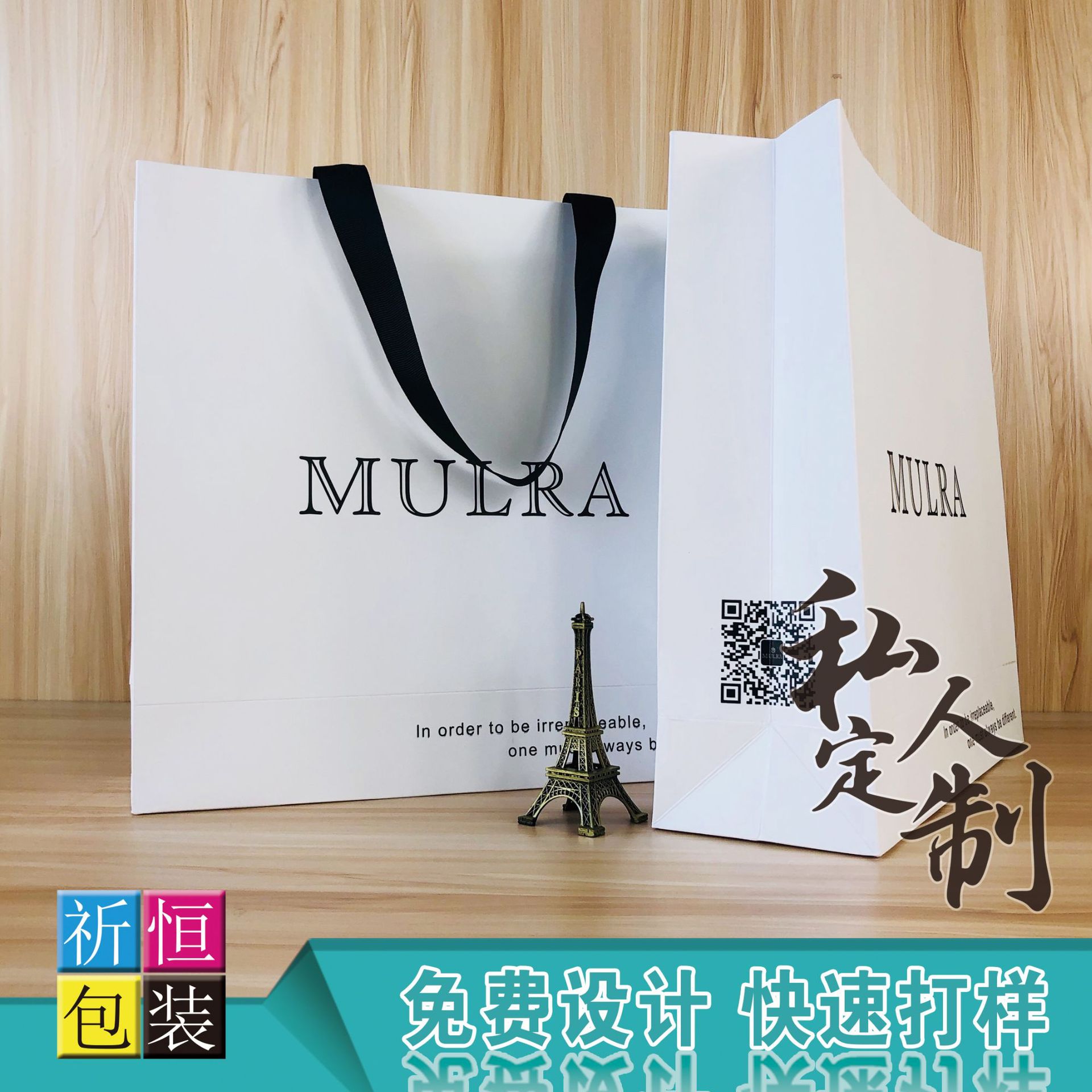 White card gift paper bag custom clothing packaging bag cosmetic tote bag hand bag manufacturer custom