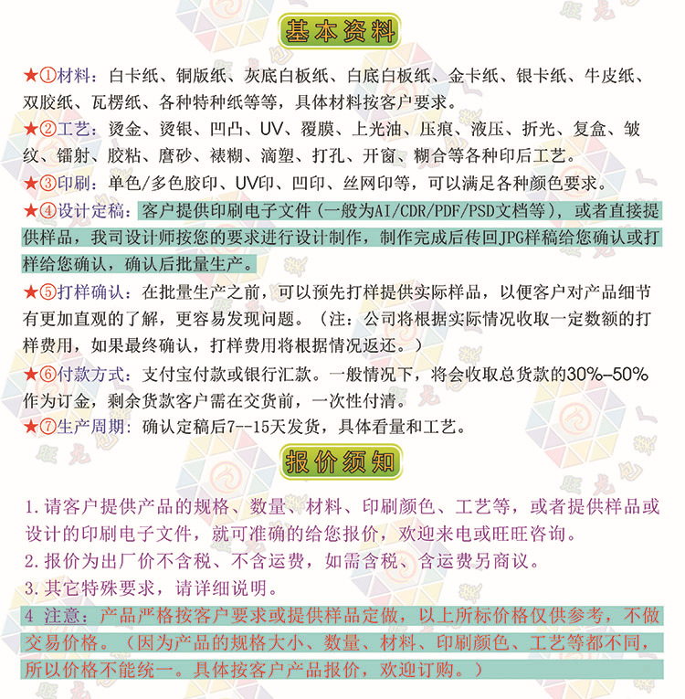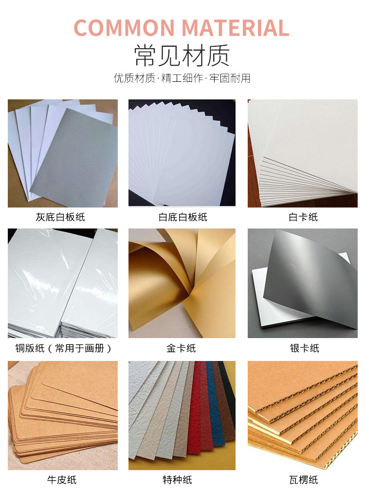 - Process: embossing, gravure, offset printing , screen printing, UV printing, bronzing (hot silver)