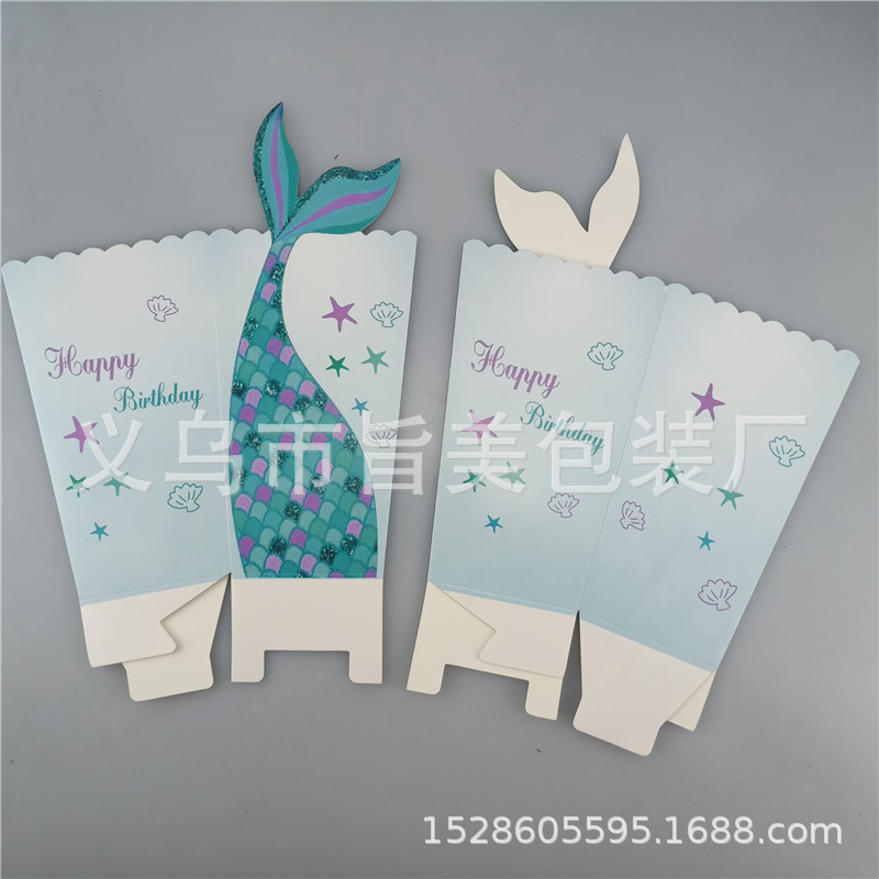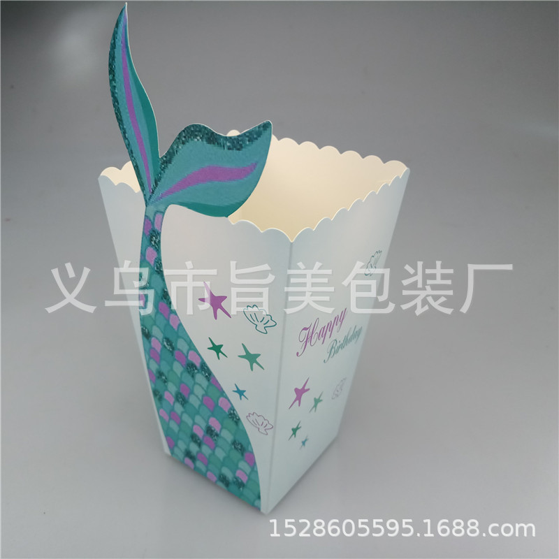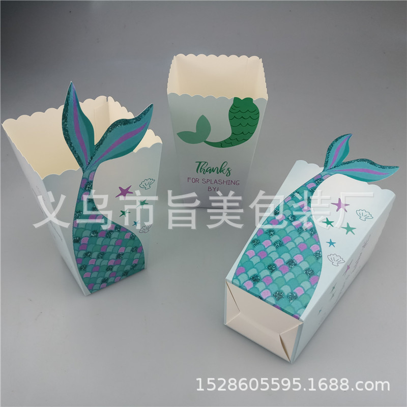 Spot Mermaid Popcorn Box Environmental Creative Food Tray Child Birthday Party Tableware