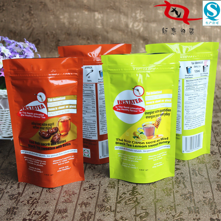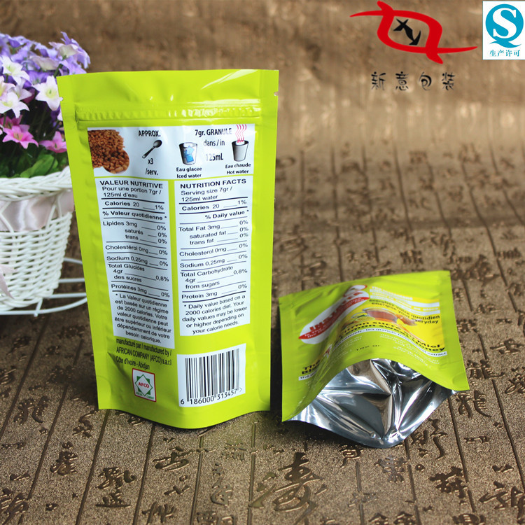 High-end color printing VMPET composite bone self-station packaging bag custom solid beverage powder packaging