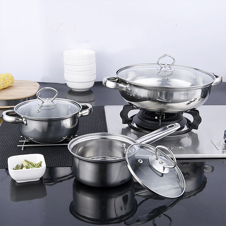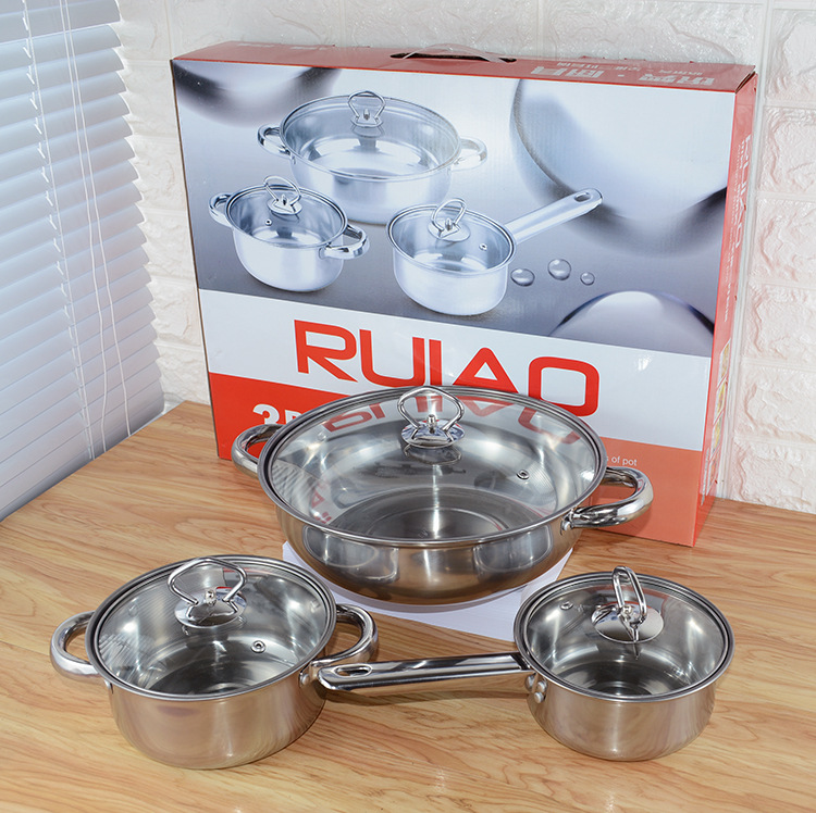 Three-piece stainless steel pot set Kitchen 3PCS soup, milk, hot pot combination Conference gift packaging
