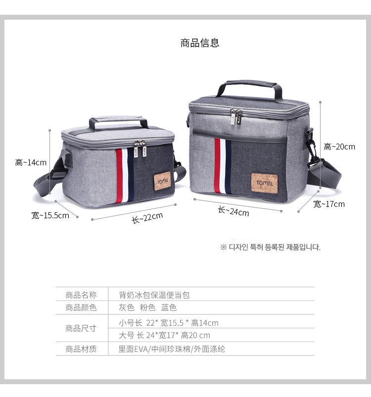 TOMILL Korea back milk ice pack refrigerated outdoor thickened lunch bag student lunch with lunch box bag factory direct