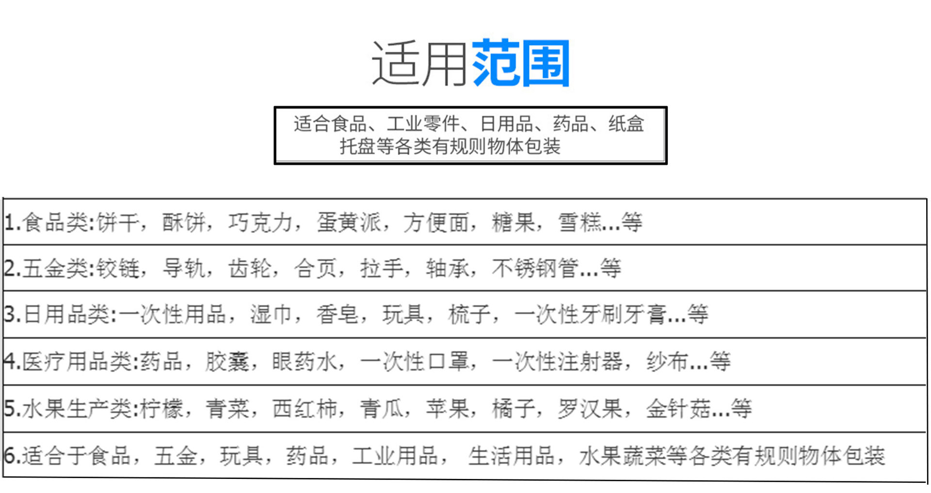 - Applicable industries: food, Toys, hardware, machinery, clothing, chemicals, catering, daily chemicals, tobacco and alcohol, medicine, gifts, crafts, home textiles