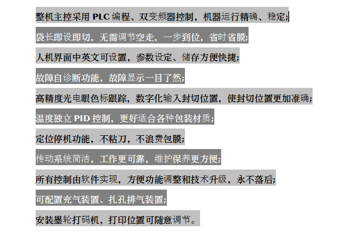 - Function: coding, coding, packaging container molding, labeling, sealing, melt glue, filling, container, metering