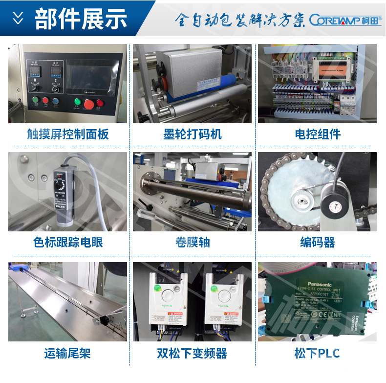 - Function: Bar code recognition , Printing, filling, coding, coding, filling, packaging, labeling, cleaning, metering, sterilization, drying, disassembly, packaging container molding, packaging assistance, melt glue, stacking, wrapping