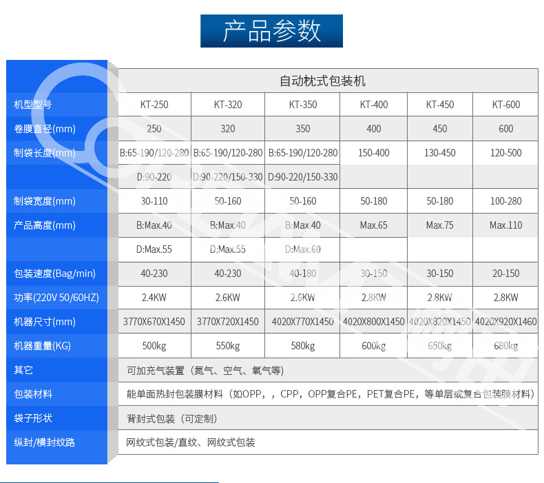 - Packing film width: 250