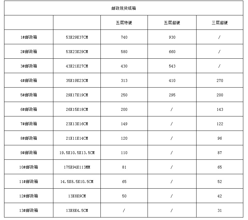 - Material hardness grade: No.1 53x29x37cm, No.2 53x23x29cm, No.3 43x21x27cm, No.4 35x19x23cm, No.5 29x17x19cm, No.6 26x15x18cm, No.7 23x13x16cm, No.8 21x11x14cm,9 No. 19.5×10.5×13.5cm, No. 10 17.5×9.5×11.5cm, No. 11 14.5×8.5×10.5cm, No. 12 13x8x9cm, No. 13 13×8 X4.5cm, 11th half 14.5×8.5×5.5cm, 10th half 17.5×9.5×6.5cm