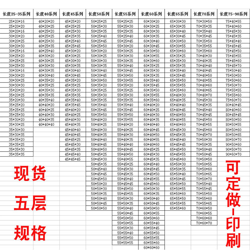 - Walton: 55*25*30, 55*25*35, 55*25*40 , 55*25*45, 55*30*20, 55*30*25, 55*30*30, 55*30*35, 55*30*40, 55*30*50, 55*30*55, 55 *35*25, 55*35*30, 55*35*35, 55*35*40, 55*35*45, 55*35*50, 55*35*55, 55*40* 25, 55*40*30, 55*40*35, 55*40*40, 55*40*45, 55*40*50, 55*40*55, 55*45*30, 55*45*40, 55*45*45, 55*45*50, 55*45*55, 55*50*30, 55*50*35, 55*50*40, 55*50*45, 55*50*50, 55* 50*55, 55*55*40, 55*55*50, 55*55*55