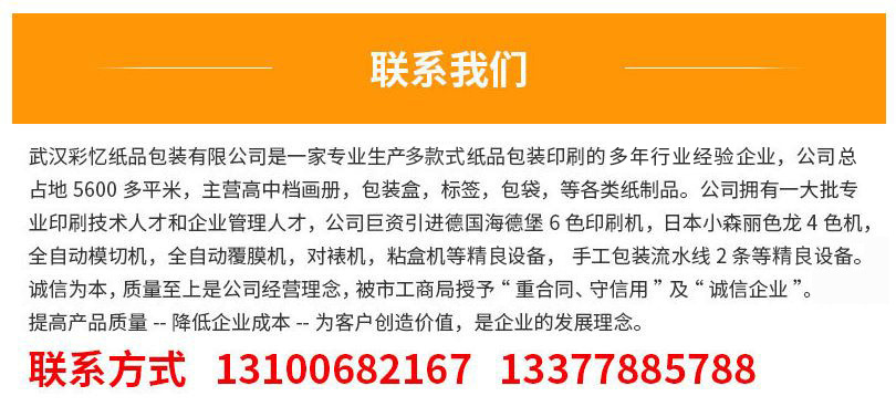 - Process: 400g white card, bright film on the surface, 6 colors printing once completed