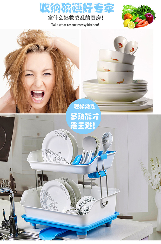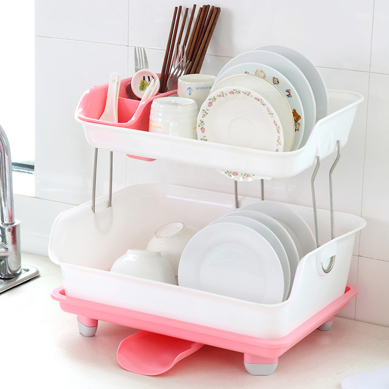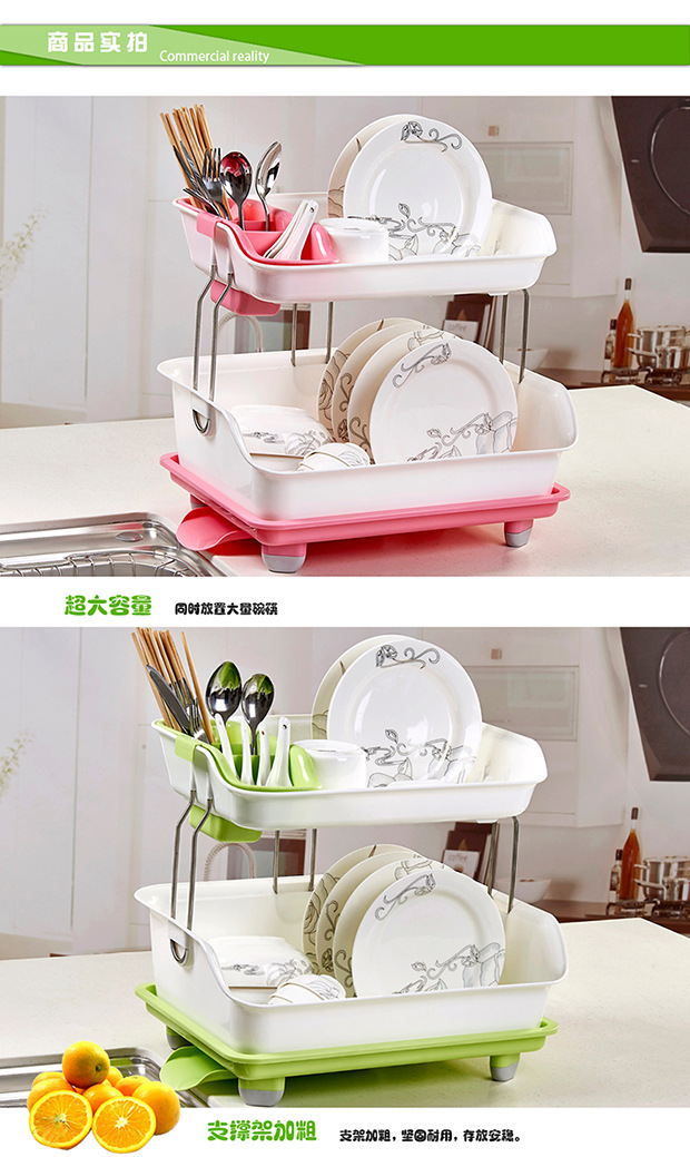 Double kitchen rack thick plastic drain dish rack color box packaging 360 & deg; drain new fashion