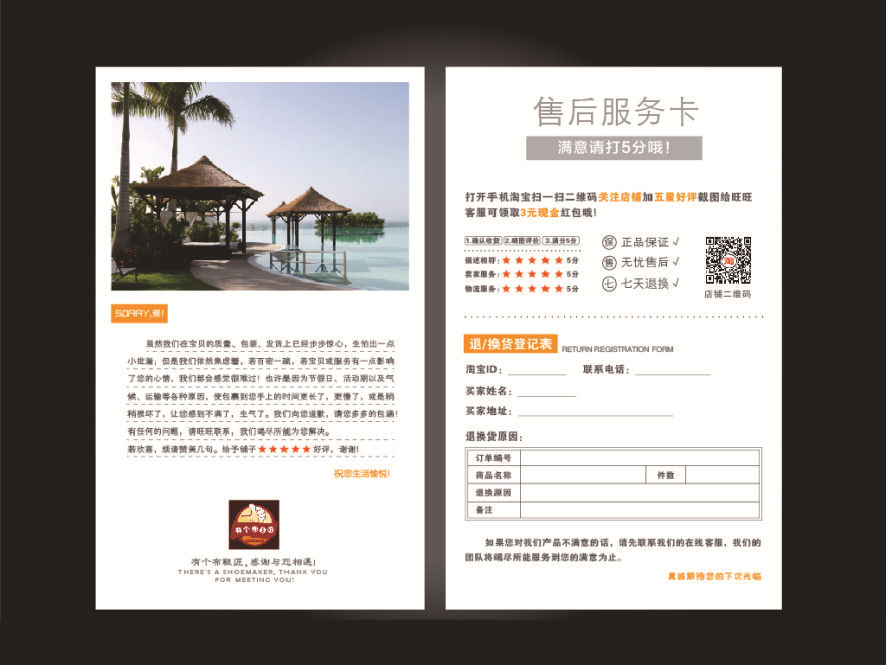 English after-sales card feedback card customization Thank you letter e-commerce service card printing