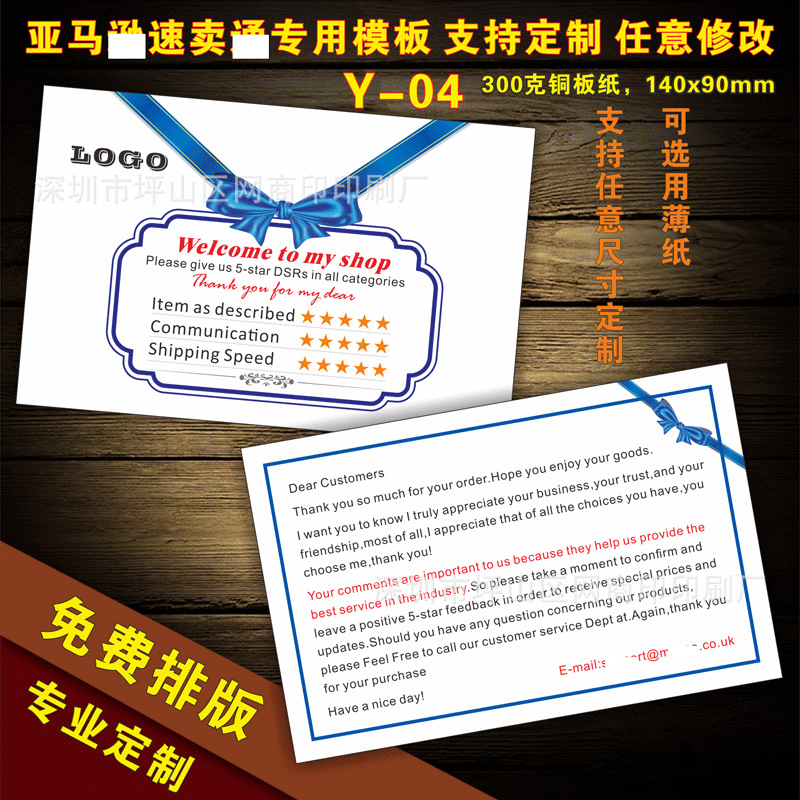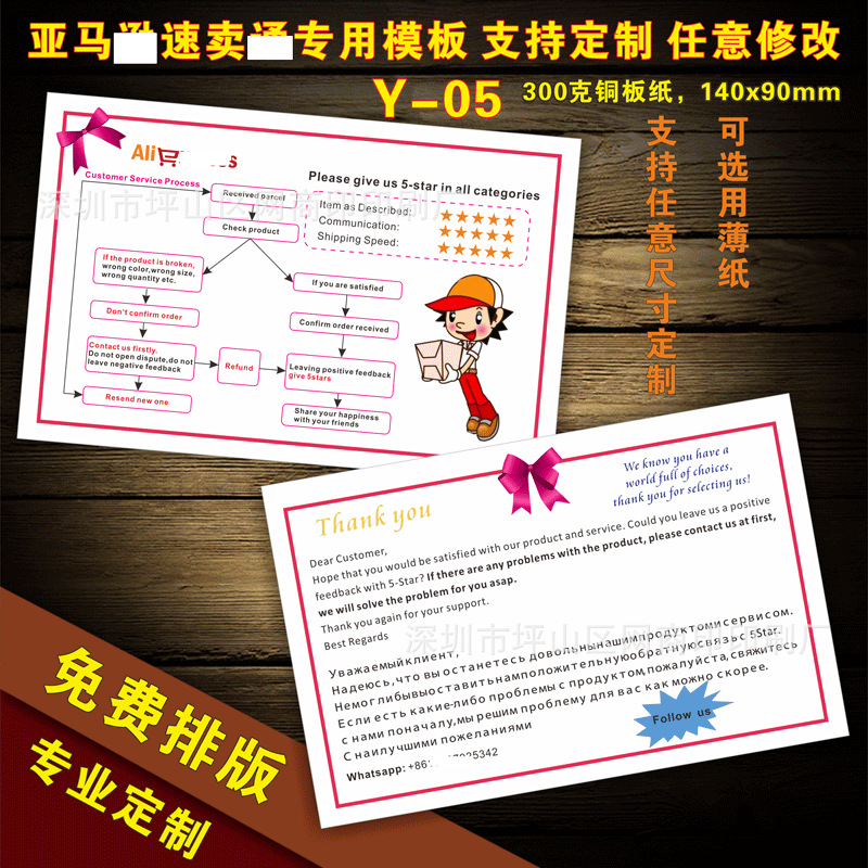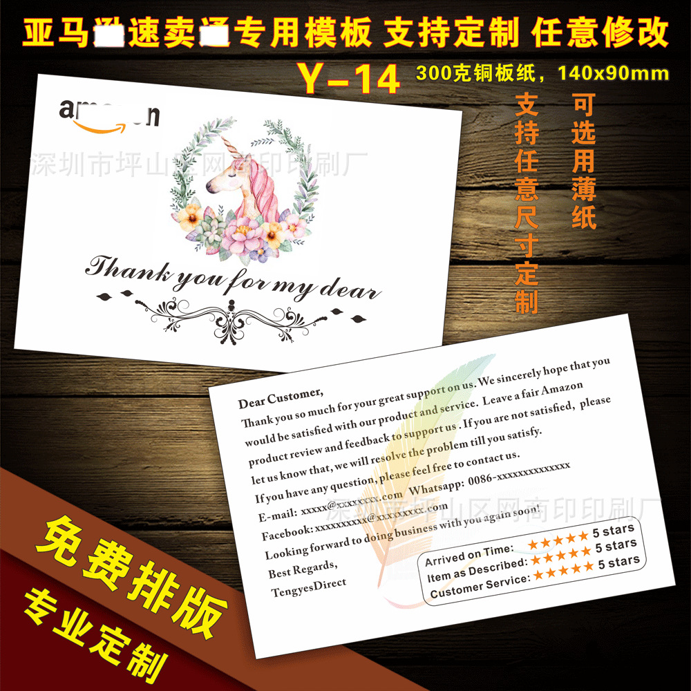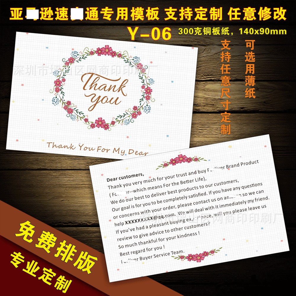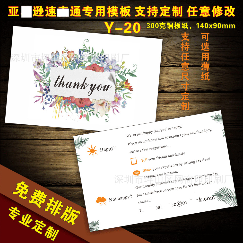 English after-sales service card praise card English thank you card manufacturers custom printing