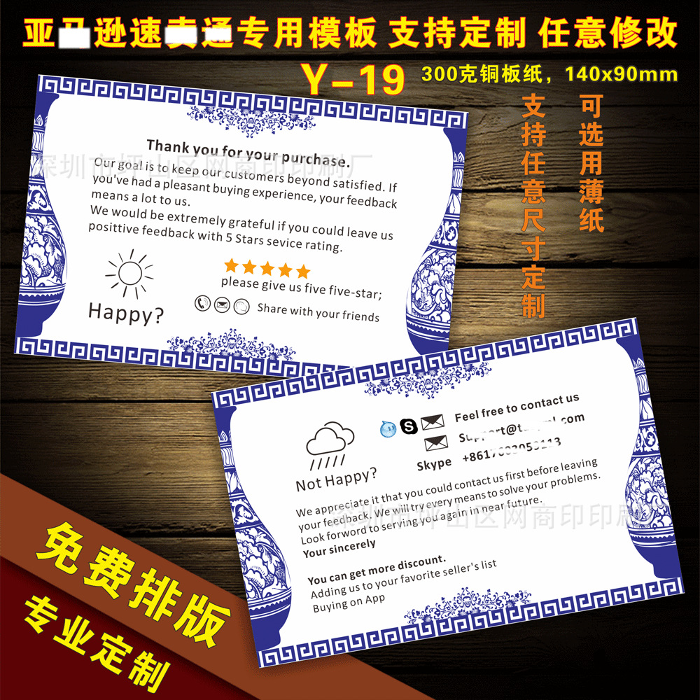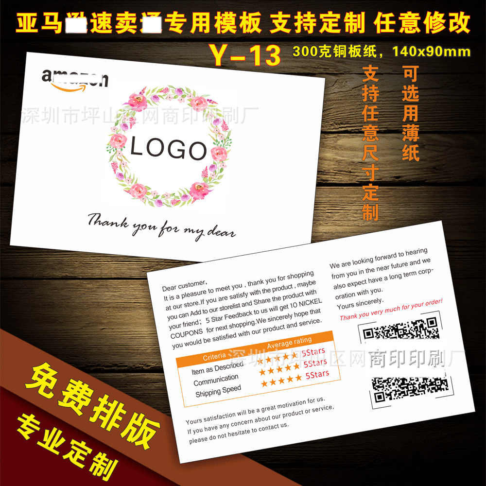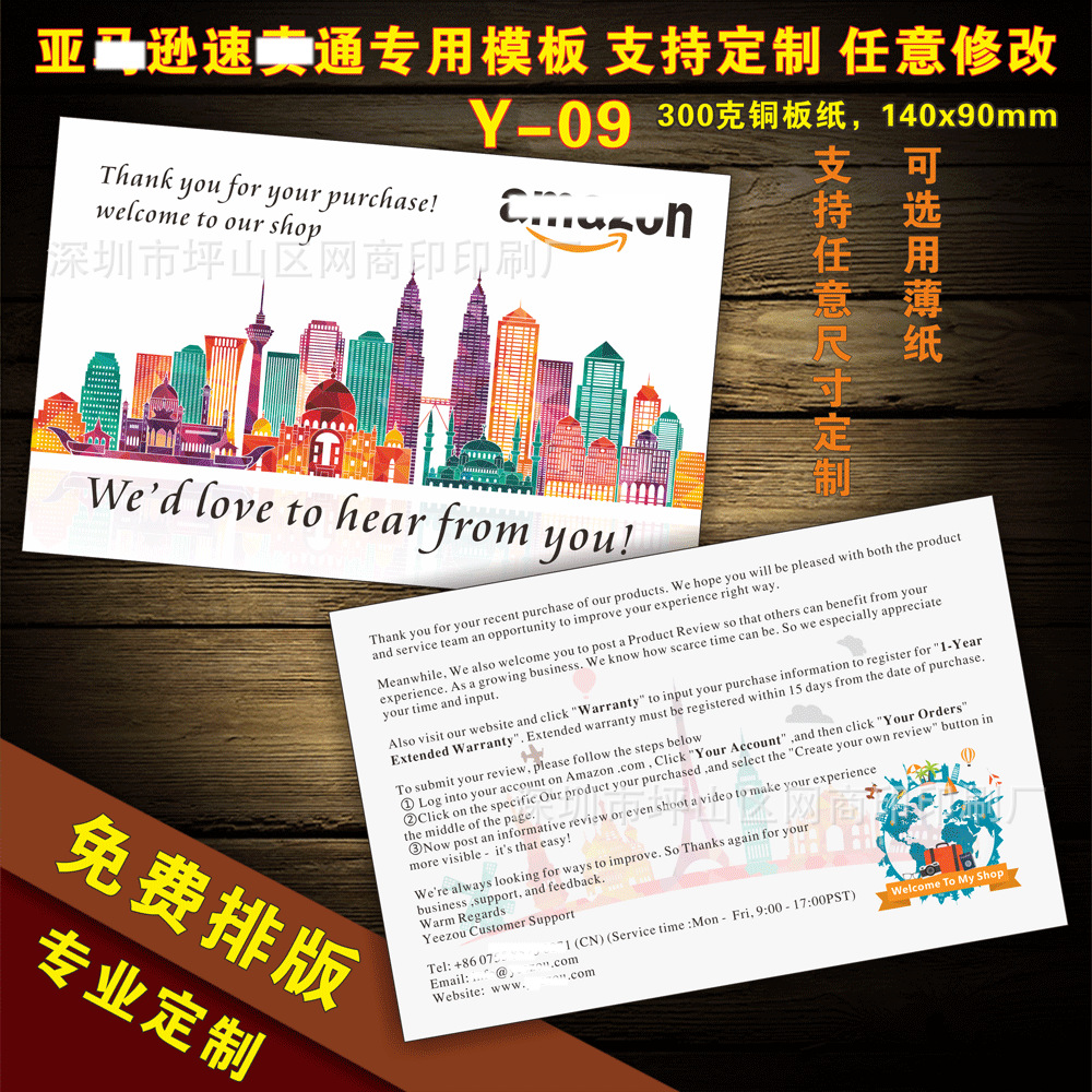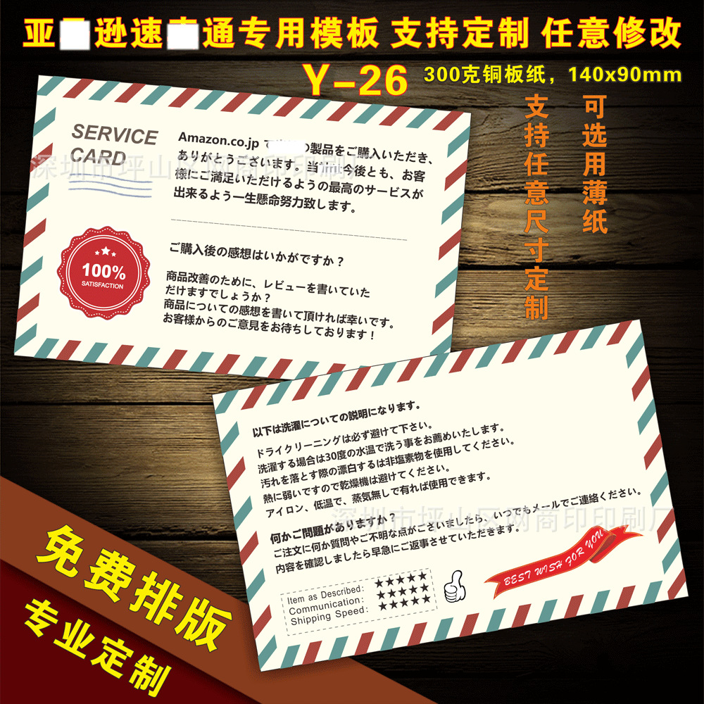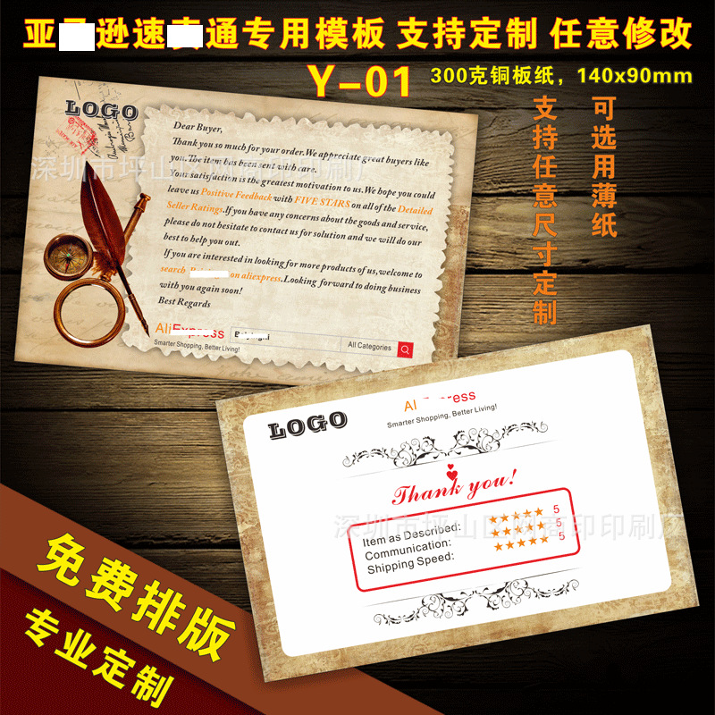 English after-sales service card praise card English thank you card manufacturers custom printing