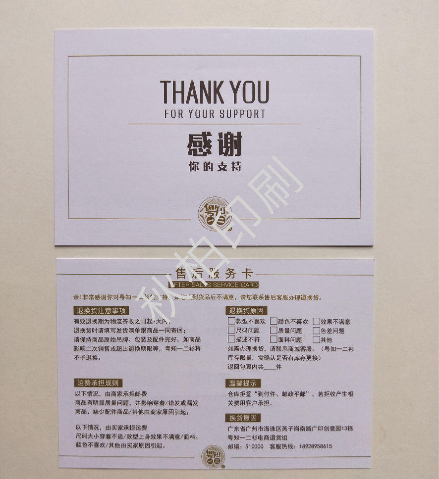 New after-sales service card customization Praise card English thank you letter manufacturers custom printing