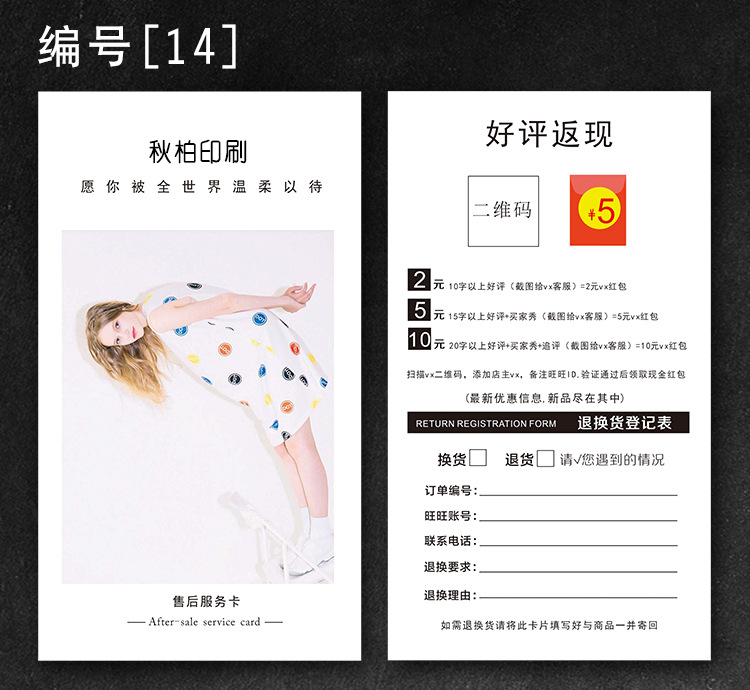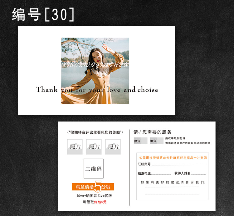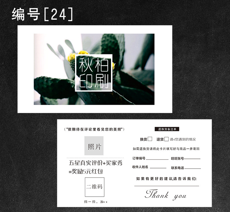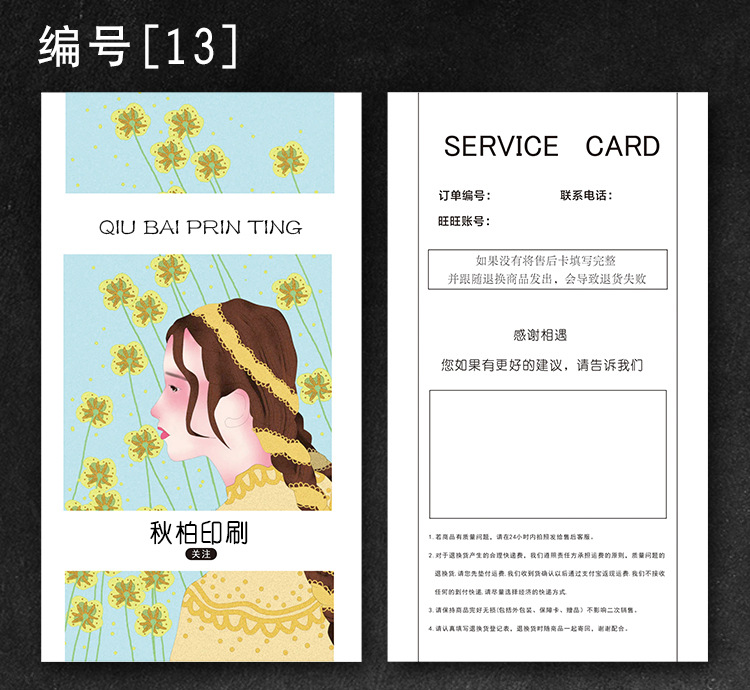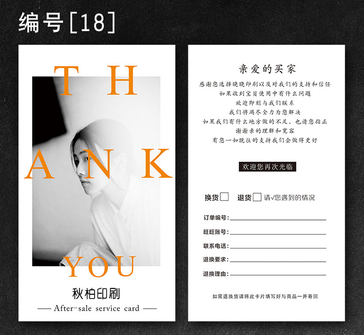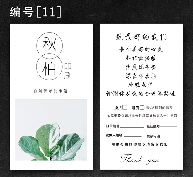Simple personality after-sales service card making thick paper card English thank you card creative card customization