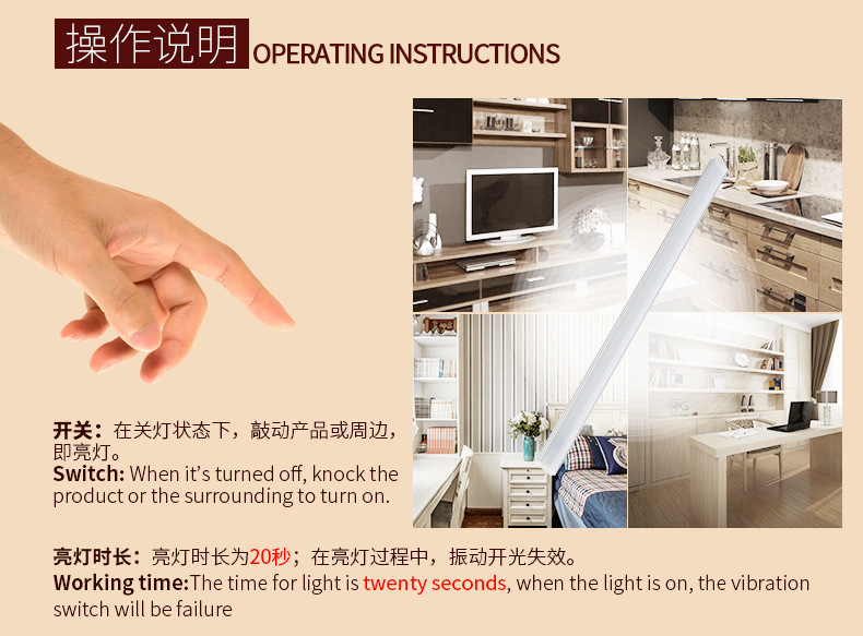Vibration induction creative night light USB charging models can be customized silk screen laser carving