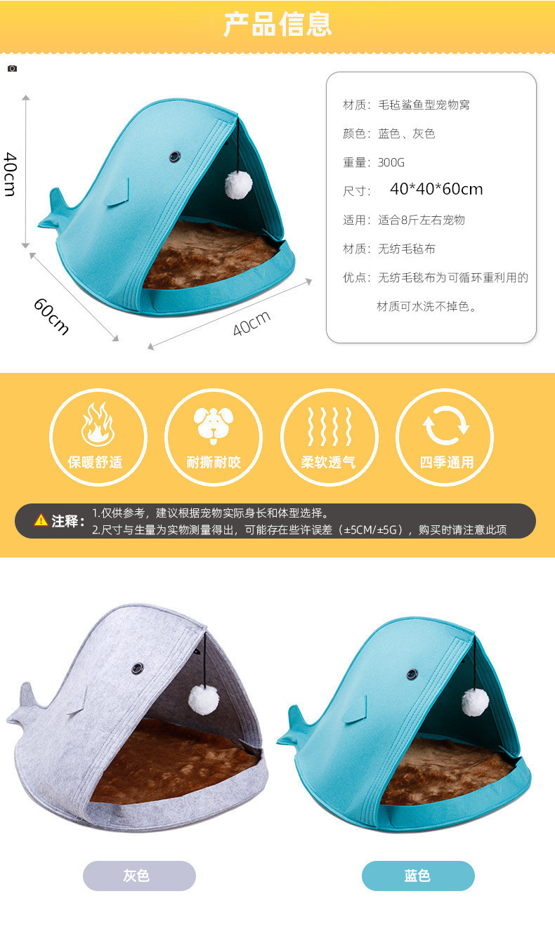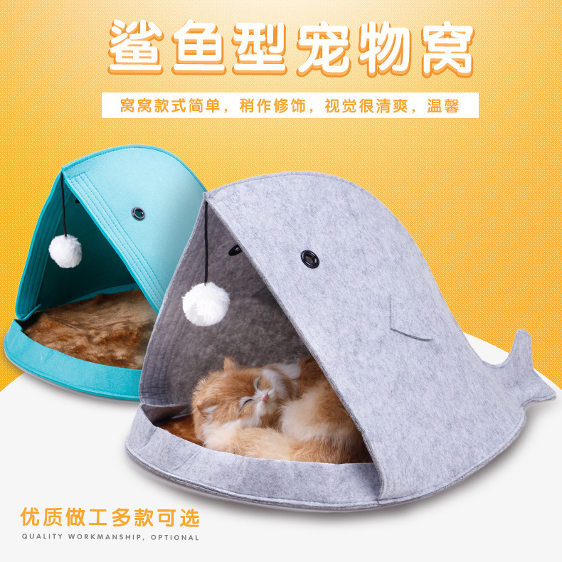 Professional production of shark cat nest pet supplies, felt pet house pet nest can be customized log