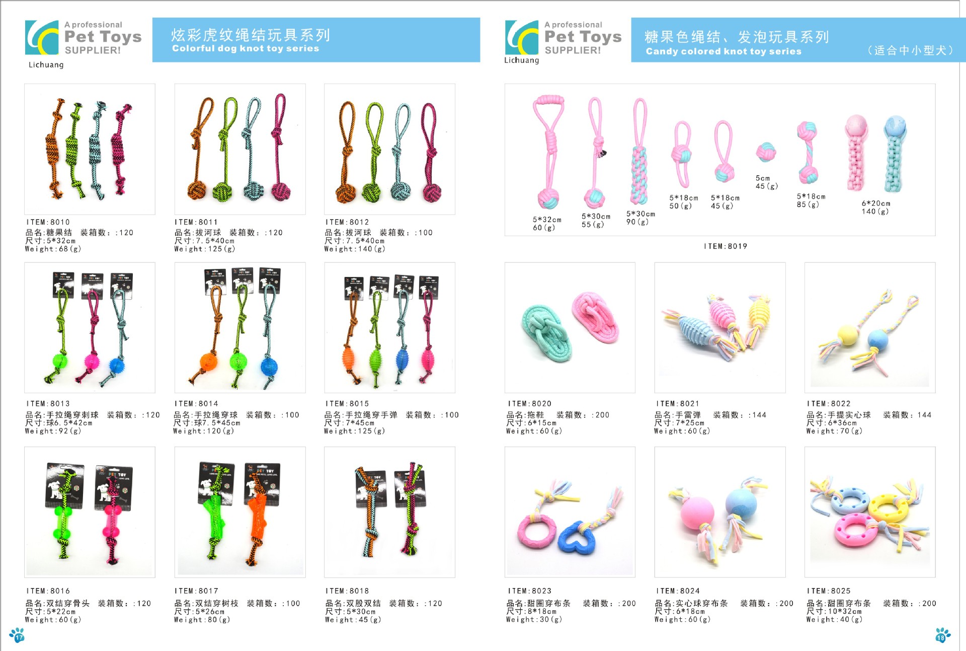 - Specifications: Cotton Rope ball small 6cm50G, cotton rope ball medium 7cm 80G, cotton rope ball large 9cm170G, portable six ring knot 38cm 120G, O-type with tennis ball 20cm110G, slippers 18cm 70G, double-strand double-knot tennis 38cm160G, two-color corn on the cob 20cm 110G, three-color dumbbell 20cm110G, tug ball 38cm80G, two-color lifting basketball 18cm70G, 8 string rope 28cm 100G, big dog dog ring 19cm 280G, double knot stab bar 20CM50G, hand-woven cotton bone 15cm55G, carrot 15cm50G, color core double knot Rope small 18cm25G, color core double knot rope medium 25CM 55g, double knot rope large 31cm90G, corn cob 20cm110G, small cotton rope knot 18cm25G