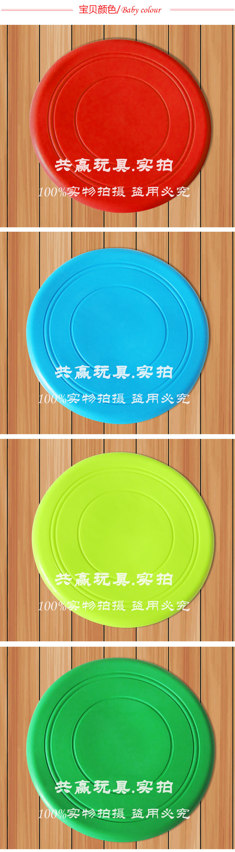 - Specifications: mixed color random flying disc, fruit green flying disc, green flying disc, big red flying disc, purple flying disc, orange Frisbee, red frisbee, blue frisbee