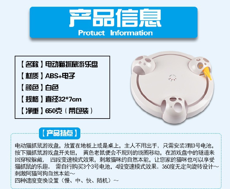 Pet supplies automatic rotating mouse cat turntable smart electric play board cat toy shadowless mouse cat turntable