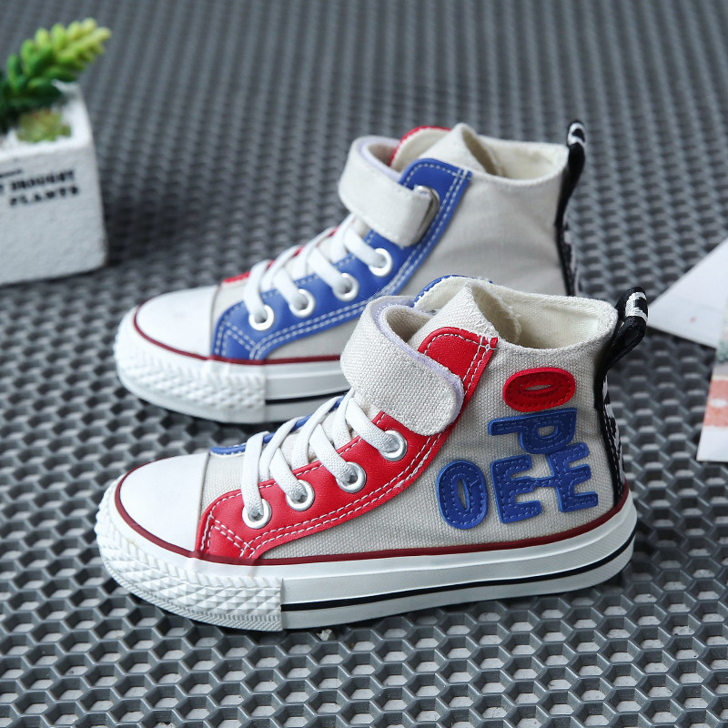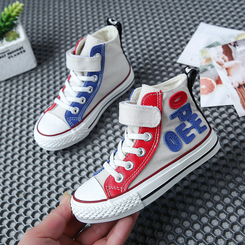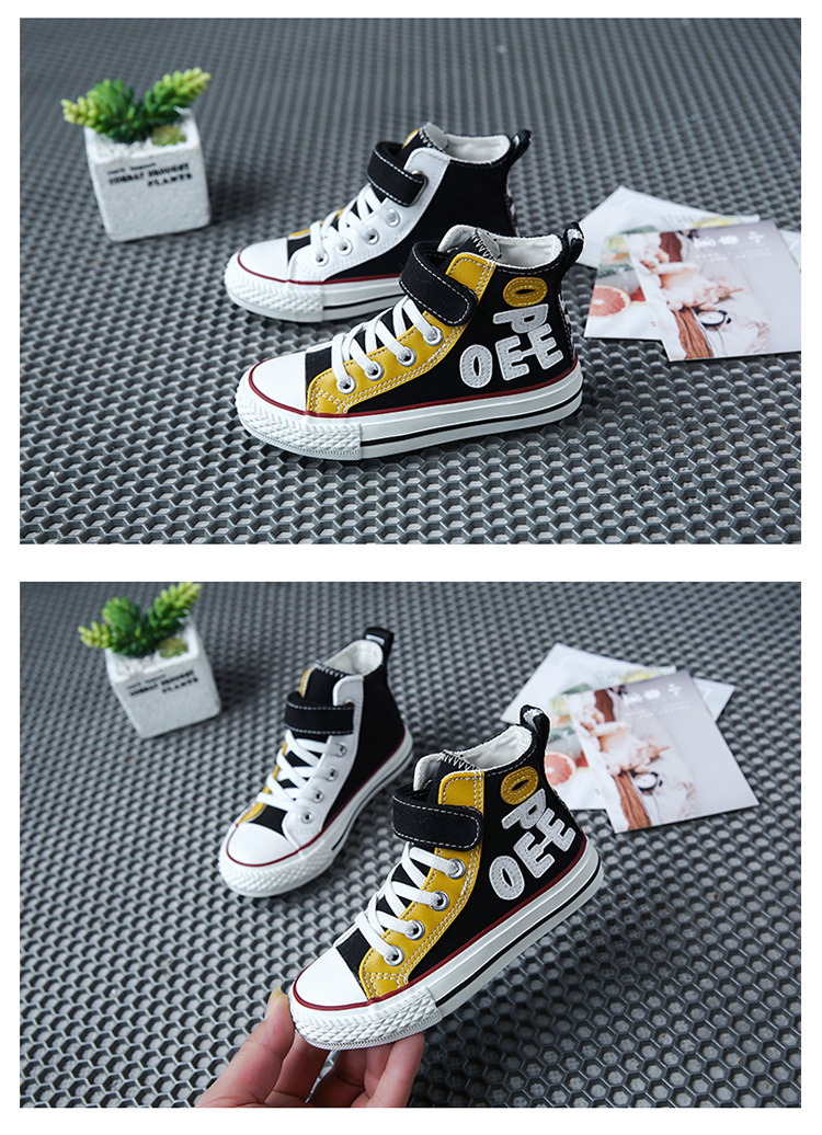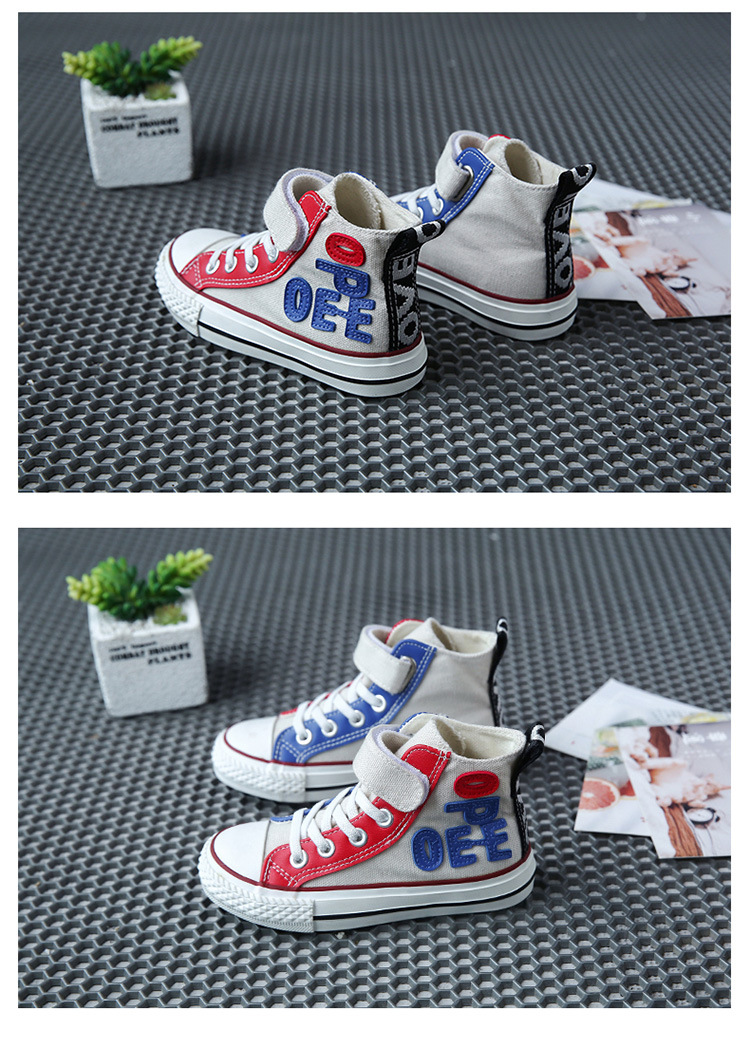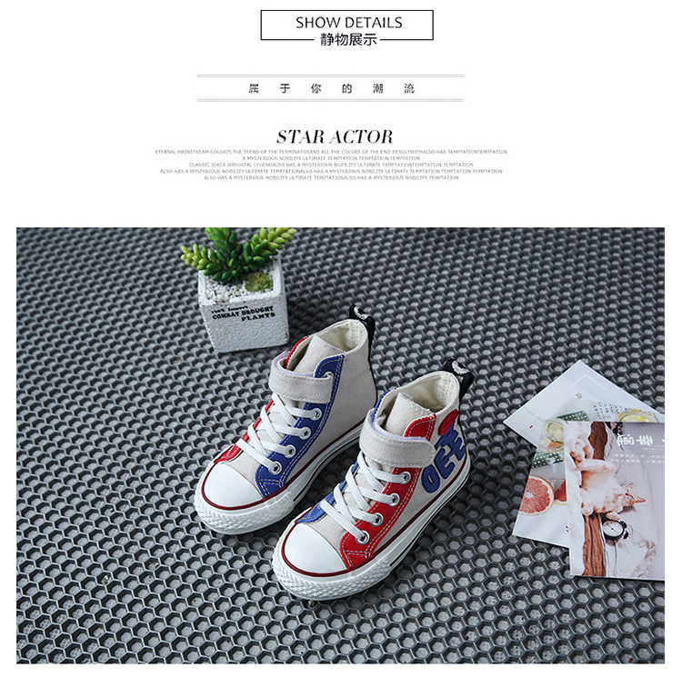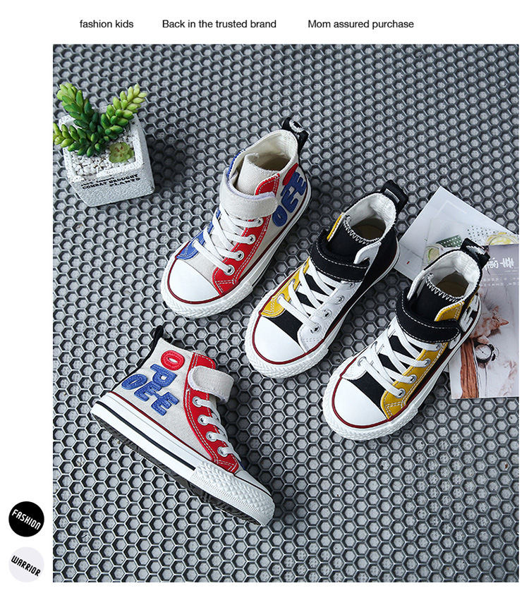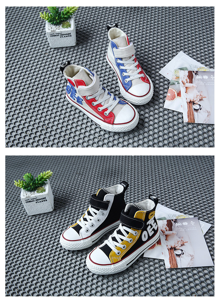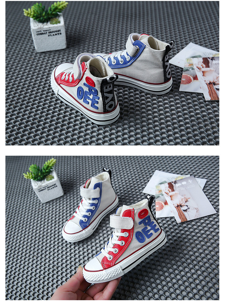 19 spring and autumn child canvas shoes letters spell color boys shoes girls high-top Casual Shoes baby shoes Board shoes
