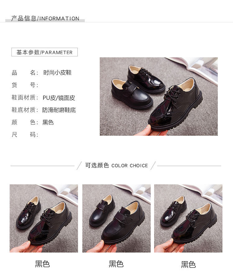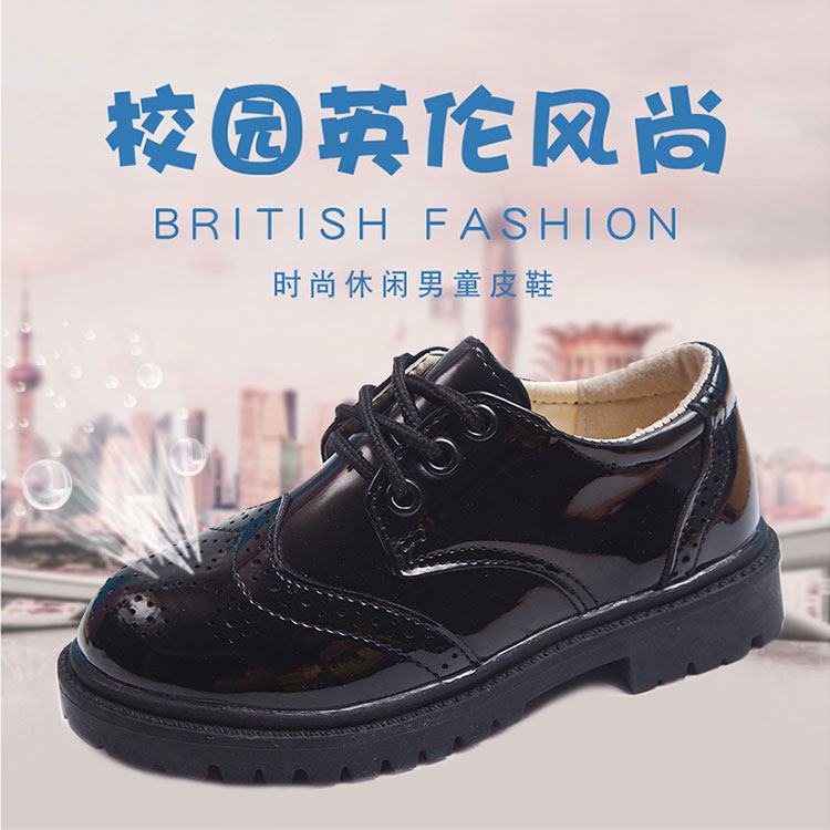 Boys’ shoes black British new children’s casual little boy performance dress shoes middle school children