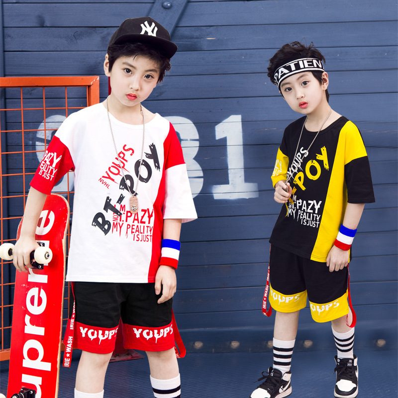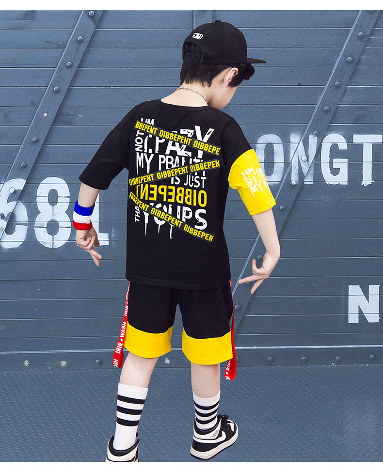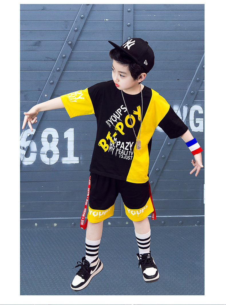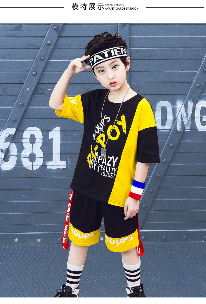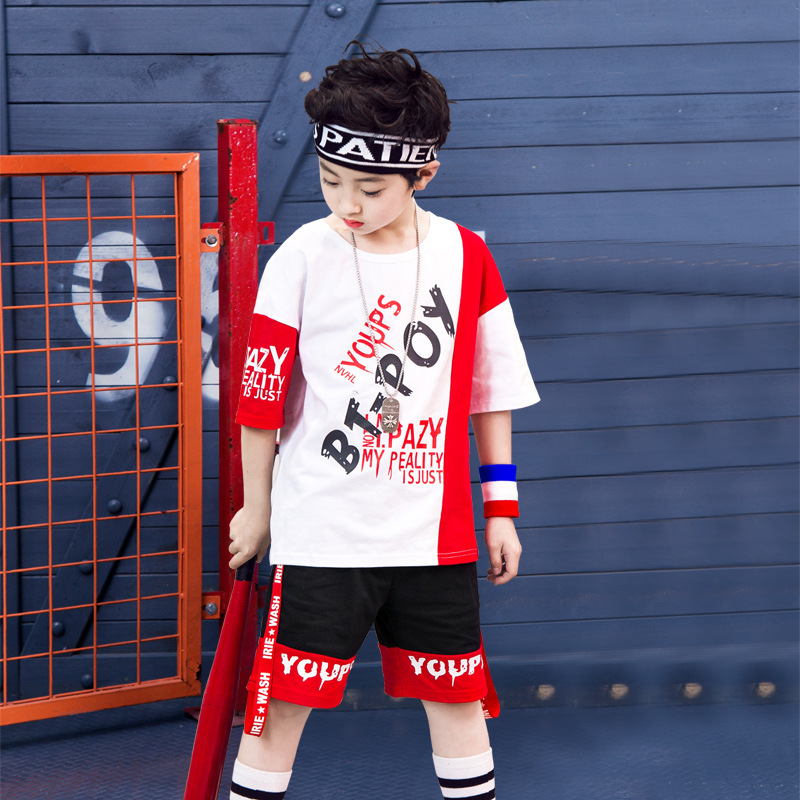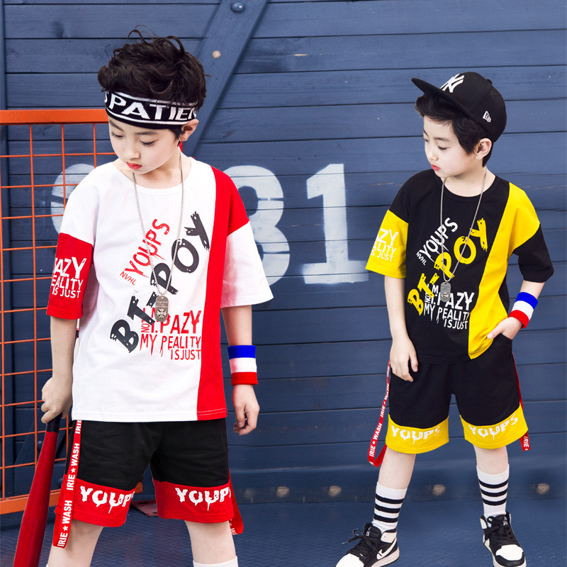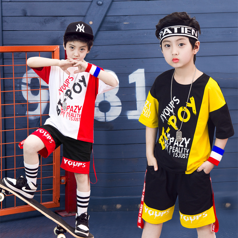 Children’s hip-hop dance clothes summer boy short-sleeved suit boy practice clothes cotton two-piece tide children’s clothing wholesale