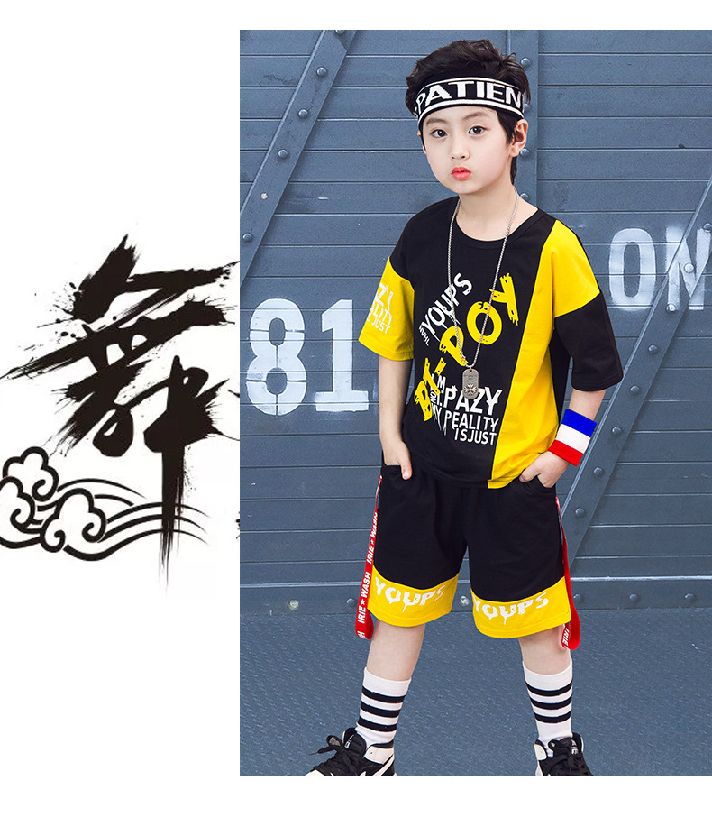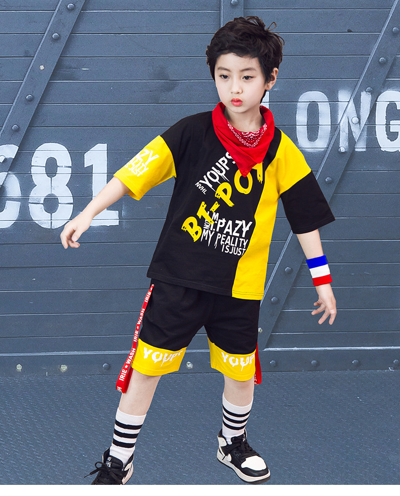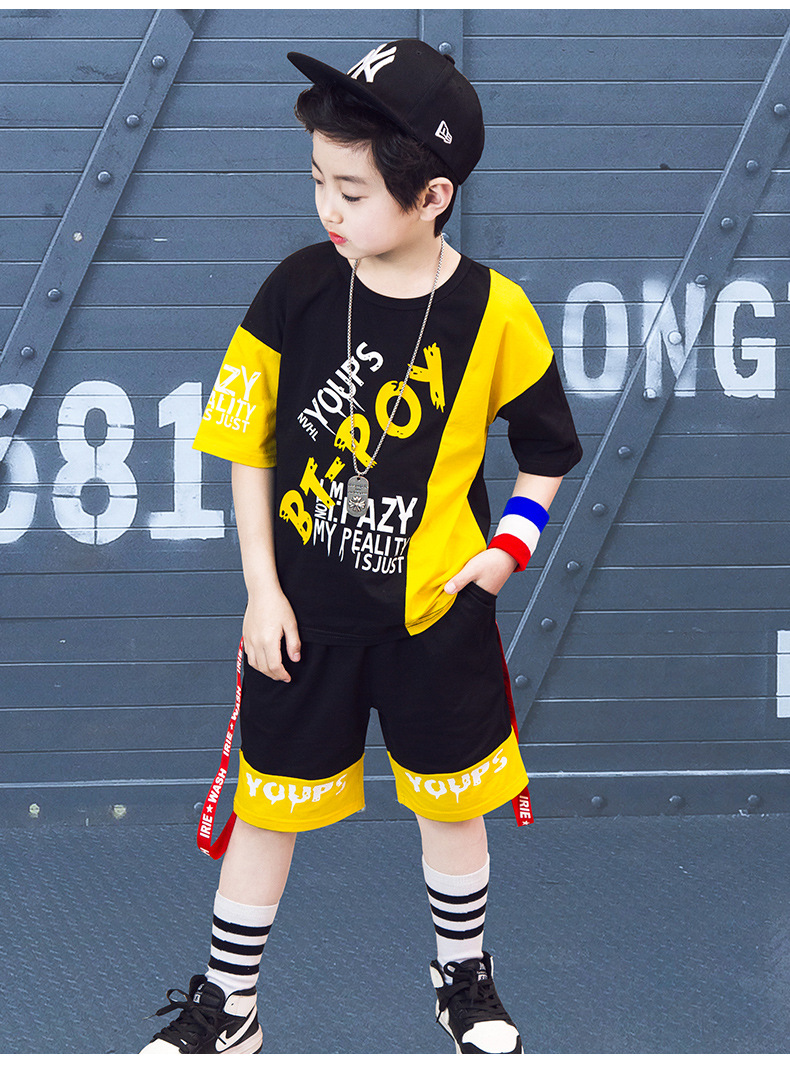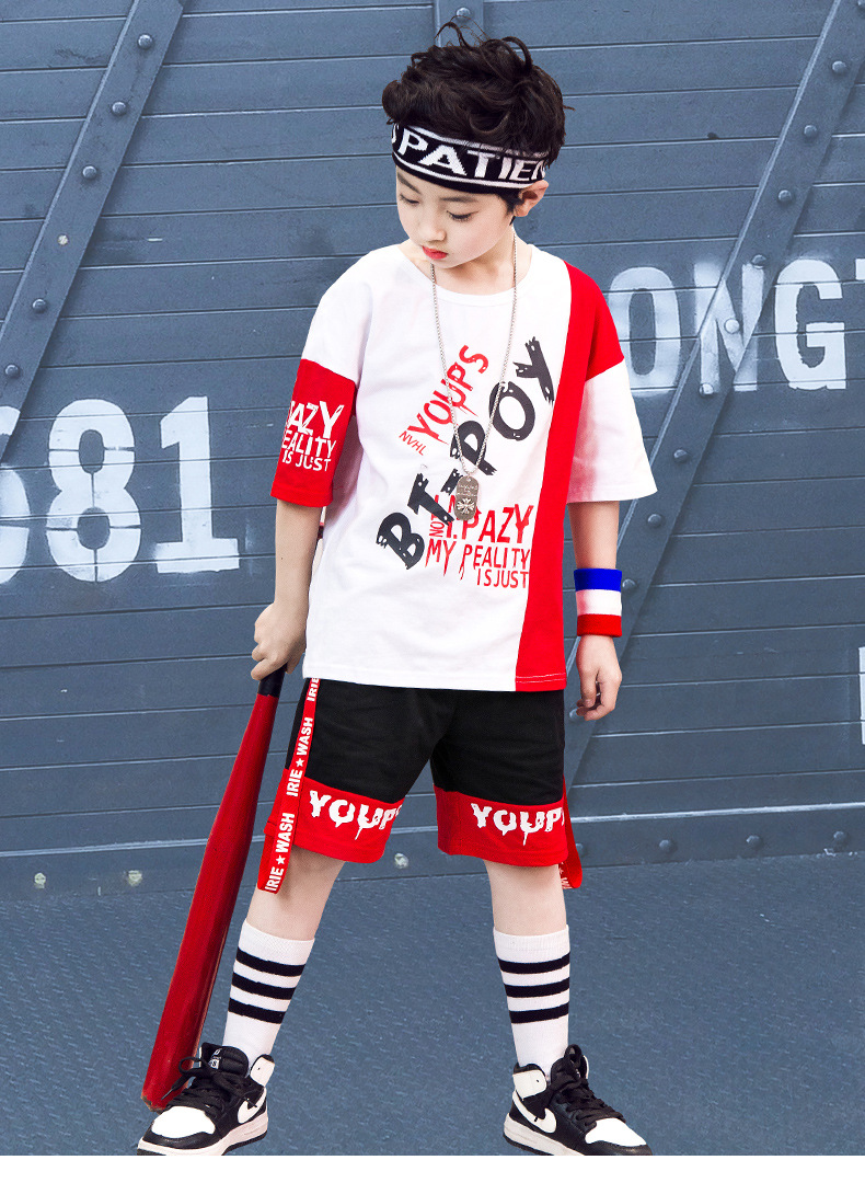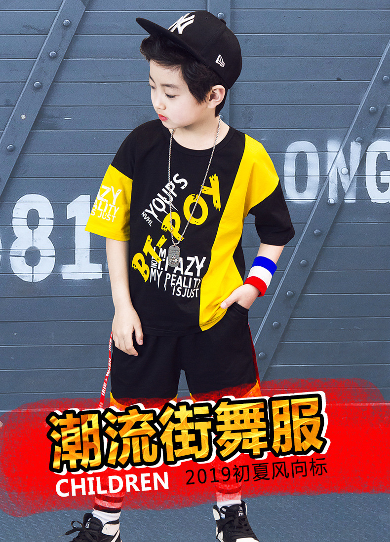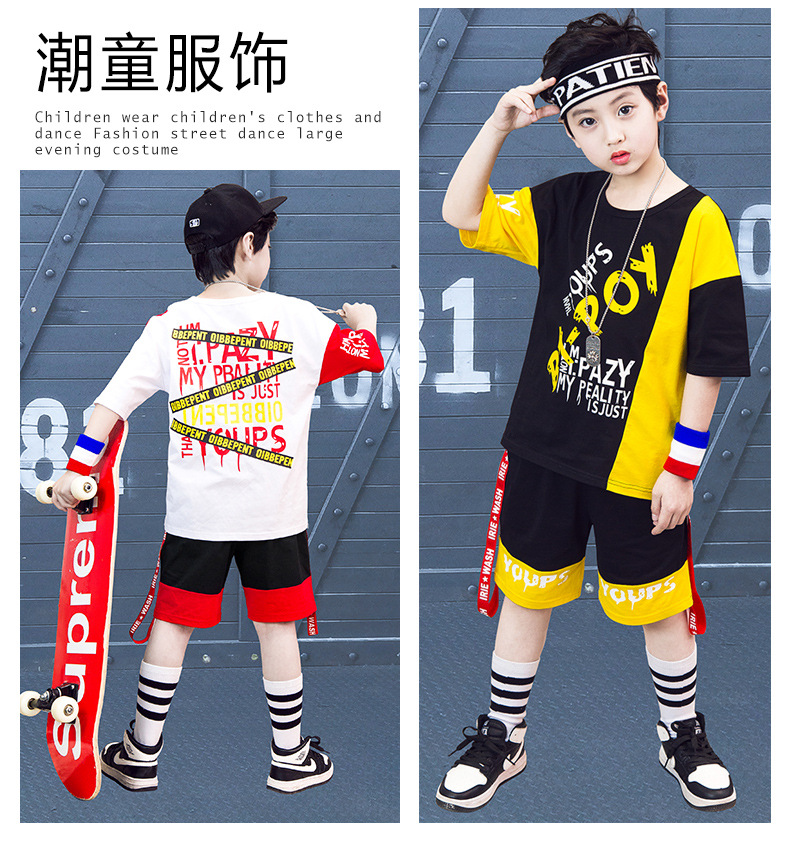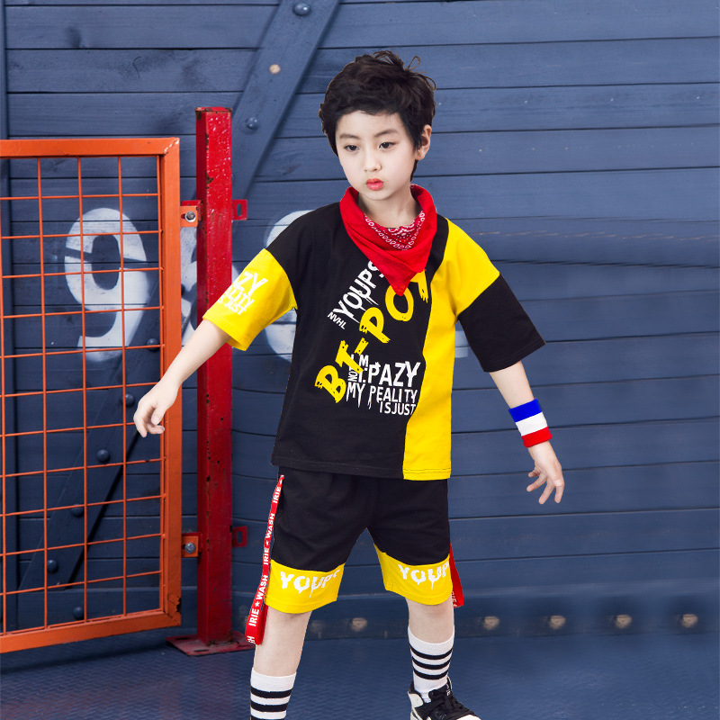 Children’s hip-hop dance clothes summer boy short-sleeved suit boy practice clothes cotton two-piece tide children’s clothing wholesale