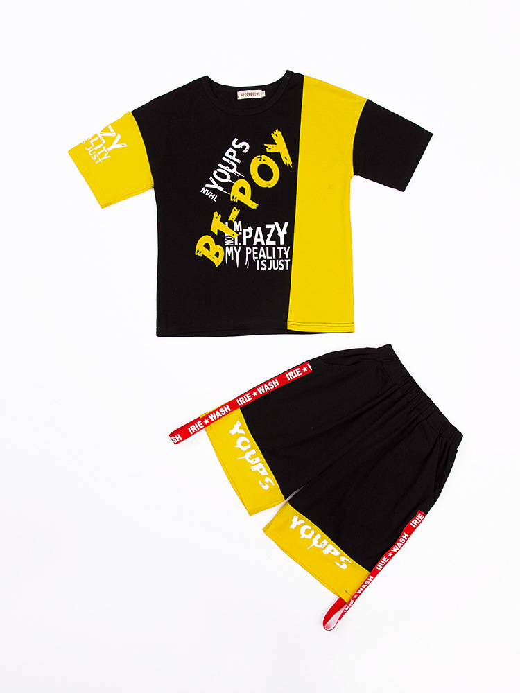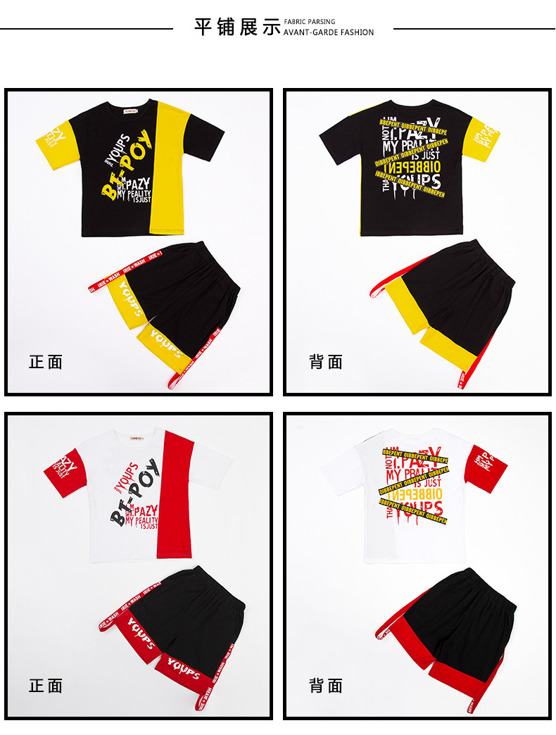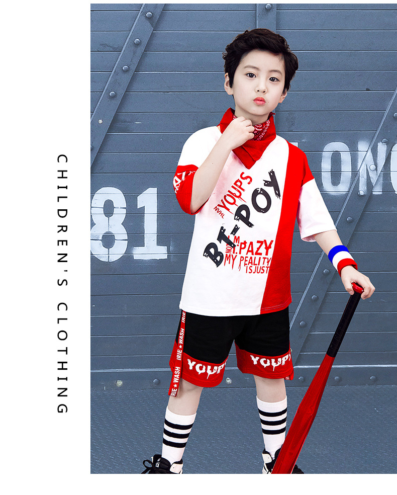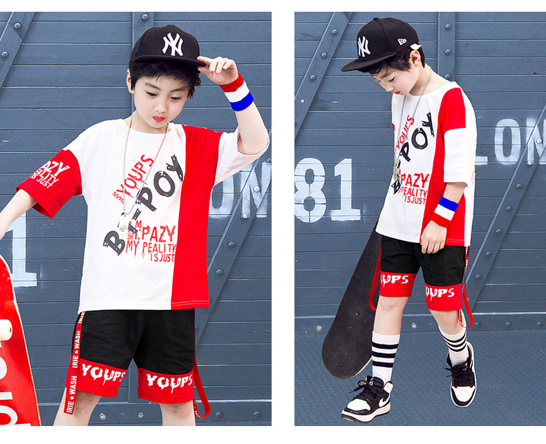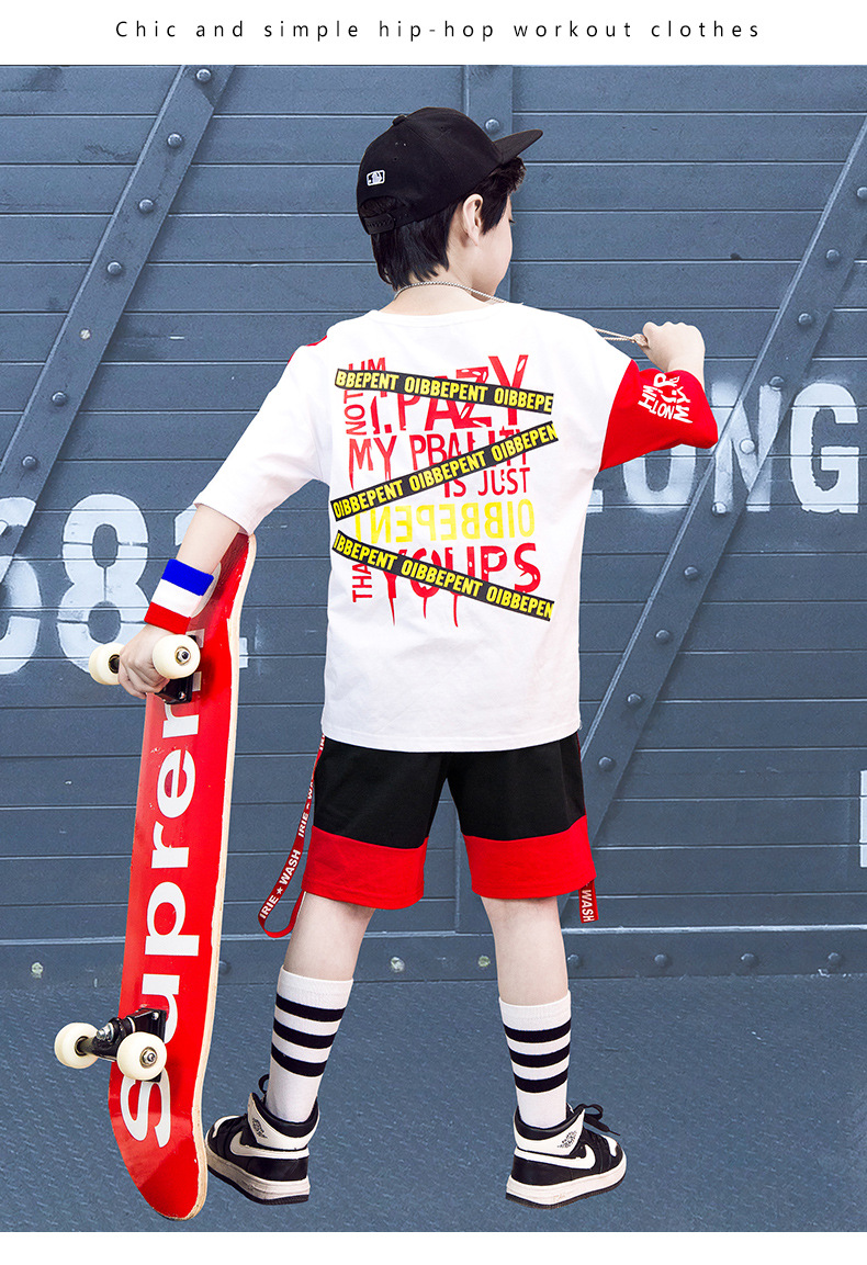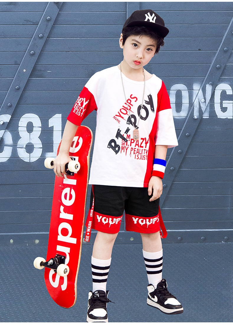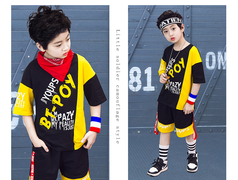 Children’s hip-hop dance clothes summer boy short-sleeved suit boy practice clothes cotton two-piece tide children’s clothing wholesale