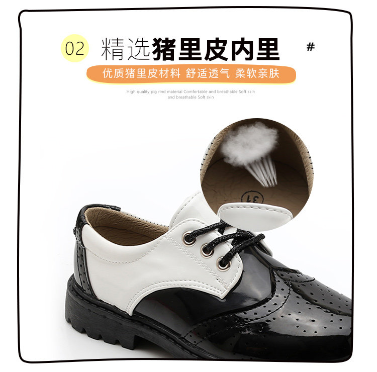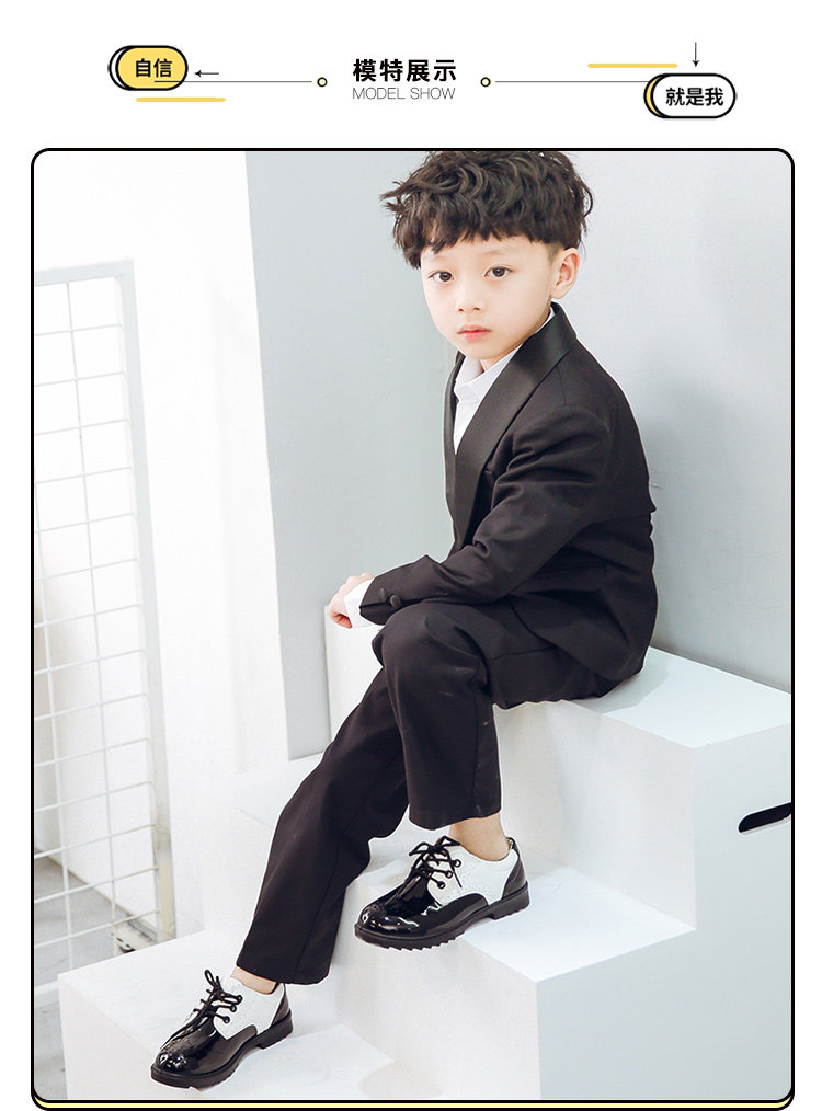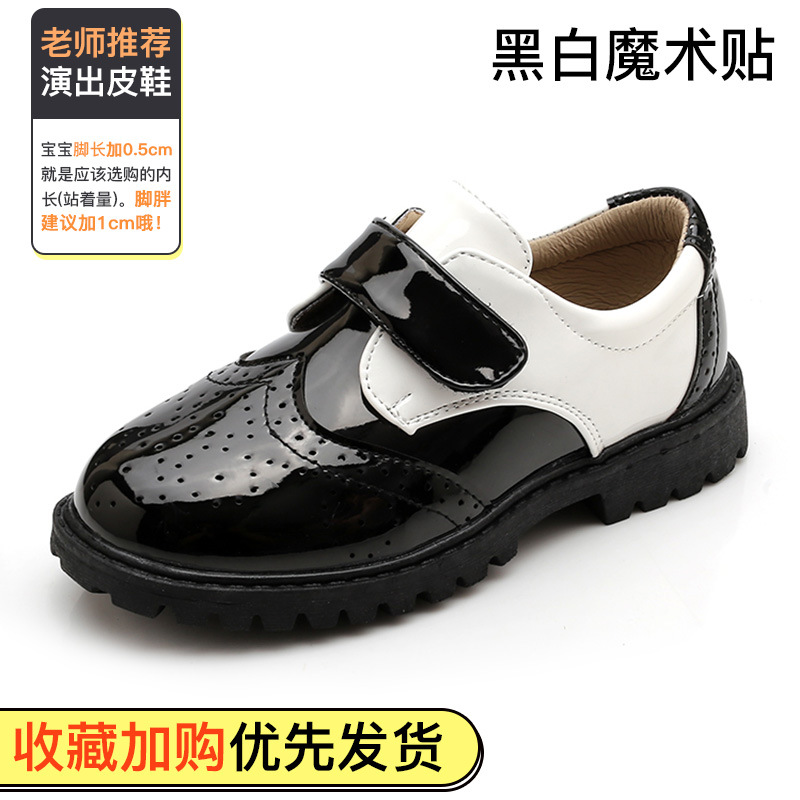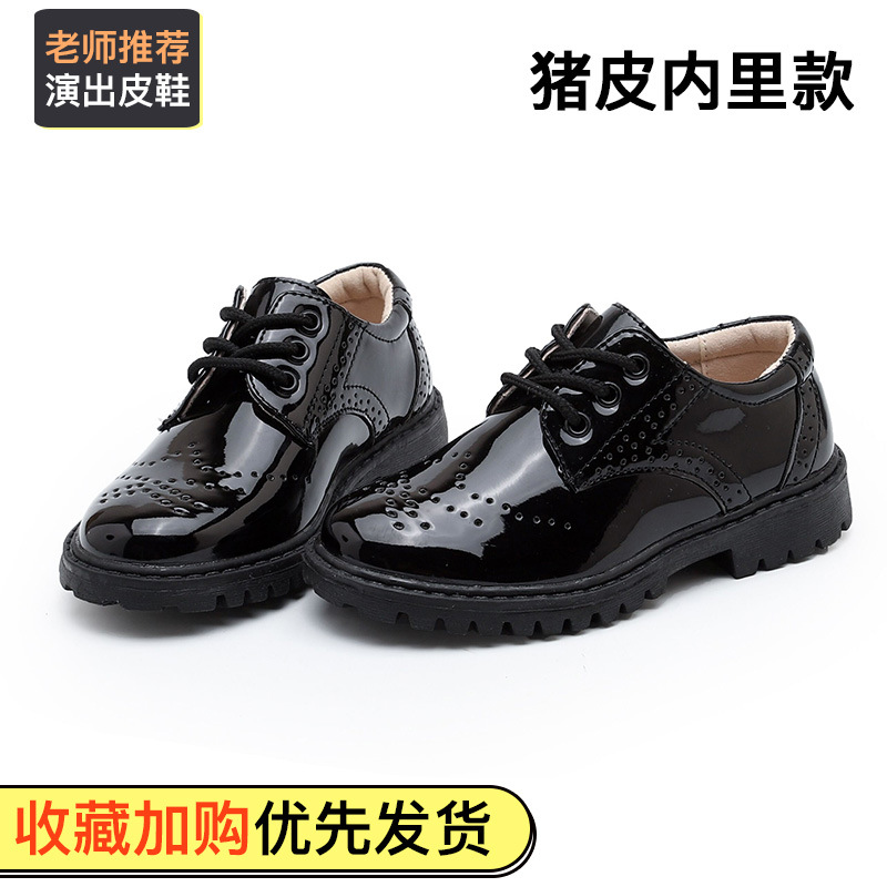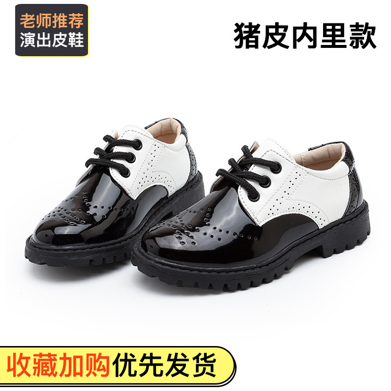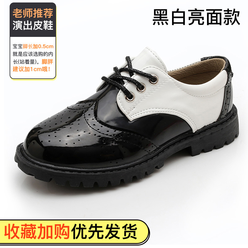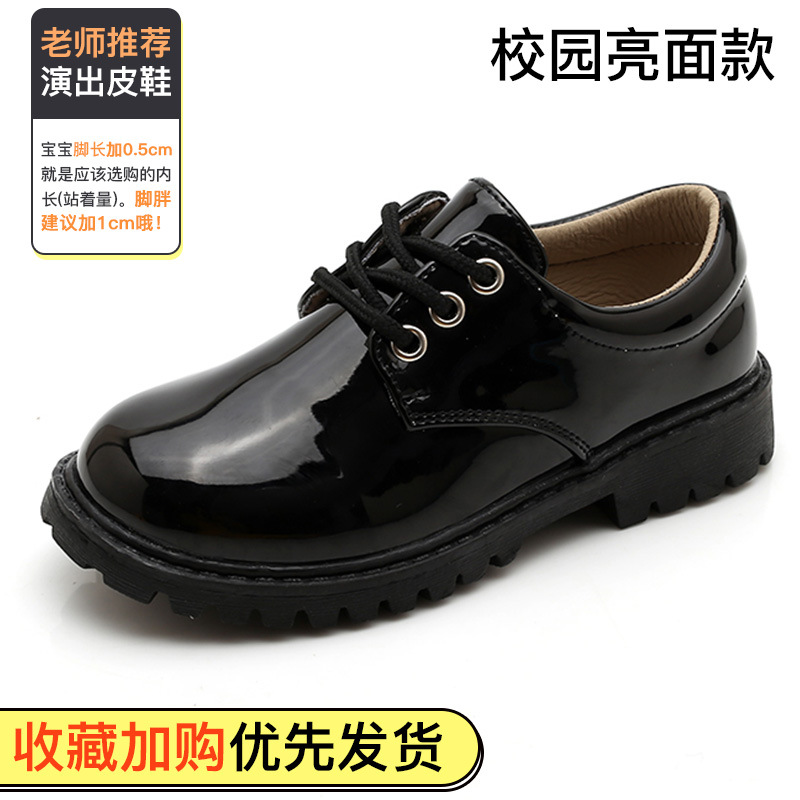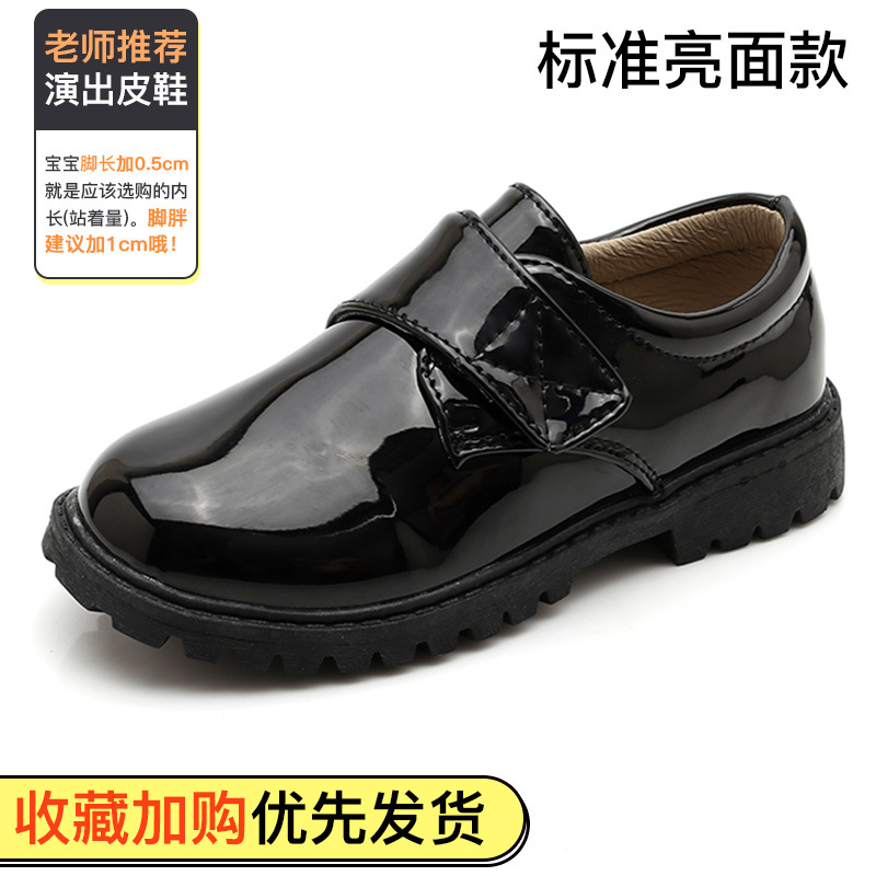 New boy leather shoes, soft bottom, big boy, black English dress, student child, little boy performing vacation