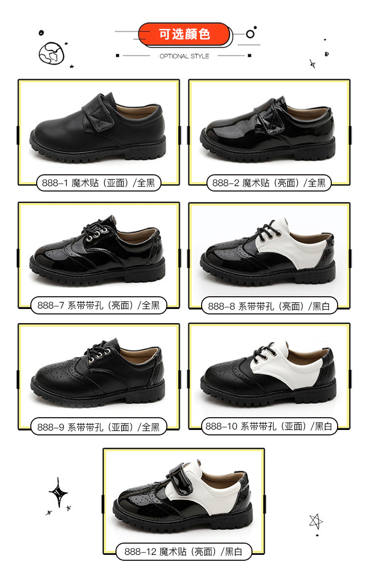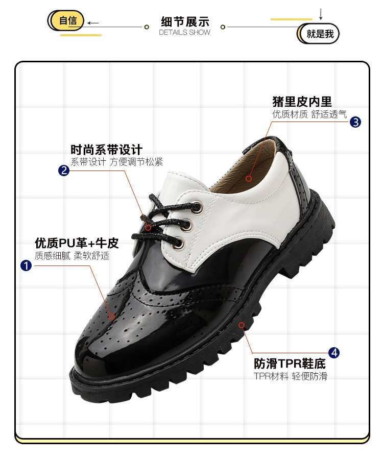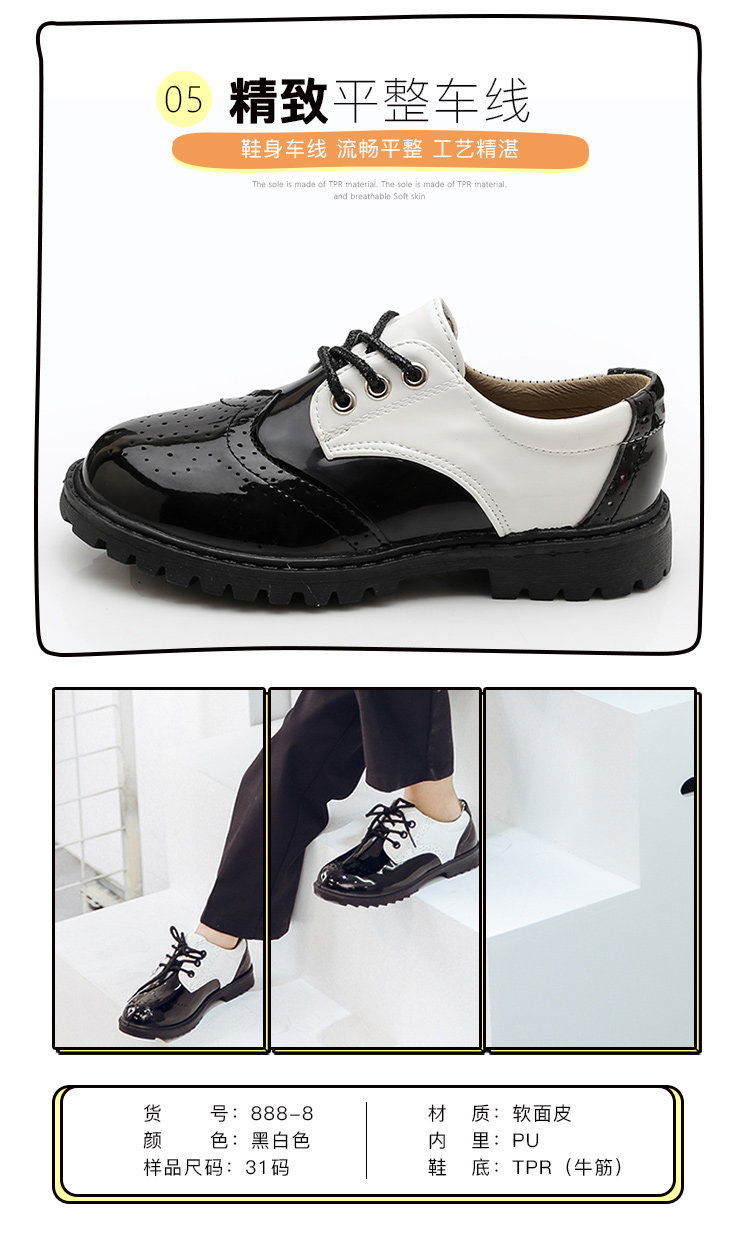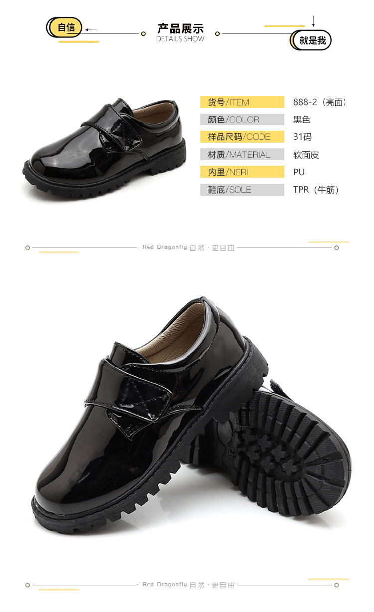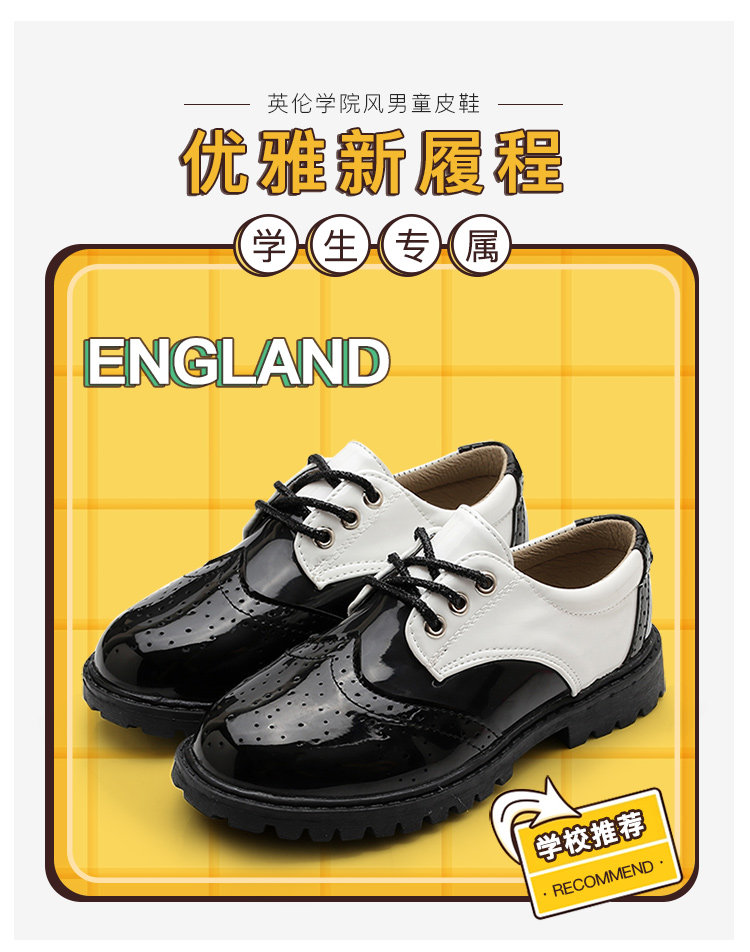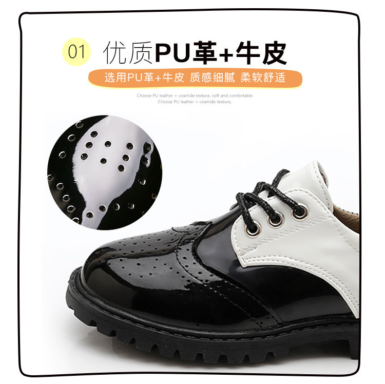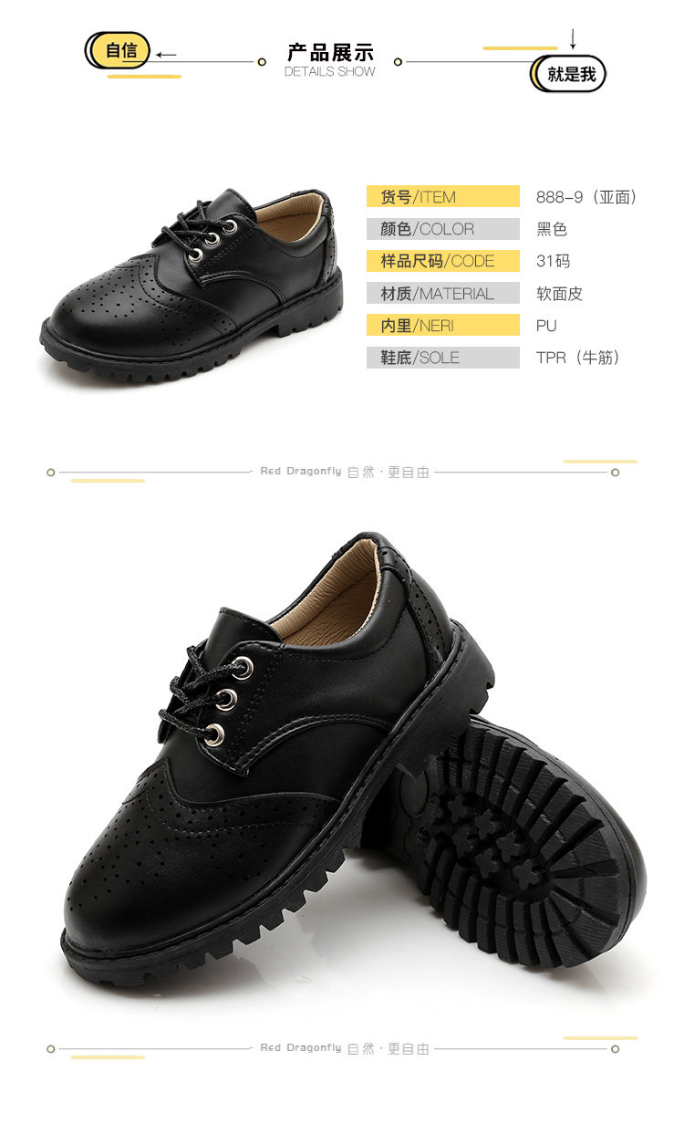 New boy leather shoes, soft bottom, big boy, black English dress, student child, little boy performing vacation