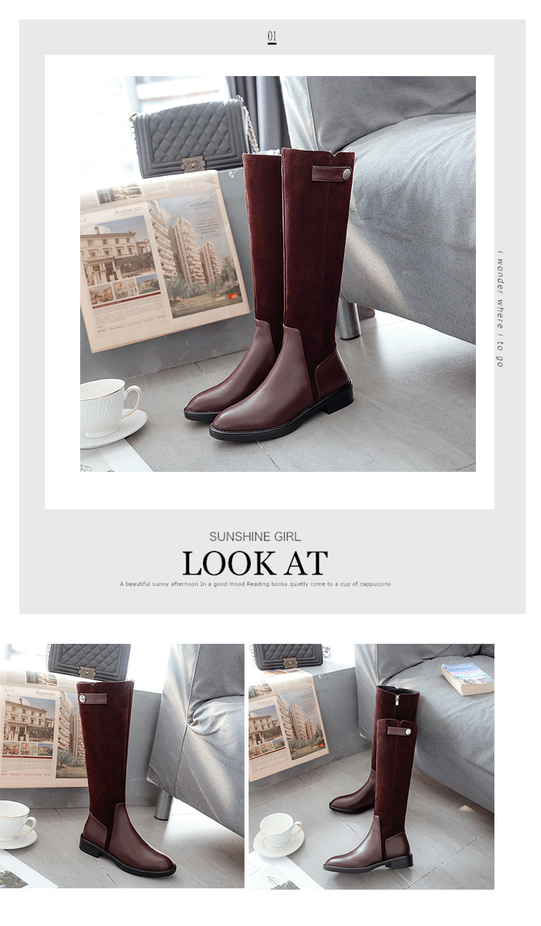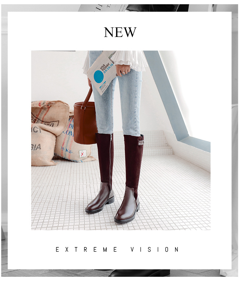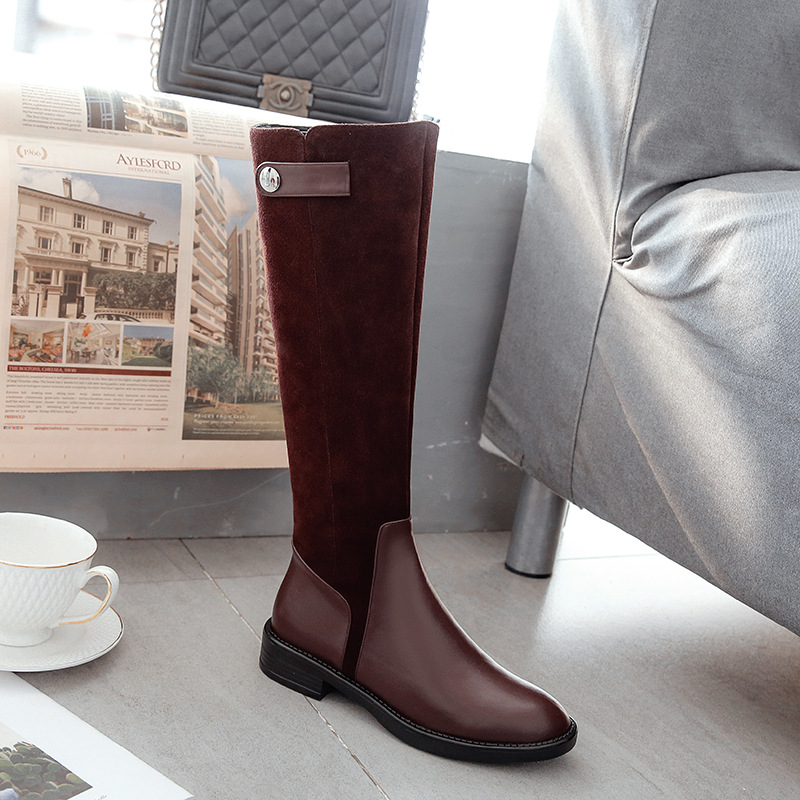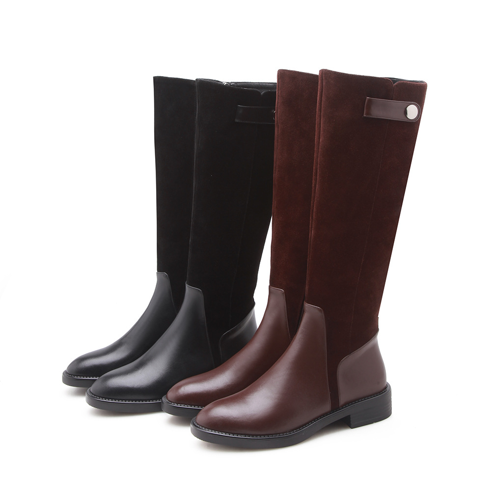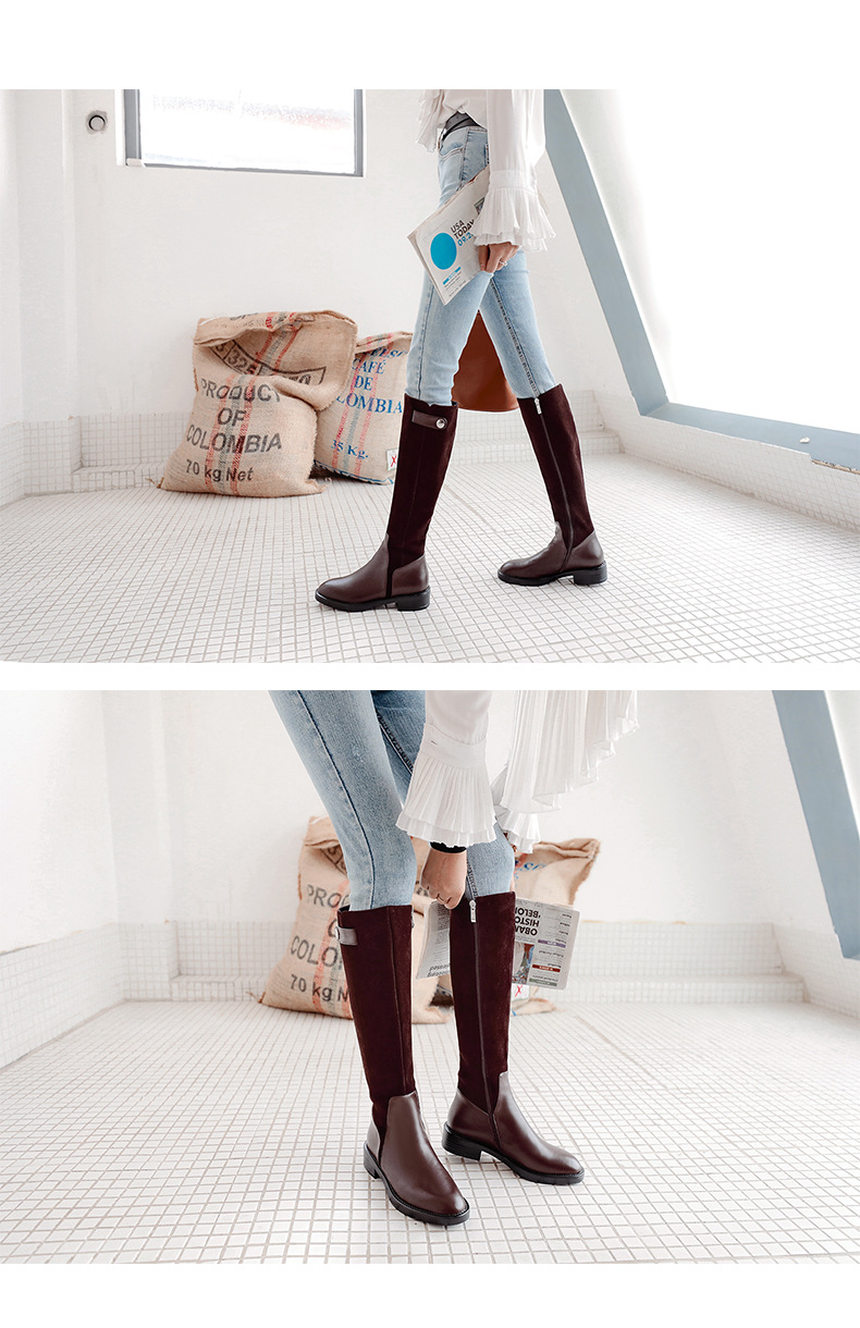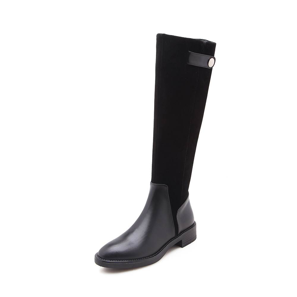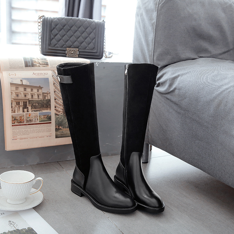 Full leather Knight boots knee-high boots Winter new low-heeled thick heel genuine leather female shoes scrubs warm