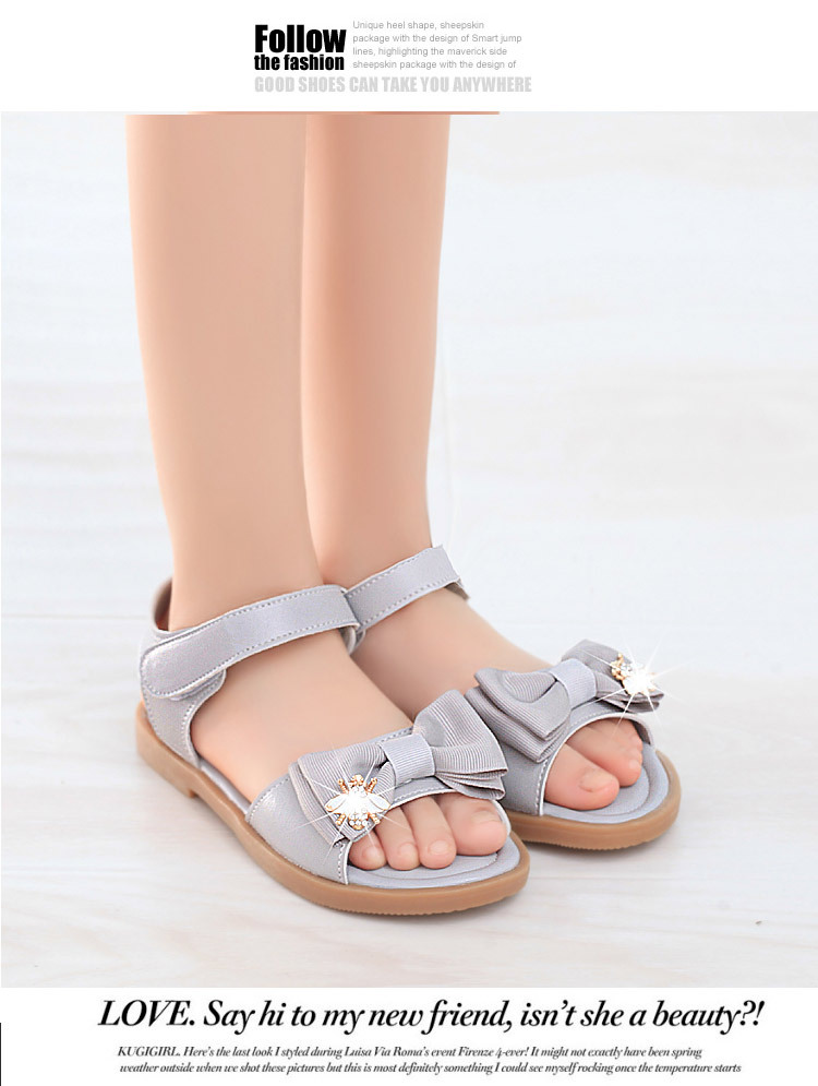 Yilan Gege summer new ladies girls bow princess sandals beef tendon bottom children shoes 27-37 yards