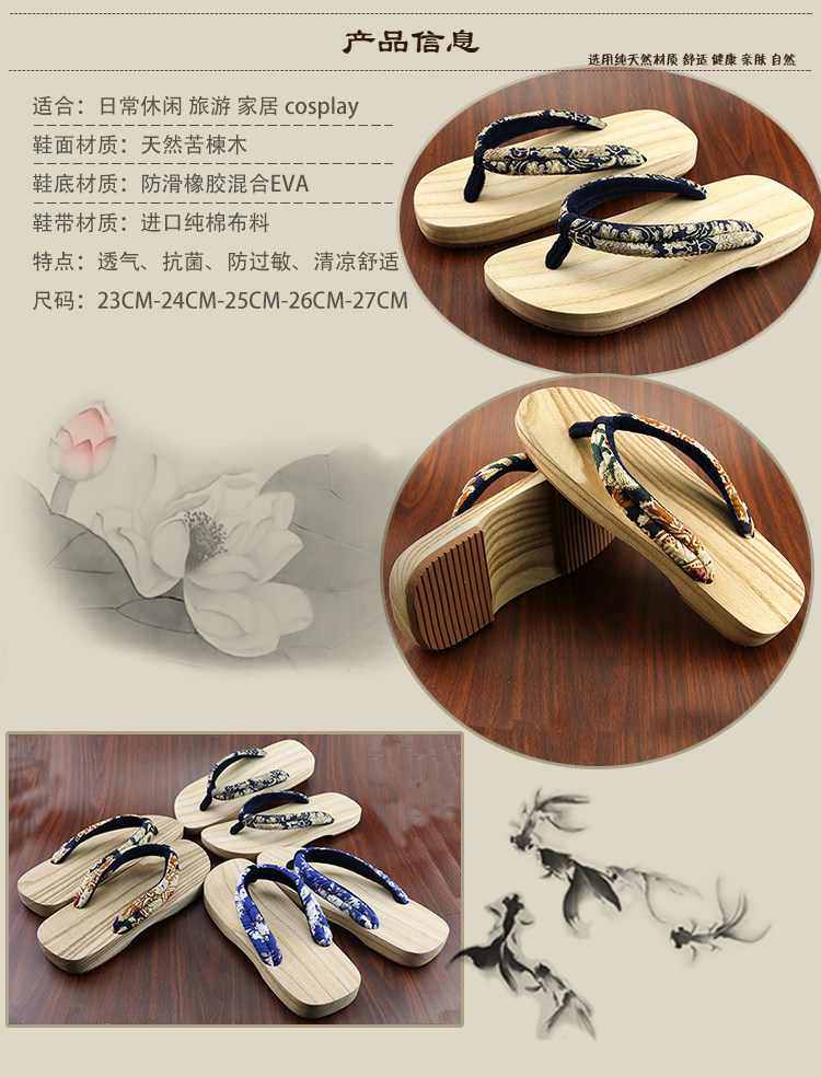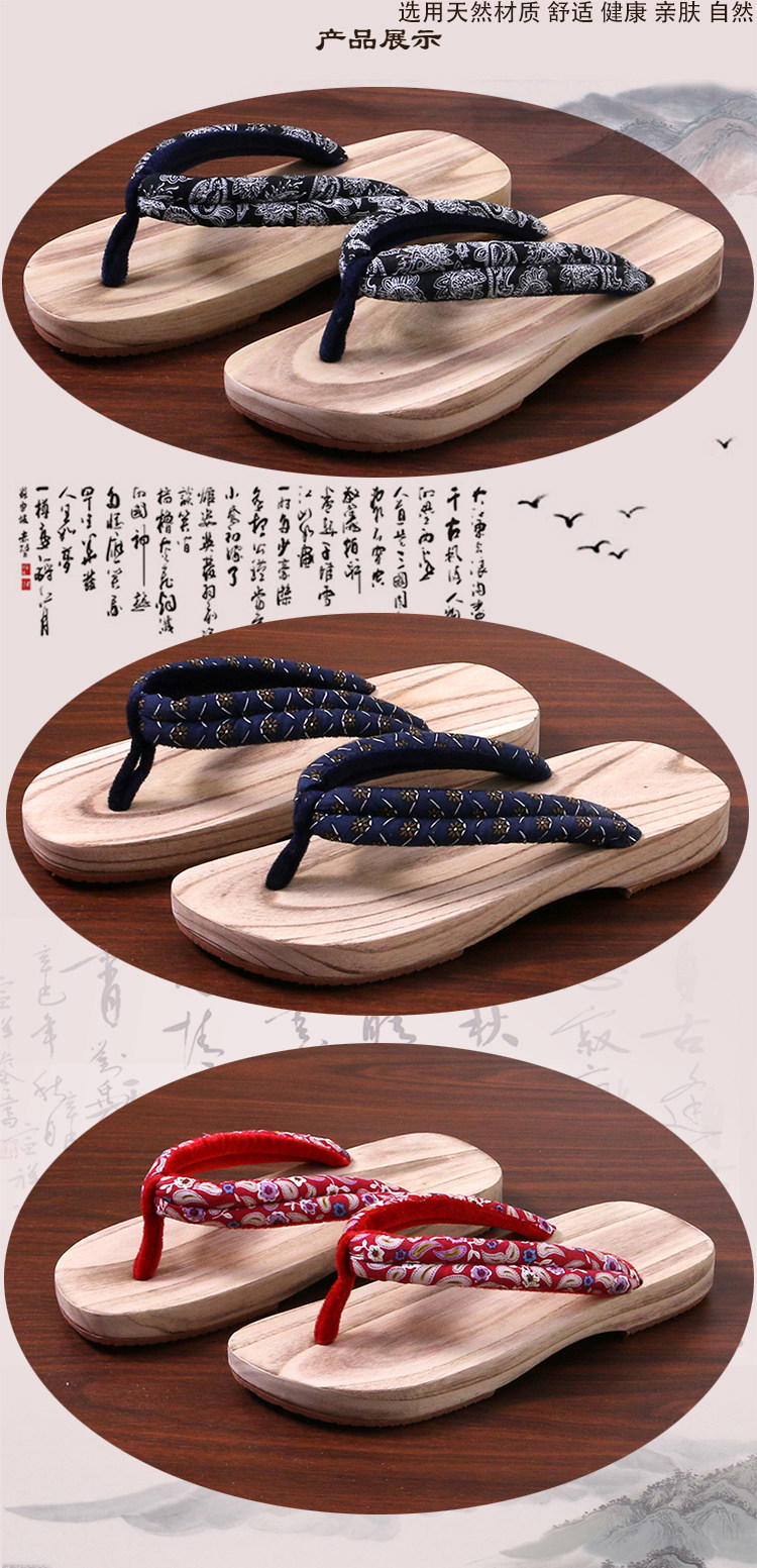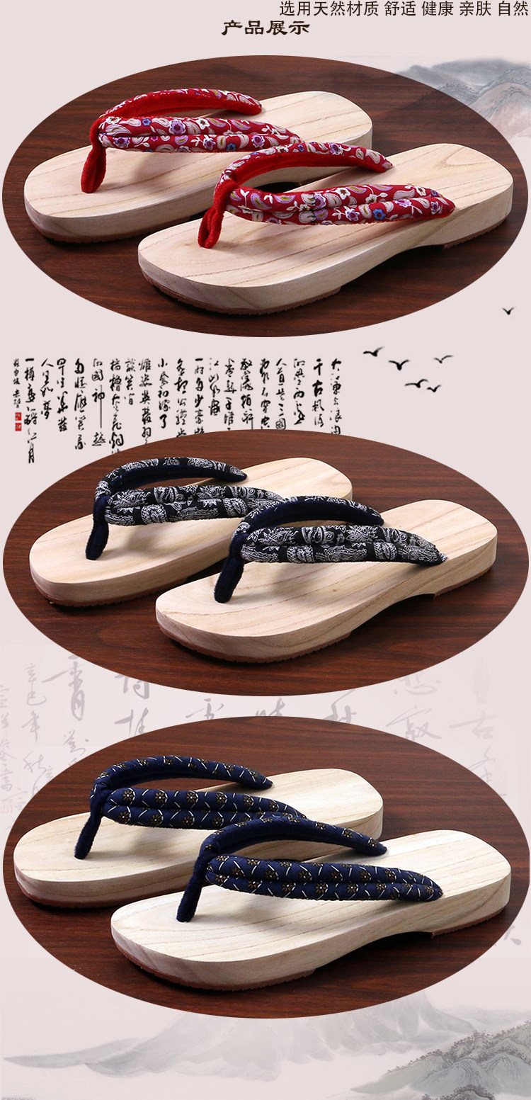 Japanese-style Japanese men and women summer Japanese herringbone wooden slippers male couple Japanese cotton cosplay Japanese