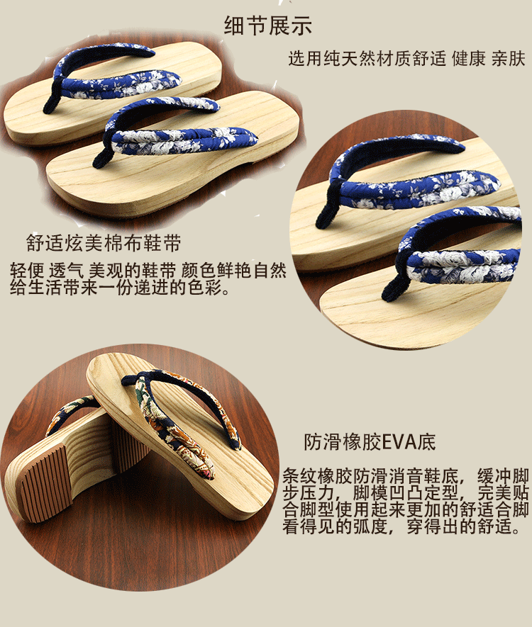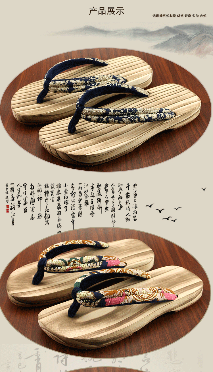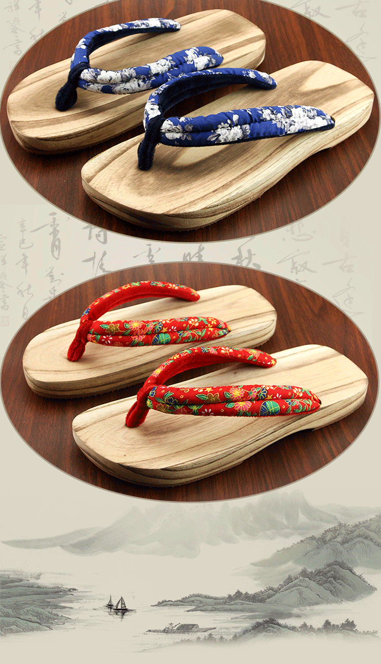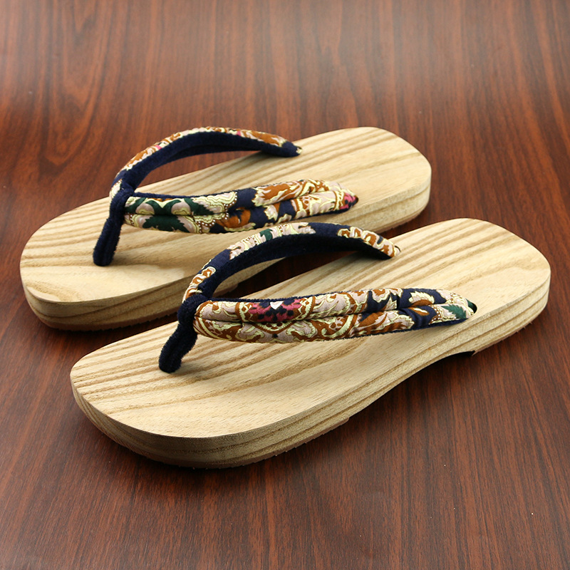 Japanese-style Japanese men and women summer Japanese herringbone wooden slippers male couple Japanese cotton cosplay Japanese