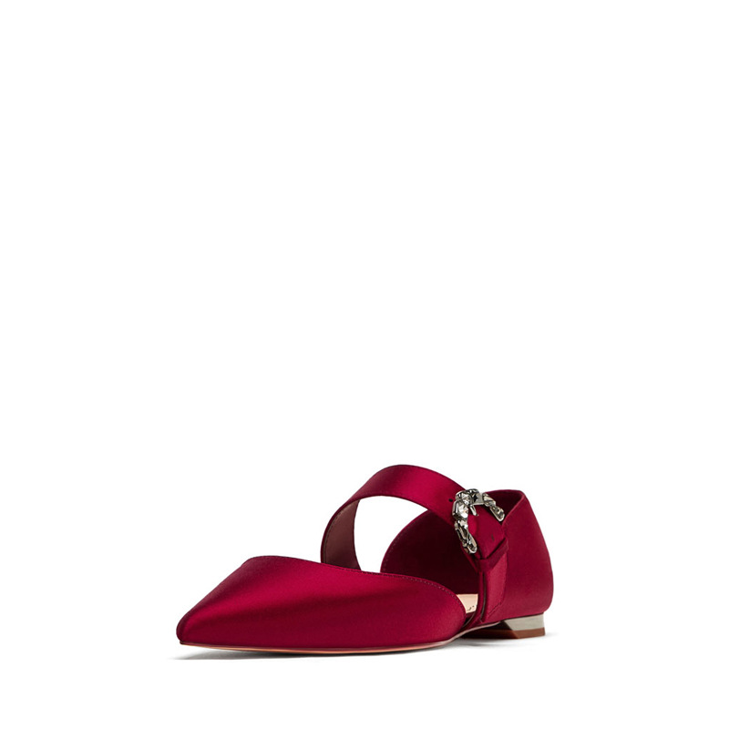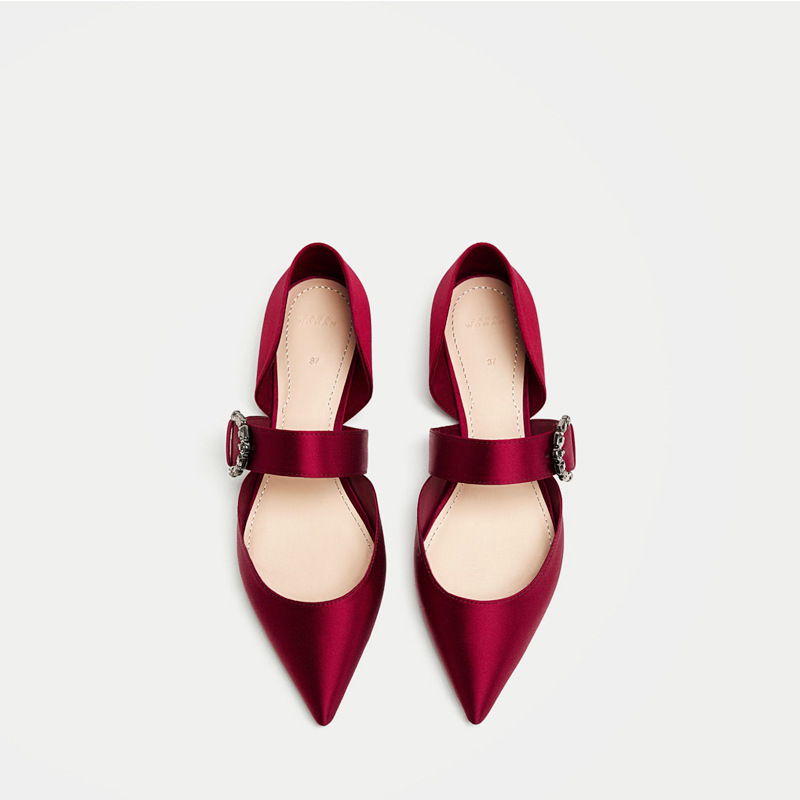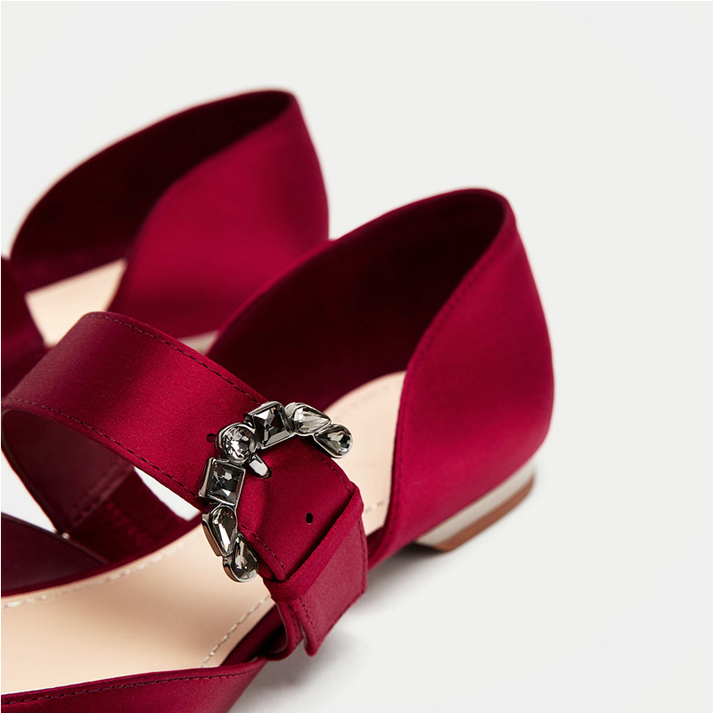 ZA summer new jewelry decorative buckle fashion Lady satin face sandals with pointed slotted strap flat women’s shoes