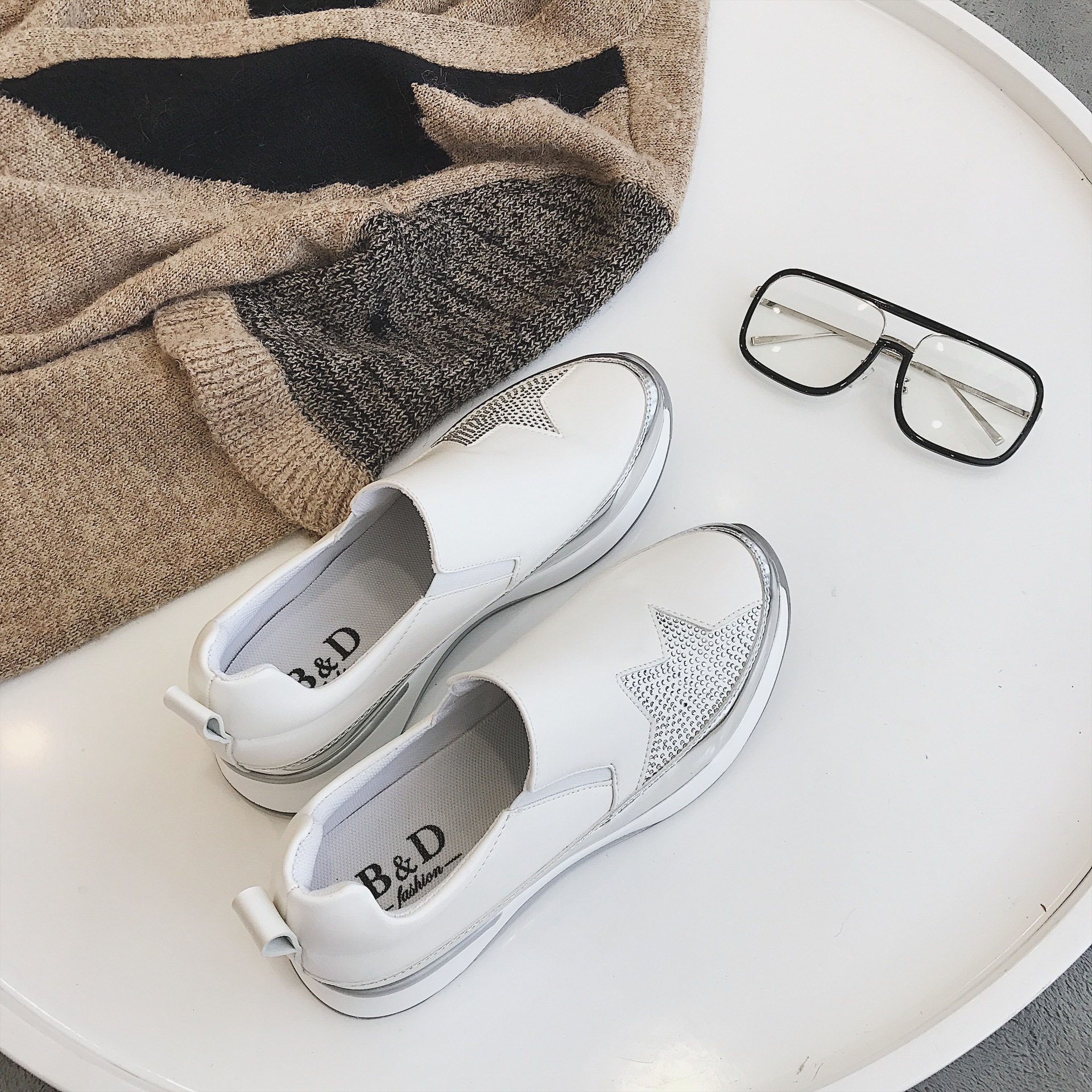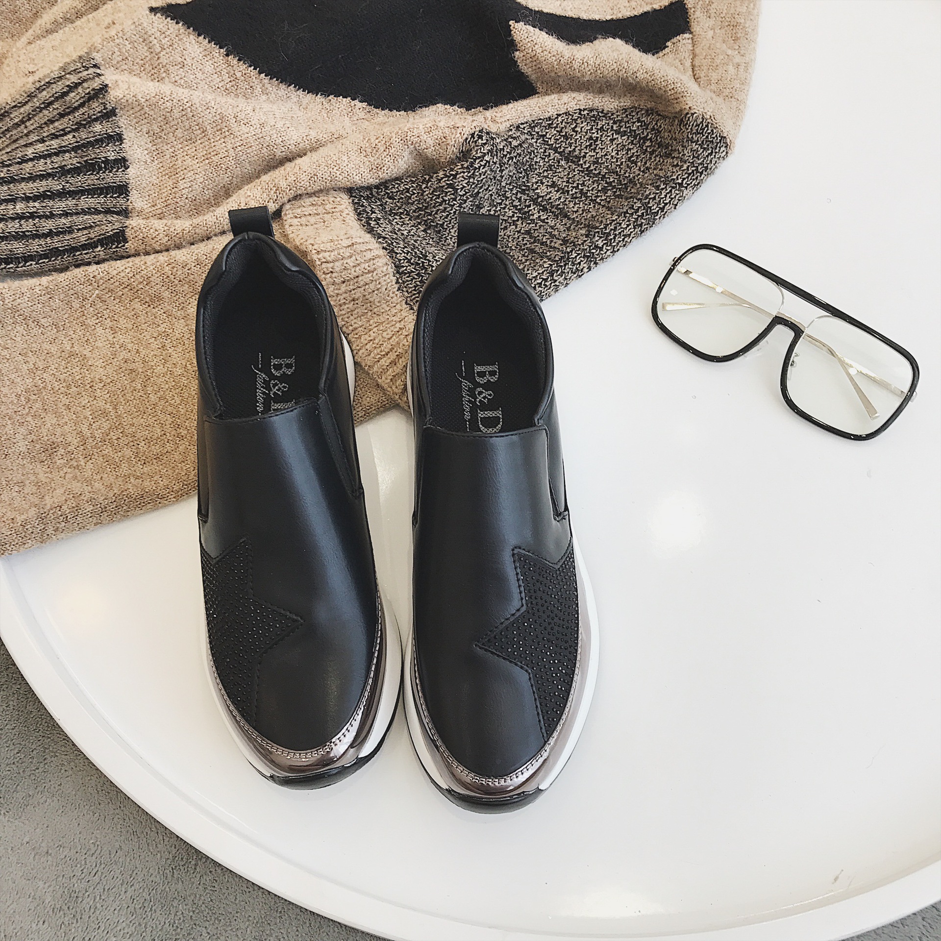 XGFUQITE autumn new sport style thick bottom single shoes female casual Joker Feng Shui the drill running shoes