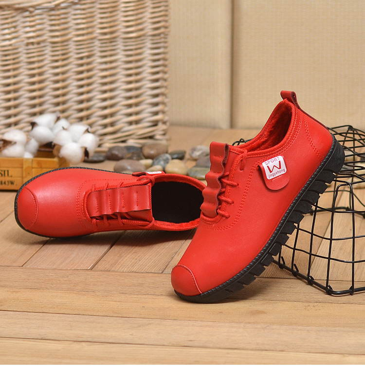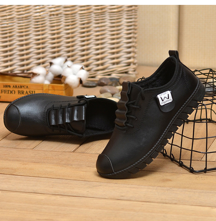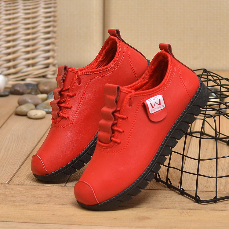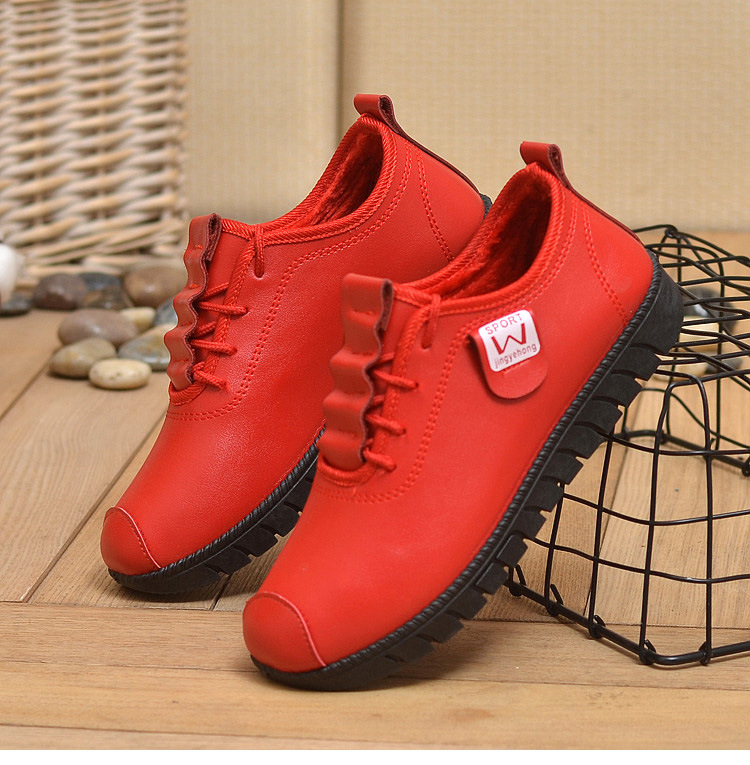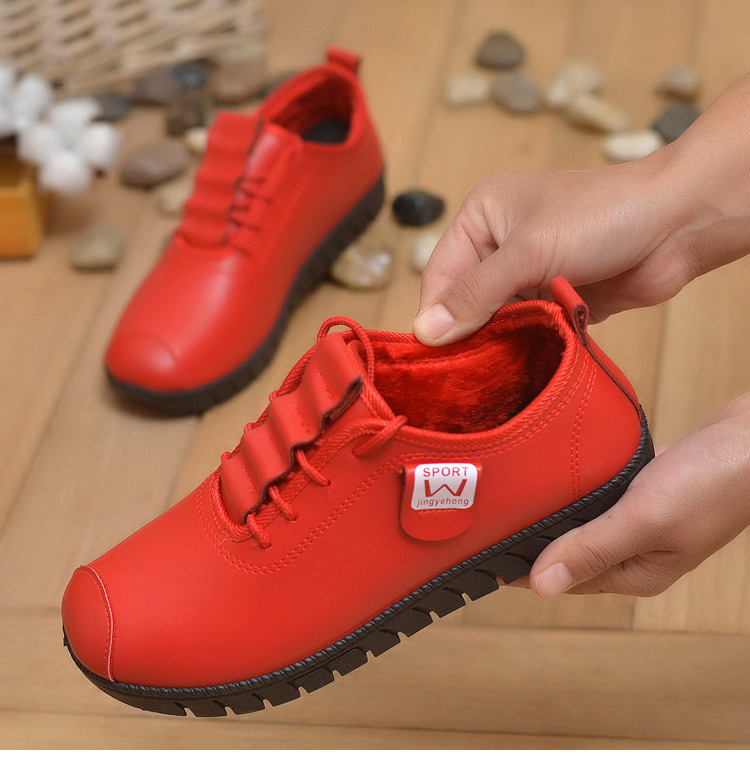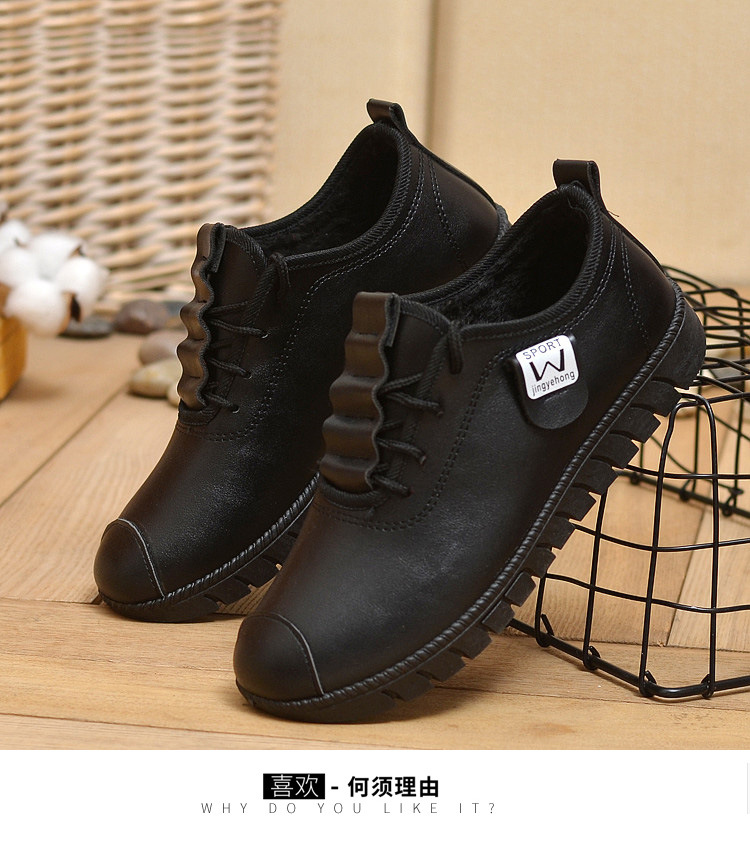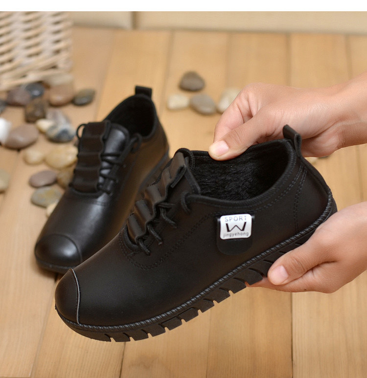 New winter cotton shoes women’s flat bottom comfortable soft bottom fashion casual mother shoes warm PU women’s shoes