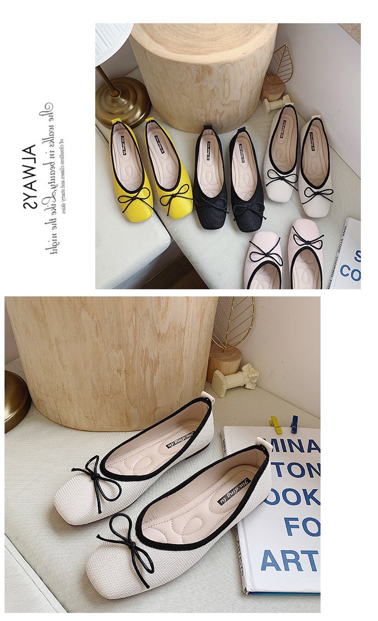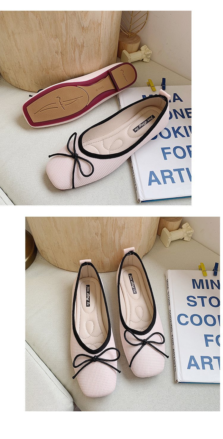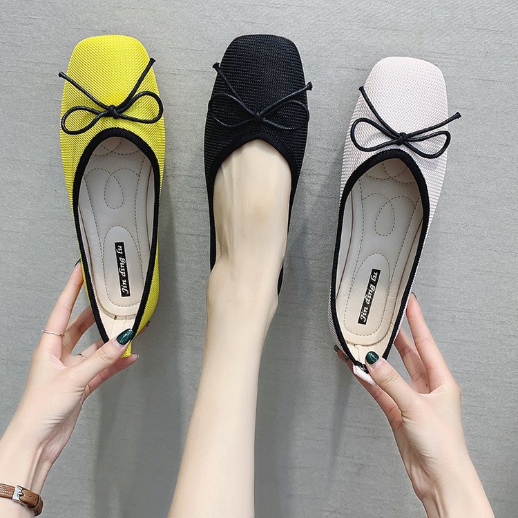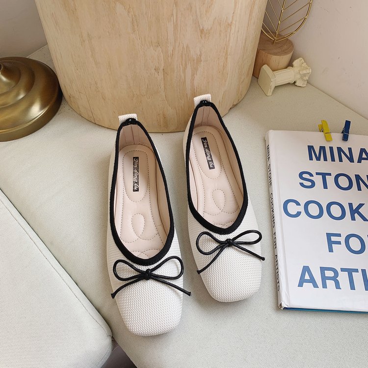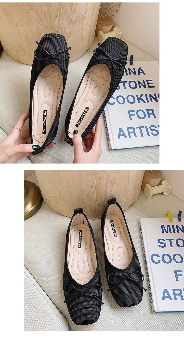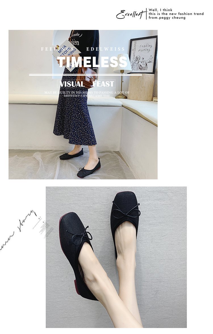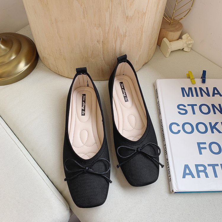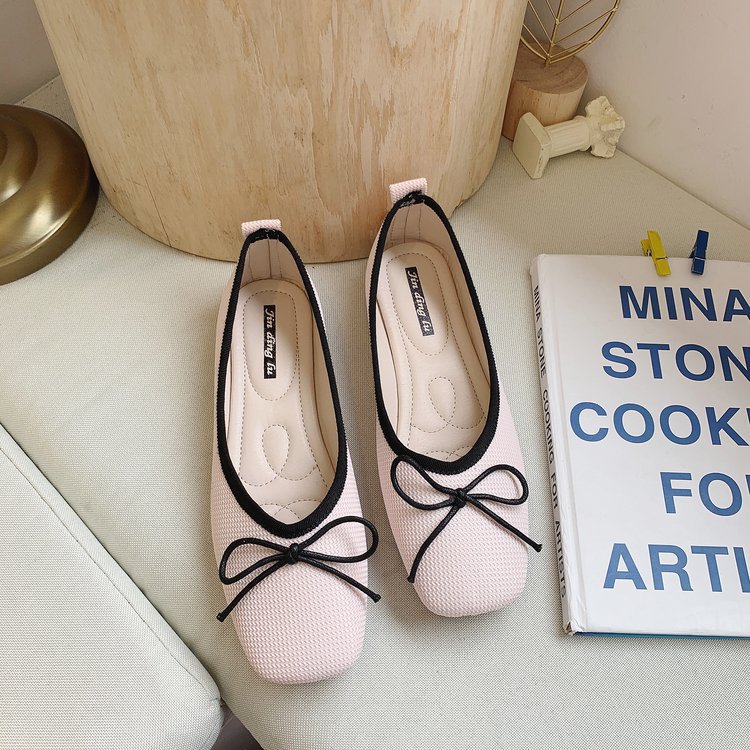 Single shoes women’s new women’s shoes autumn fashion bow square head peas shoes women’s shallow mouth flat shoes