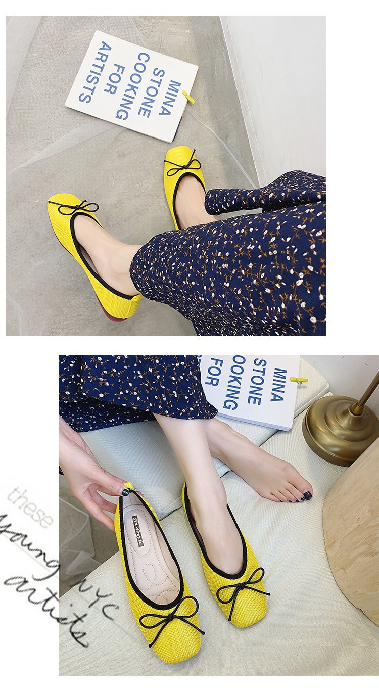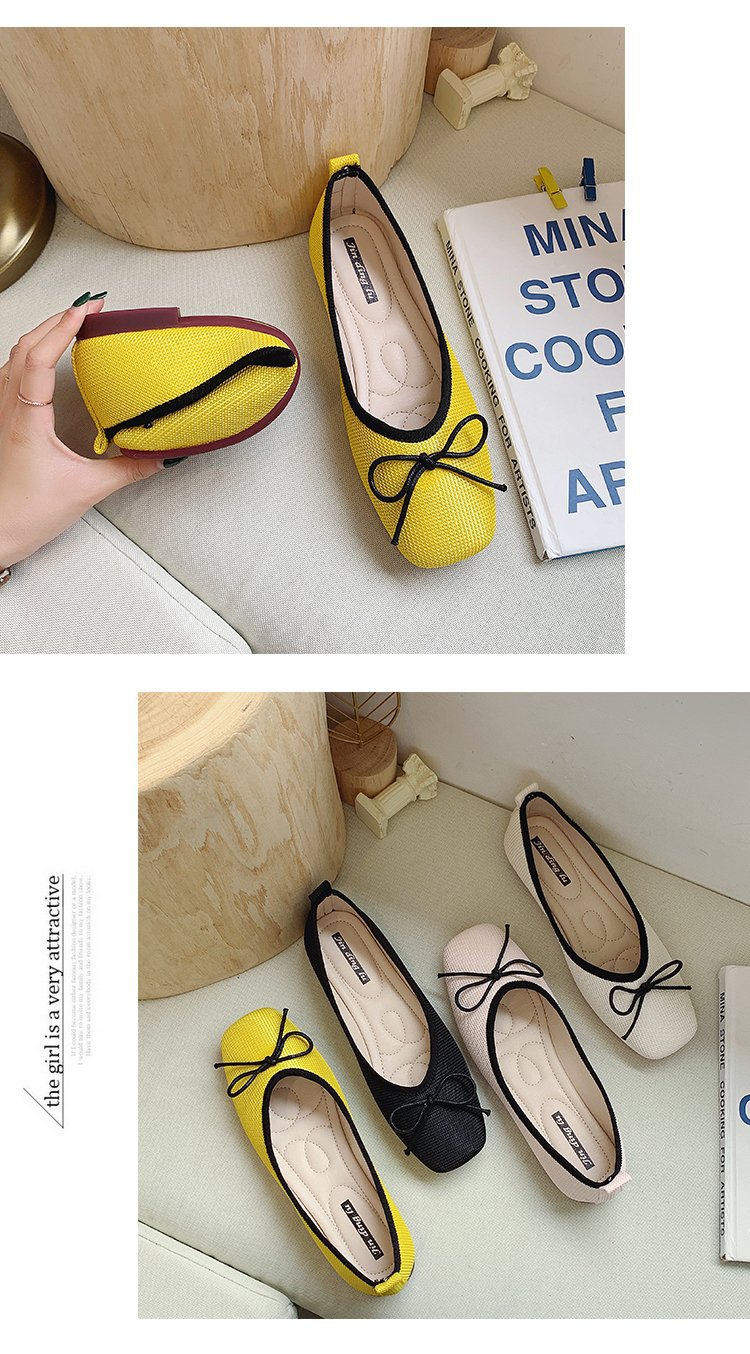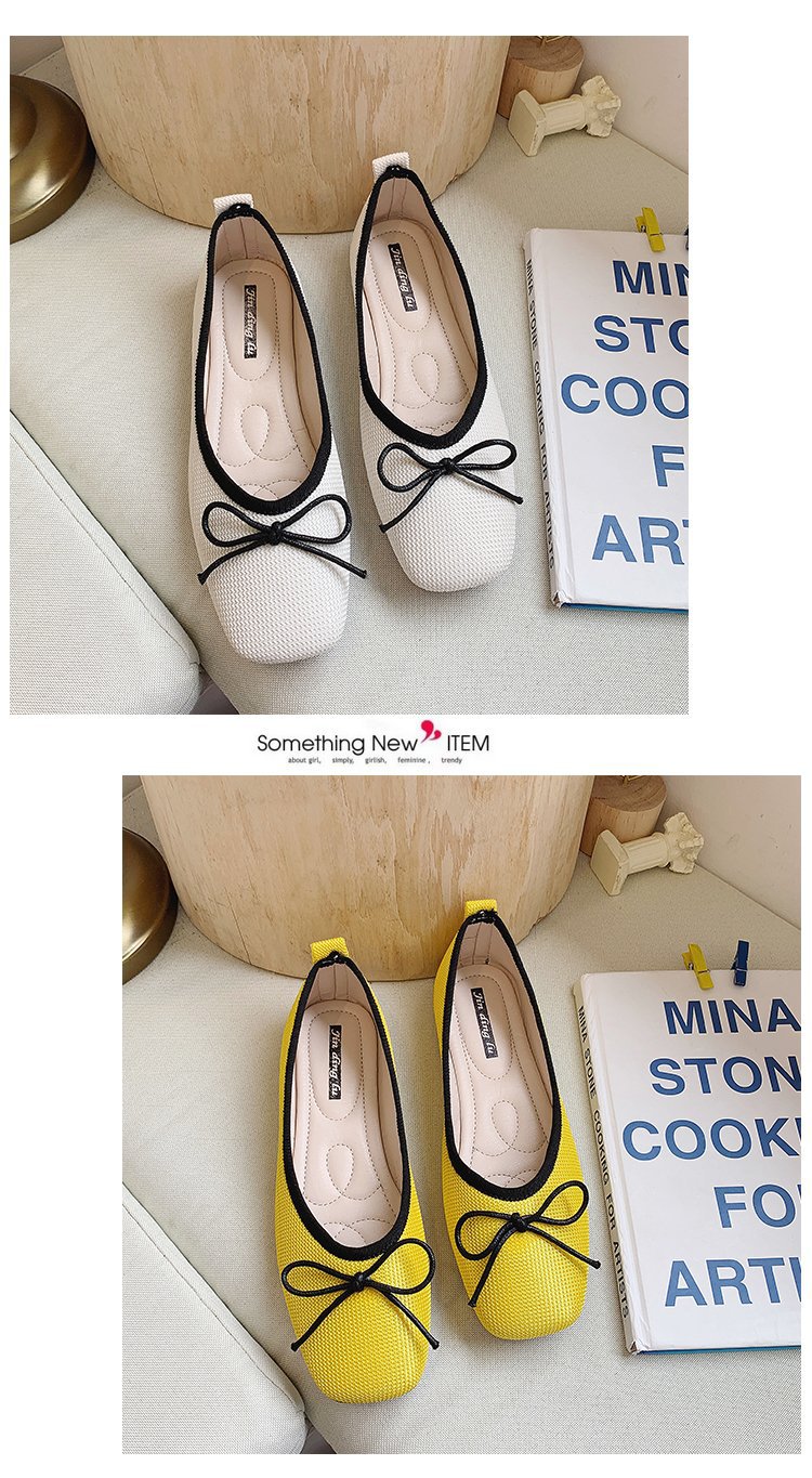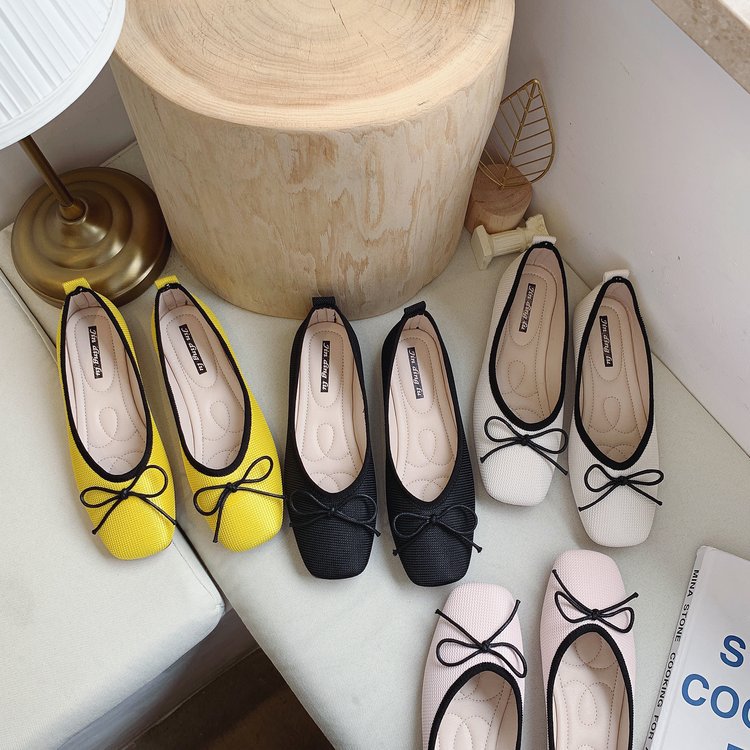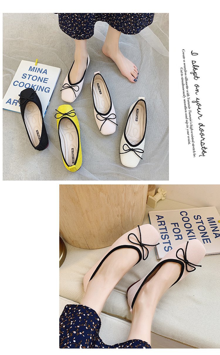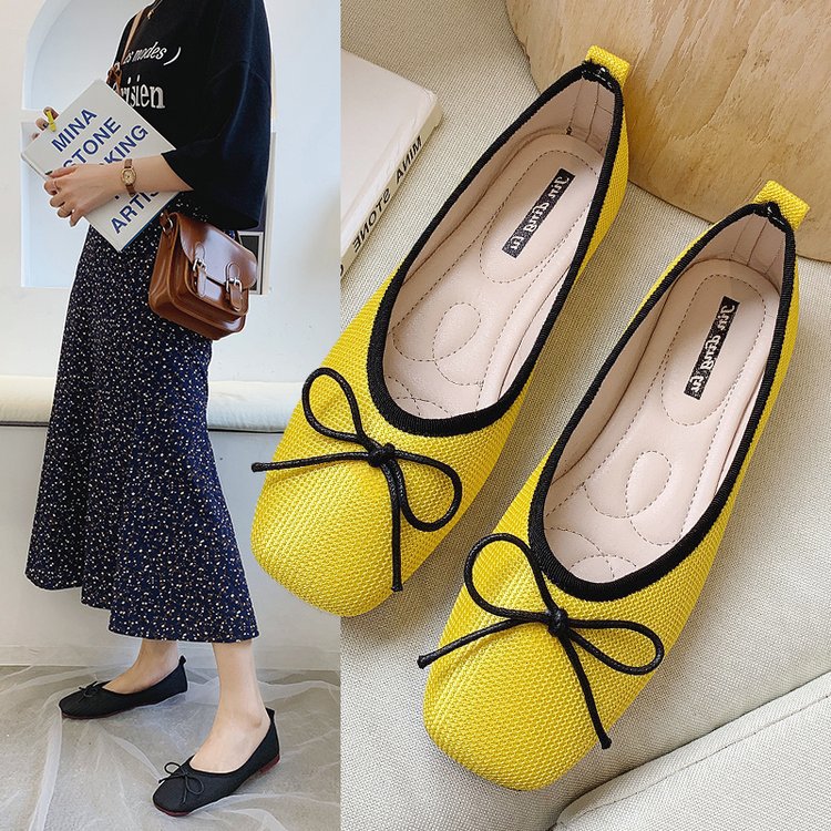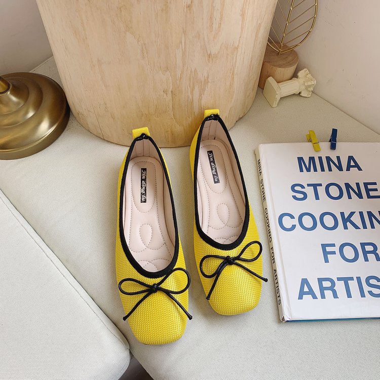 Single shoes women’s new women’s shoes autumn fashion bow square head peas shoes women’s shallow mouth flat shoes