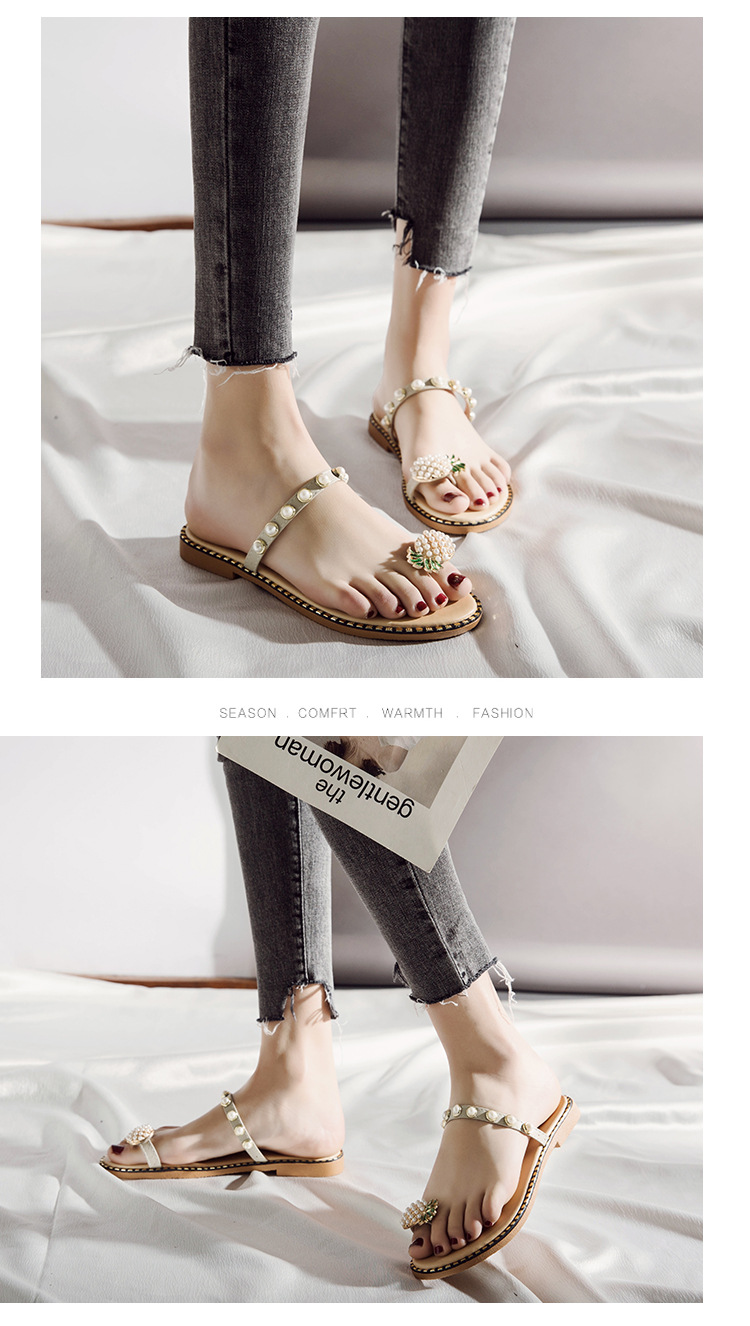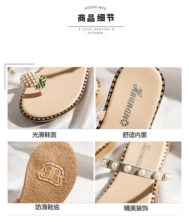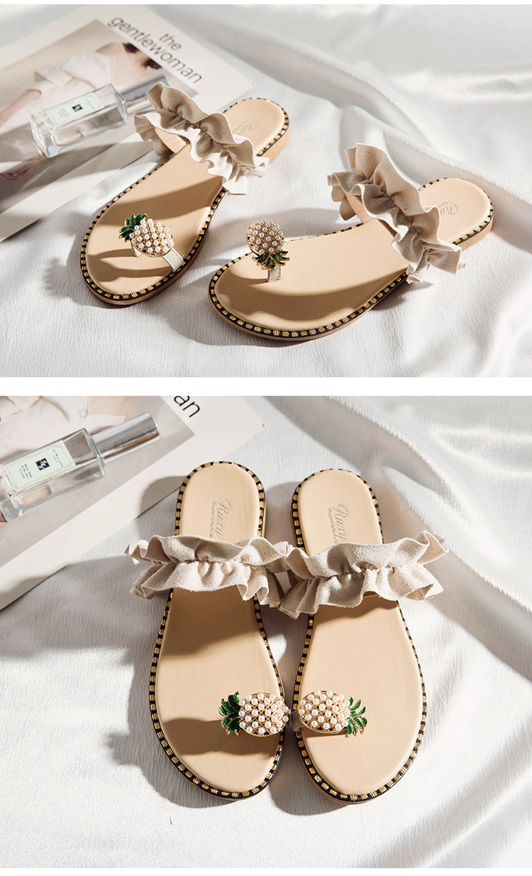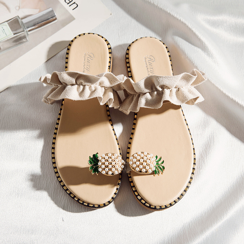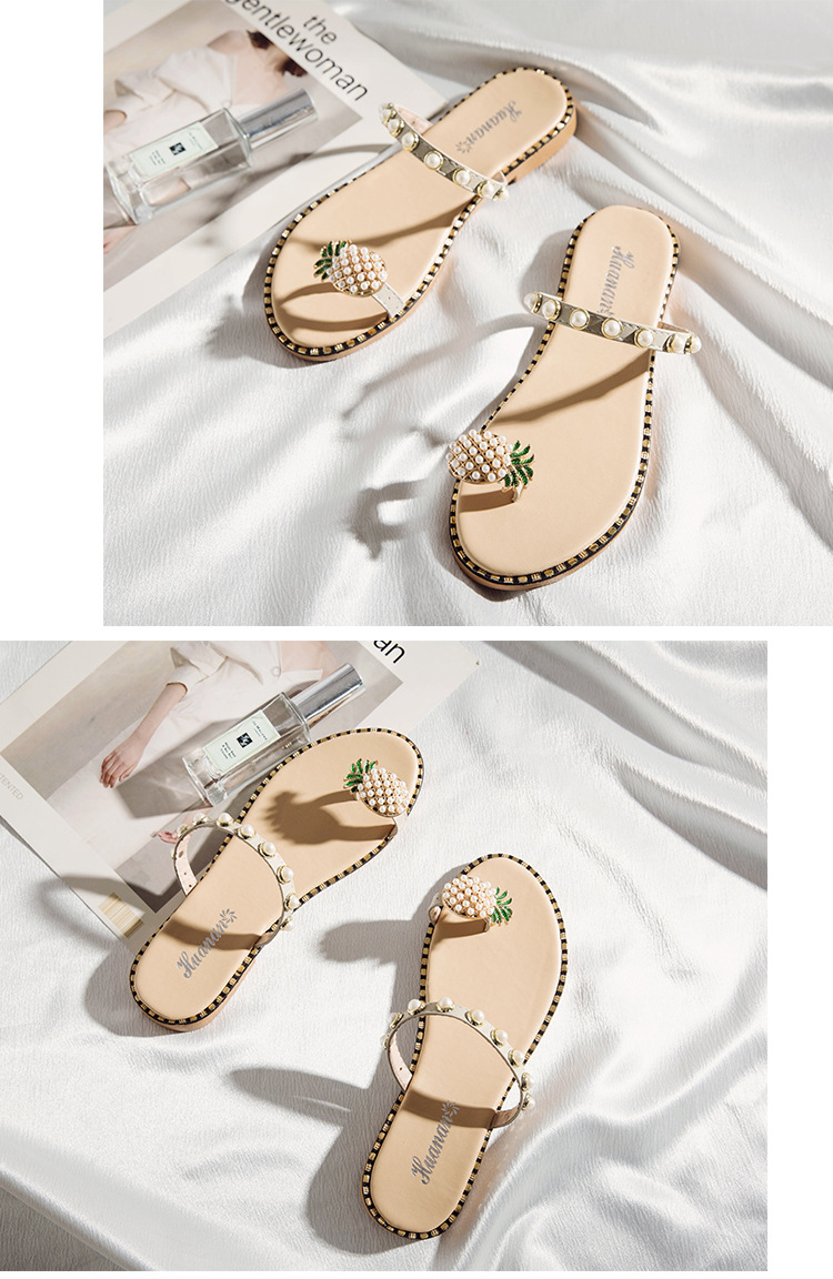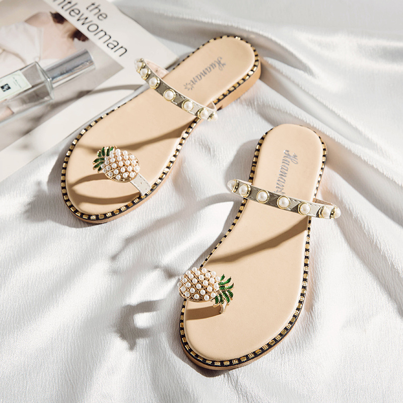 Summer new pineapple sandals and slippers fashion student pearl women’s shoes outside wearing slippers women