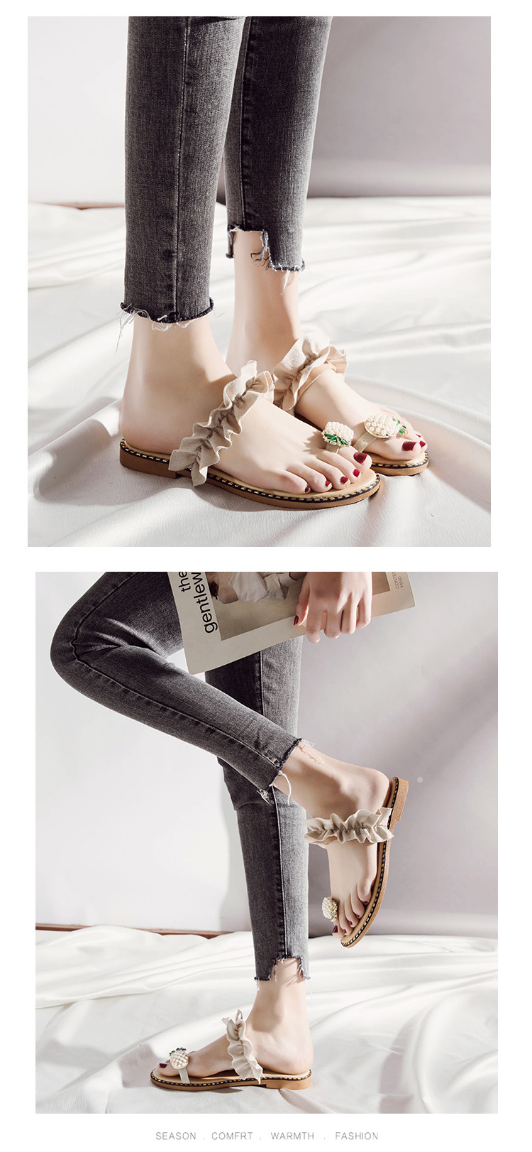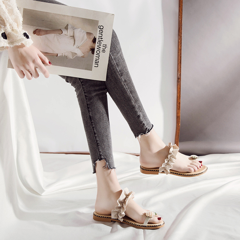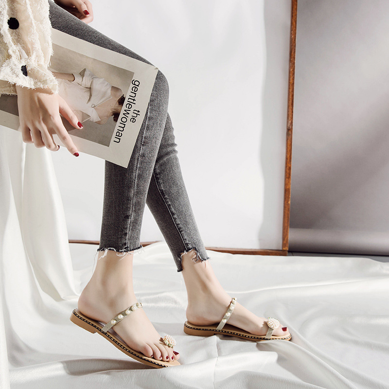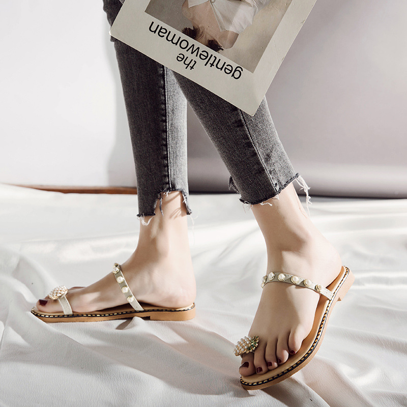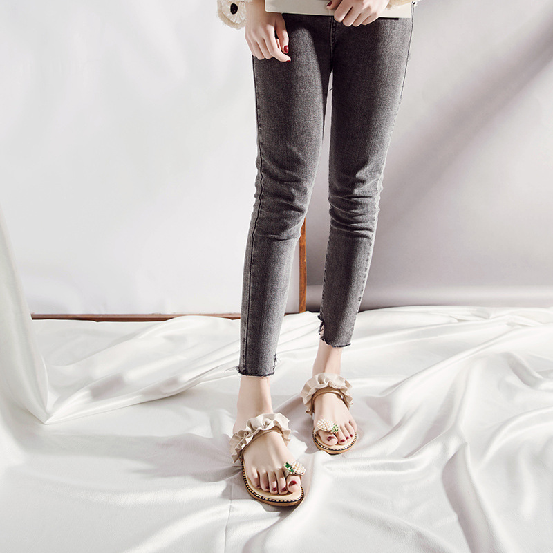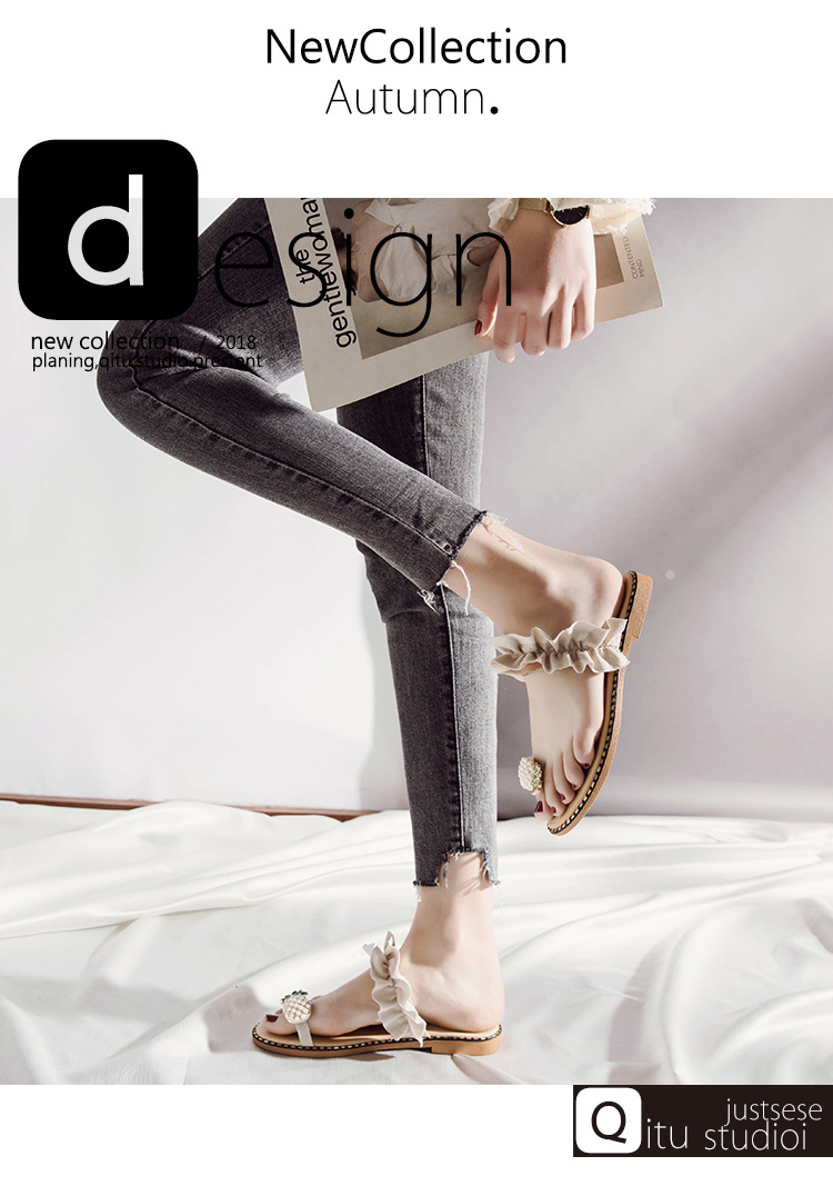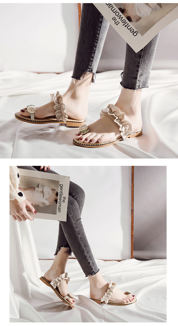 Summer new pineapple sandals and slippers fashion student pearl women’s shoes outside wearing slippers women