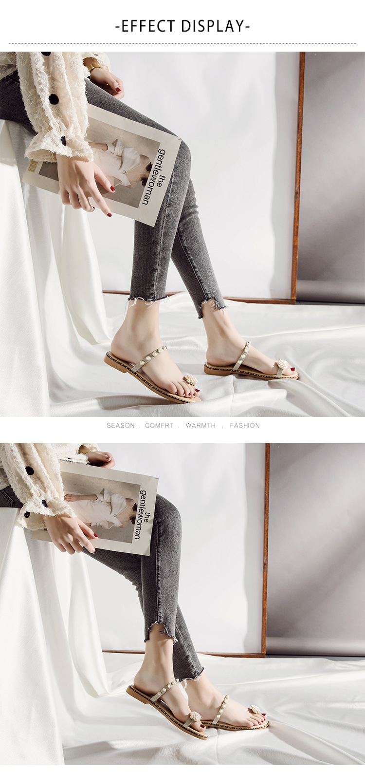 - Heel height: Flat heel