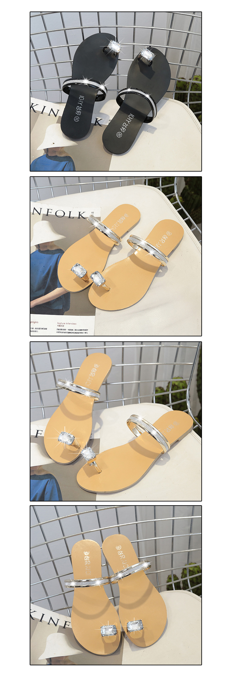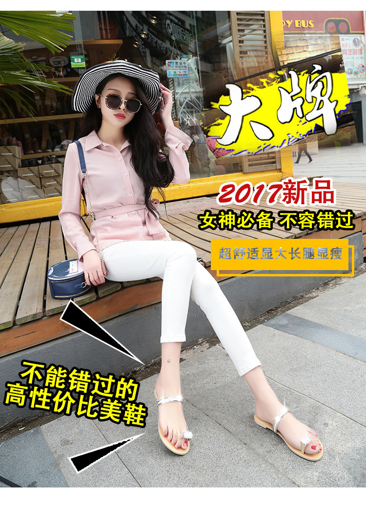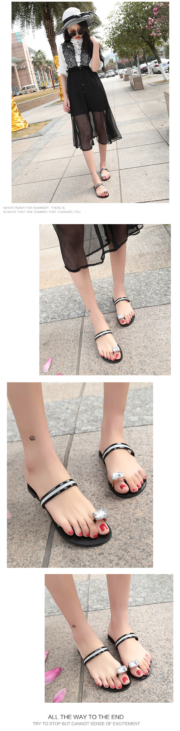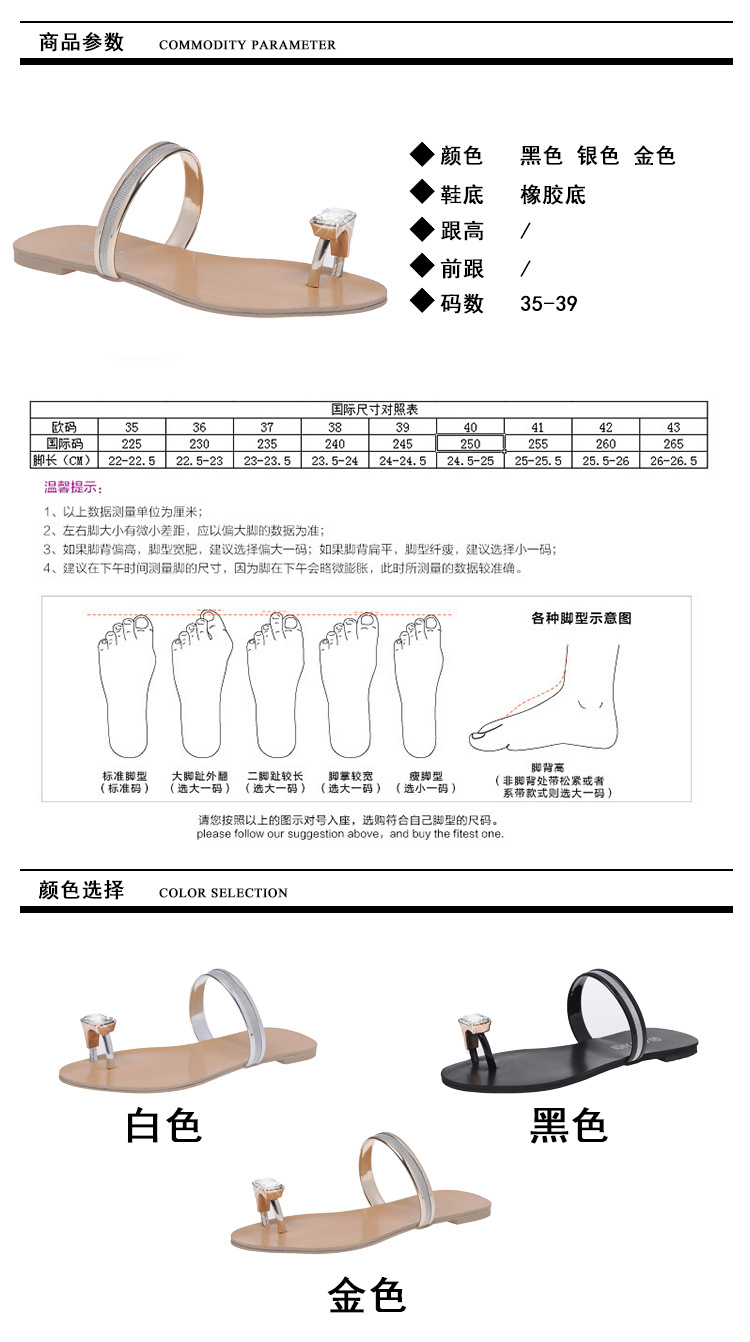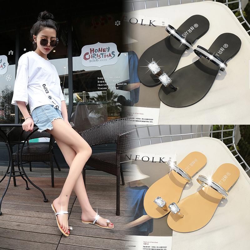 Women’s slippers spring and summer new simple large size casual shoes flat-bottomed rhinestone word cool drag female