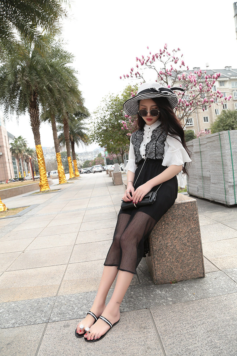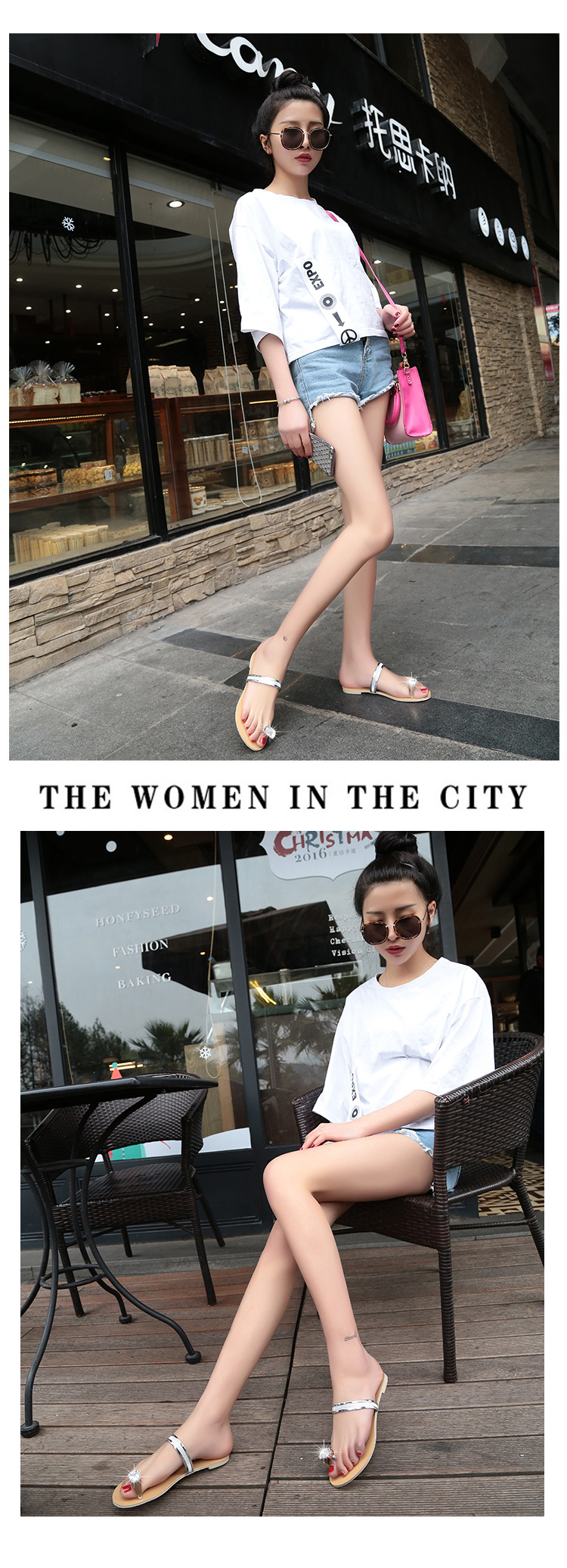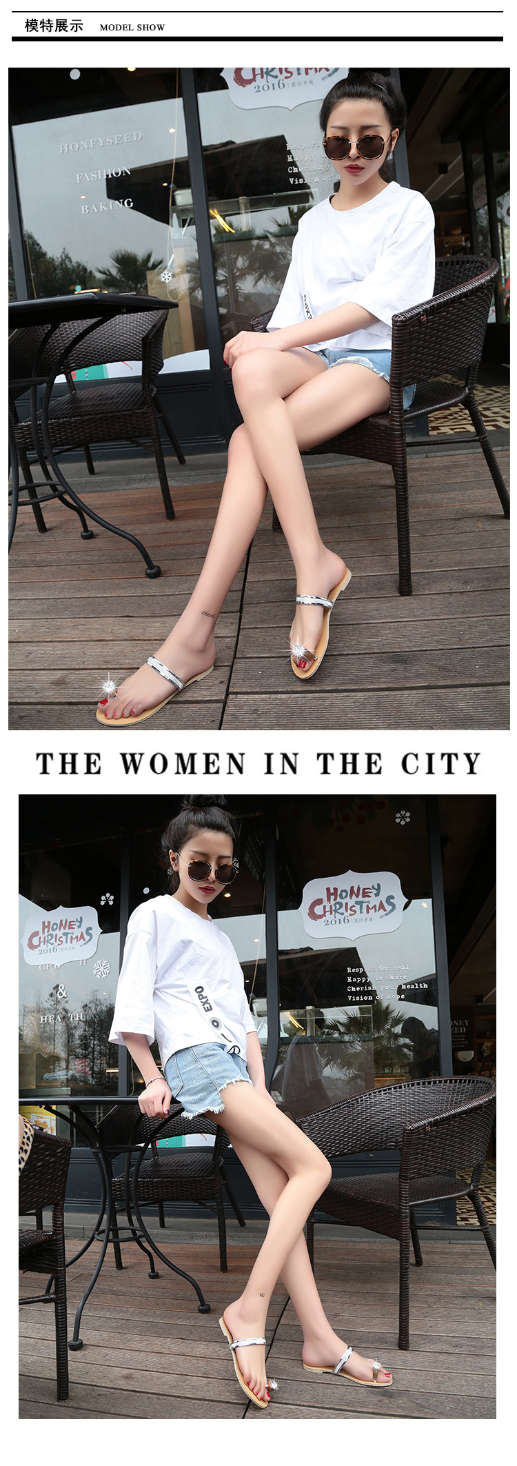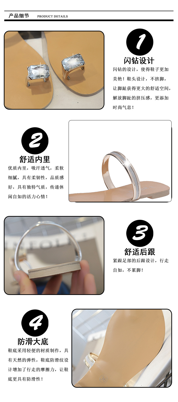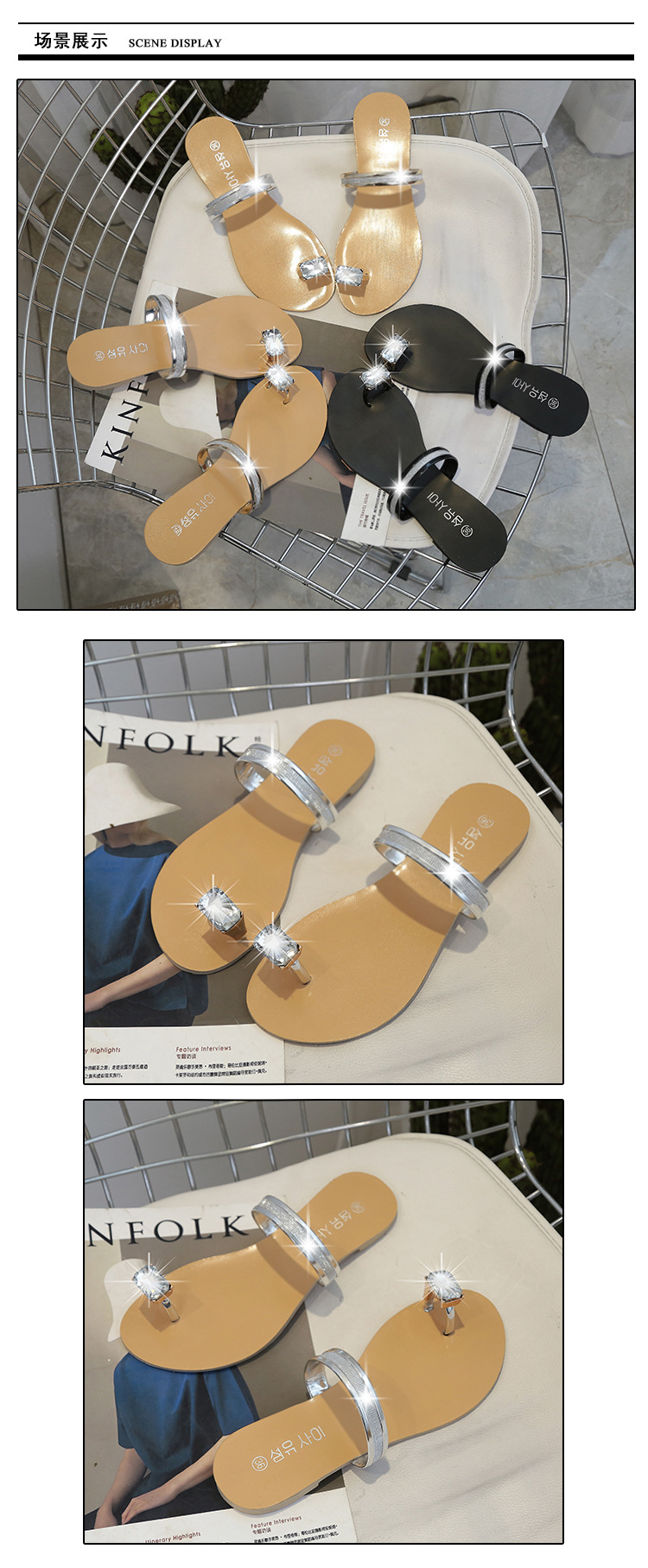 Women’s slippers spring and summer new simple large size casual shoes flat-bottomed rhinestone word cool drag female