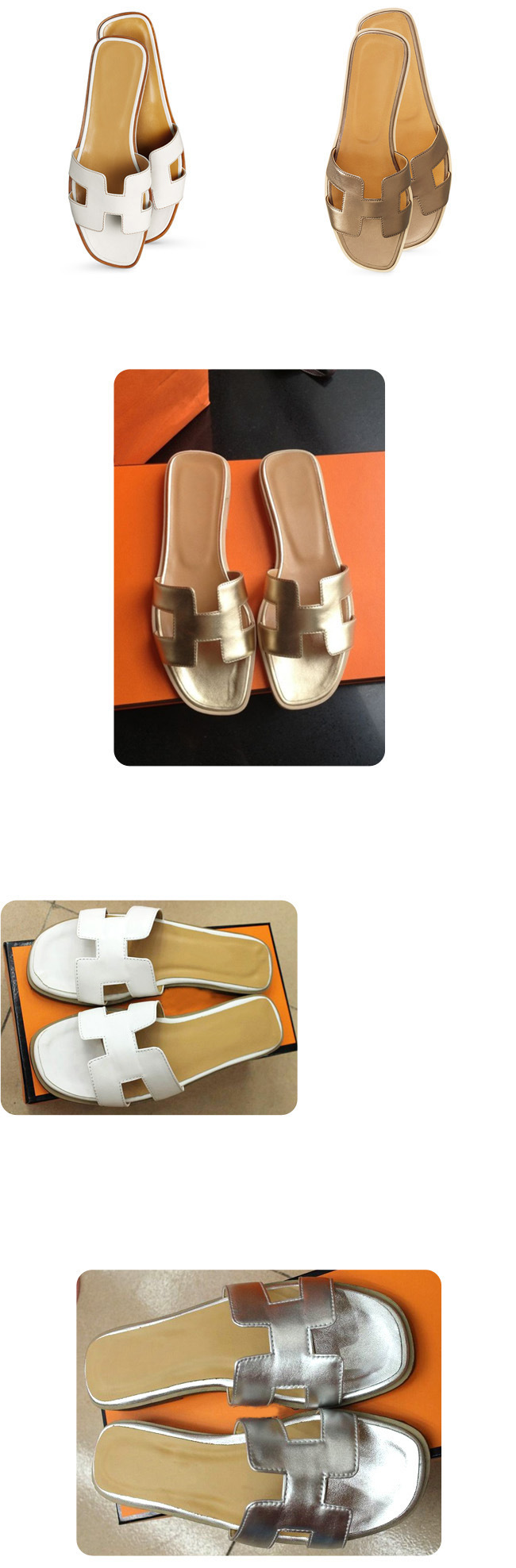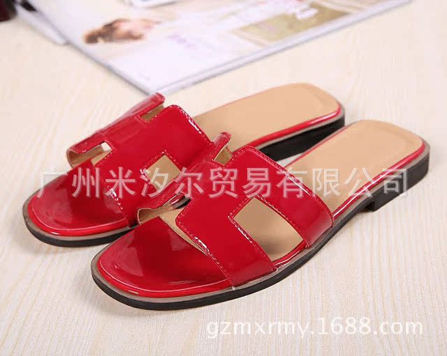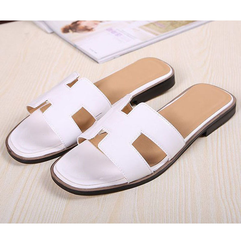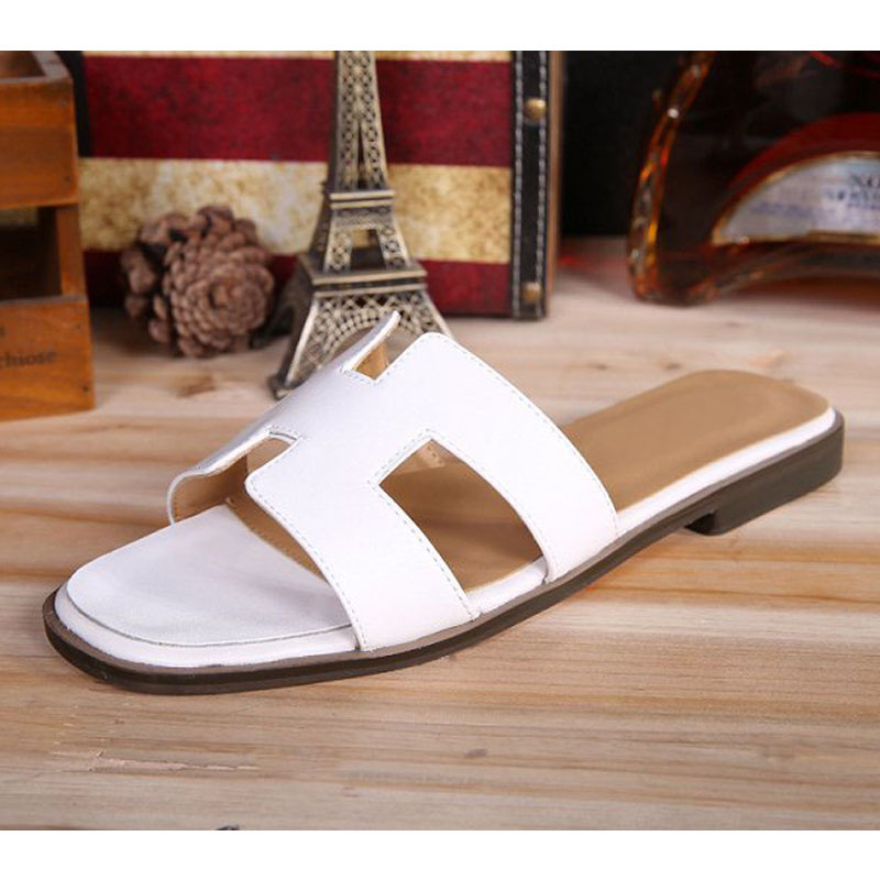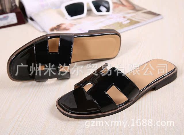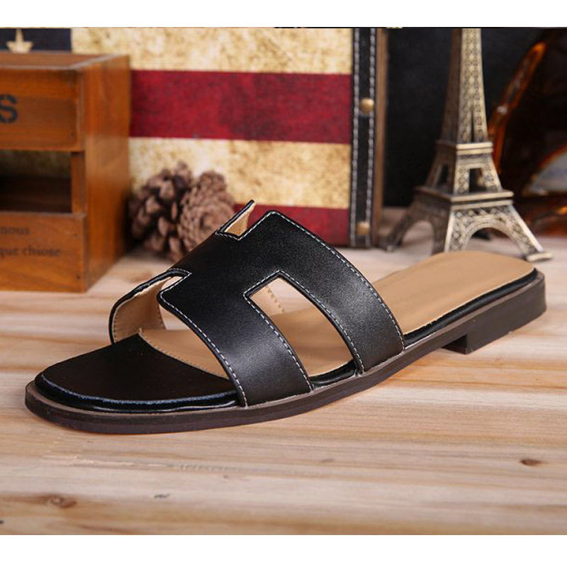 Xia Ping with sandals and slippers H-class classic leather flat bottom H slippers women’s shoes beach shoes