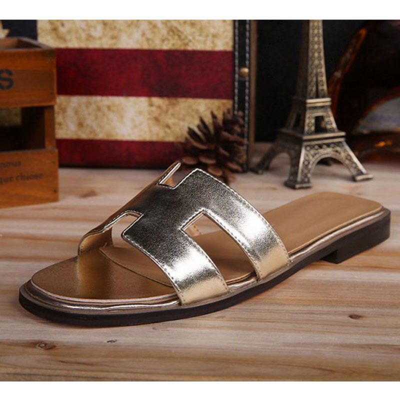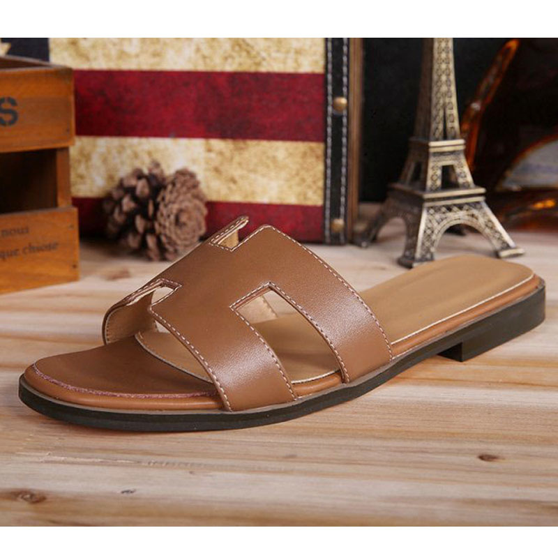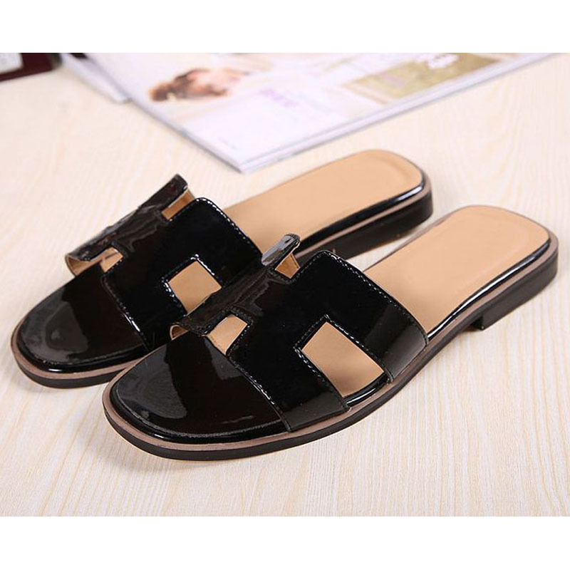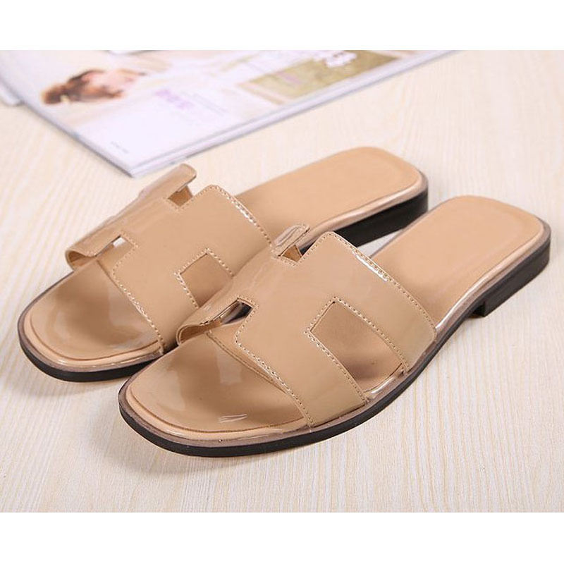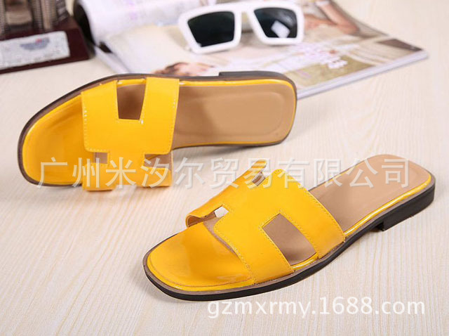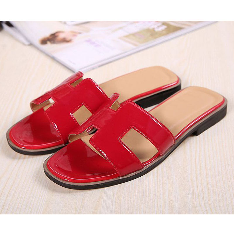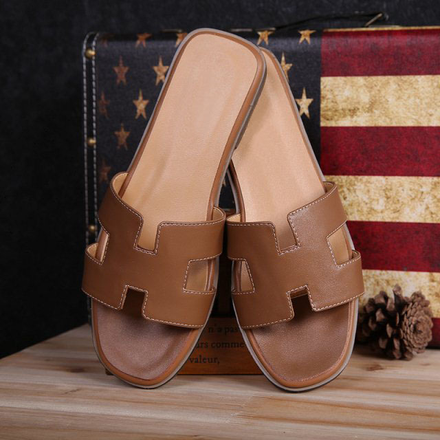 Xia Ping with sandals and slippers H-class classic leather flat bottom H slippers women’s shoes beach shoes